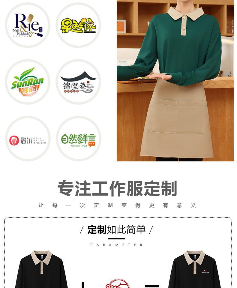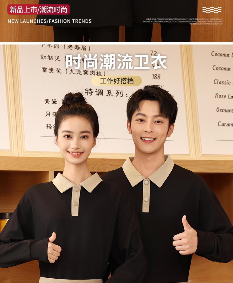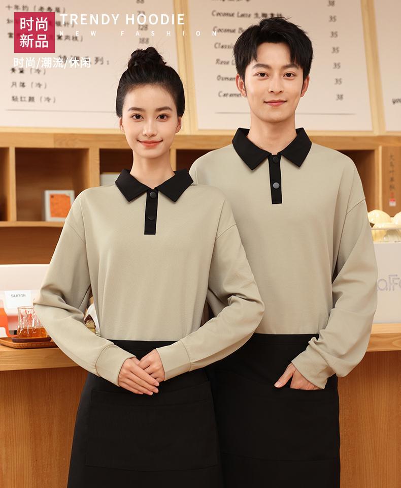 Sudadera de Solapa Ropa de Trabajo Polo Chaqueta de Manga Larga Estampada Uniforme de Empleado de Servicio de Catering Otoño e Invierno Ropa de Trabajo Tipo Ropa de Trabajo
