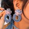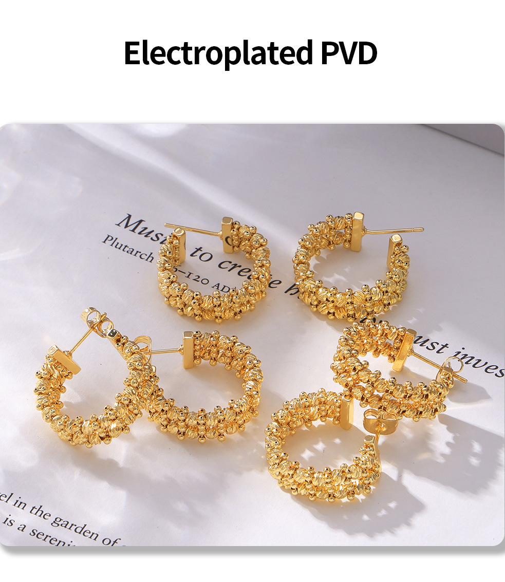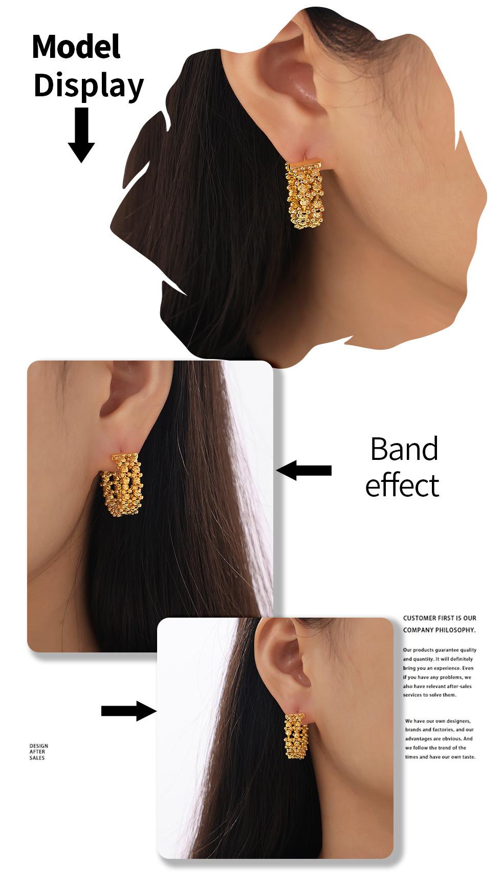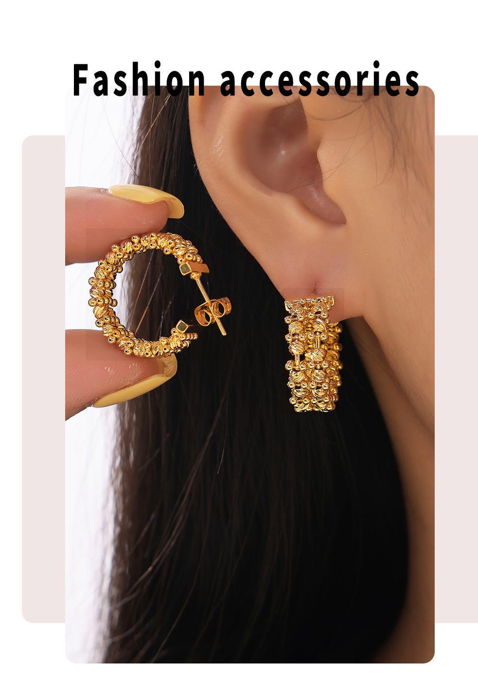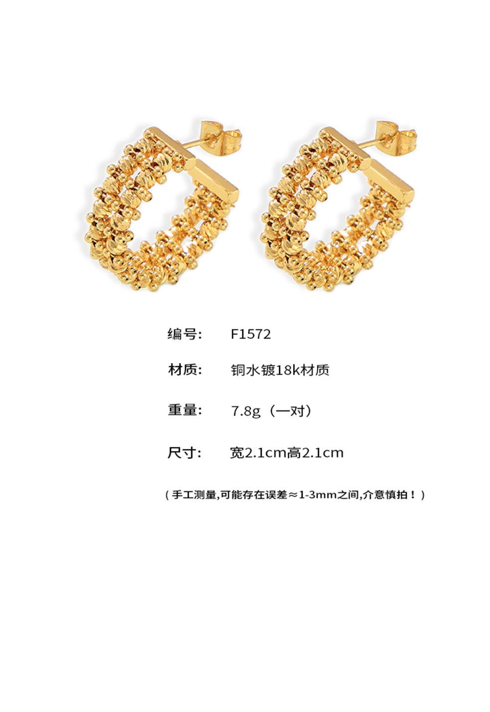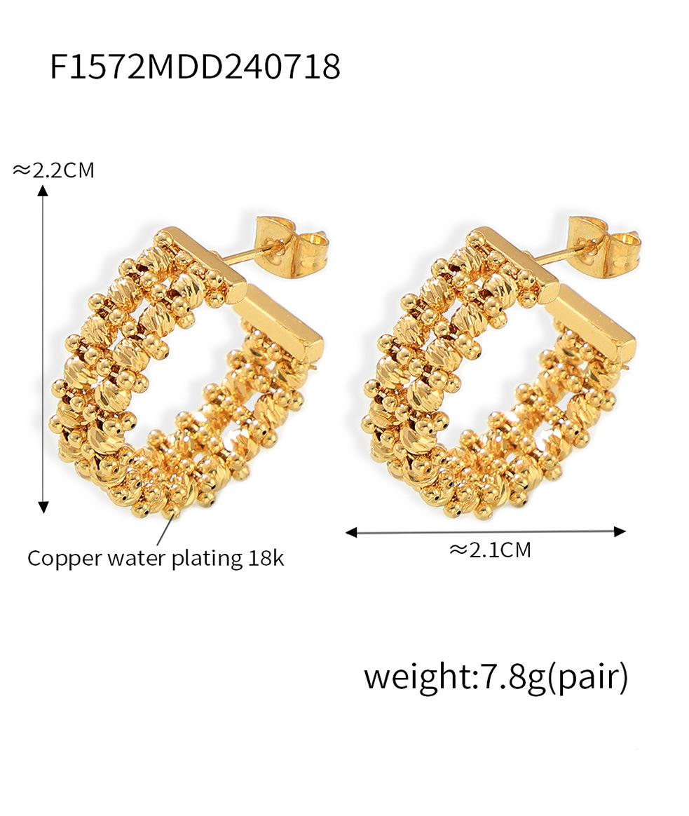 Pendientes de cobre con diseño personalizado de moda para mujer, con diseño de explosión transfronterizo europeo y americano, con cuentas doradas y costuras geométricas en forma de C.