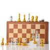 Tablero de ajedrez plegable portátil de tamaño grande para estudiantes, ideal para niños y adultos, color dorado y plateado.