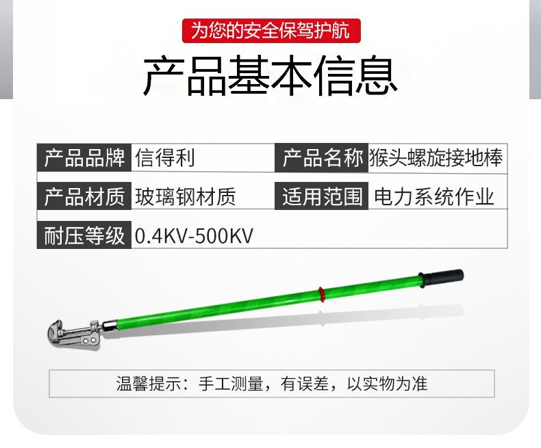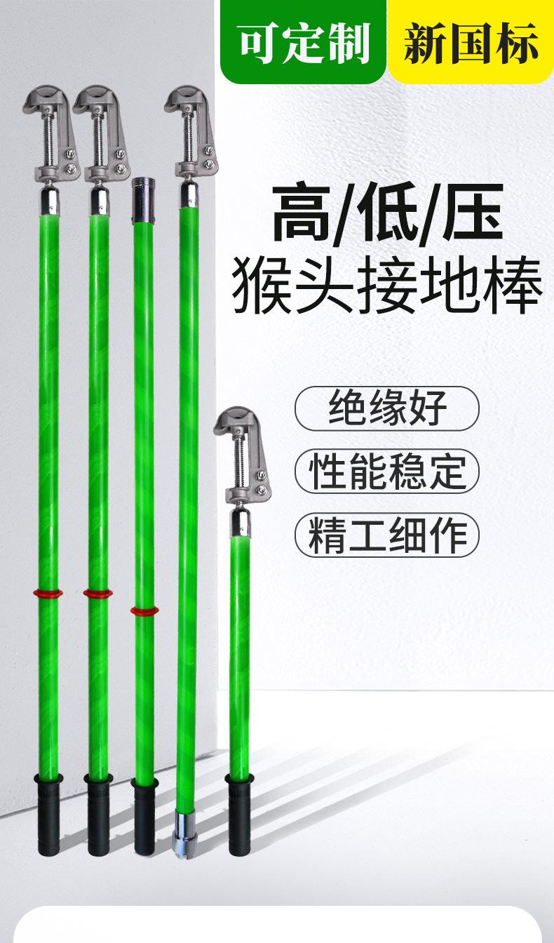 Varilla de puesta a tierra portátil confiable de alto voltaje de 10 kV con cabeza de mono, construcción de potencia, varilla de operación aislada, tornillo de gancho, tipo compresión
