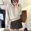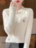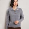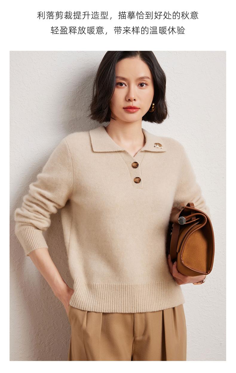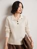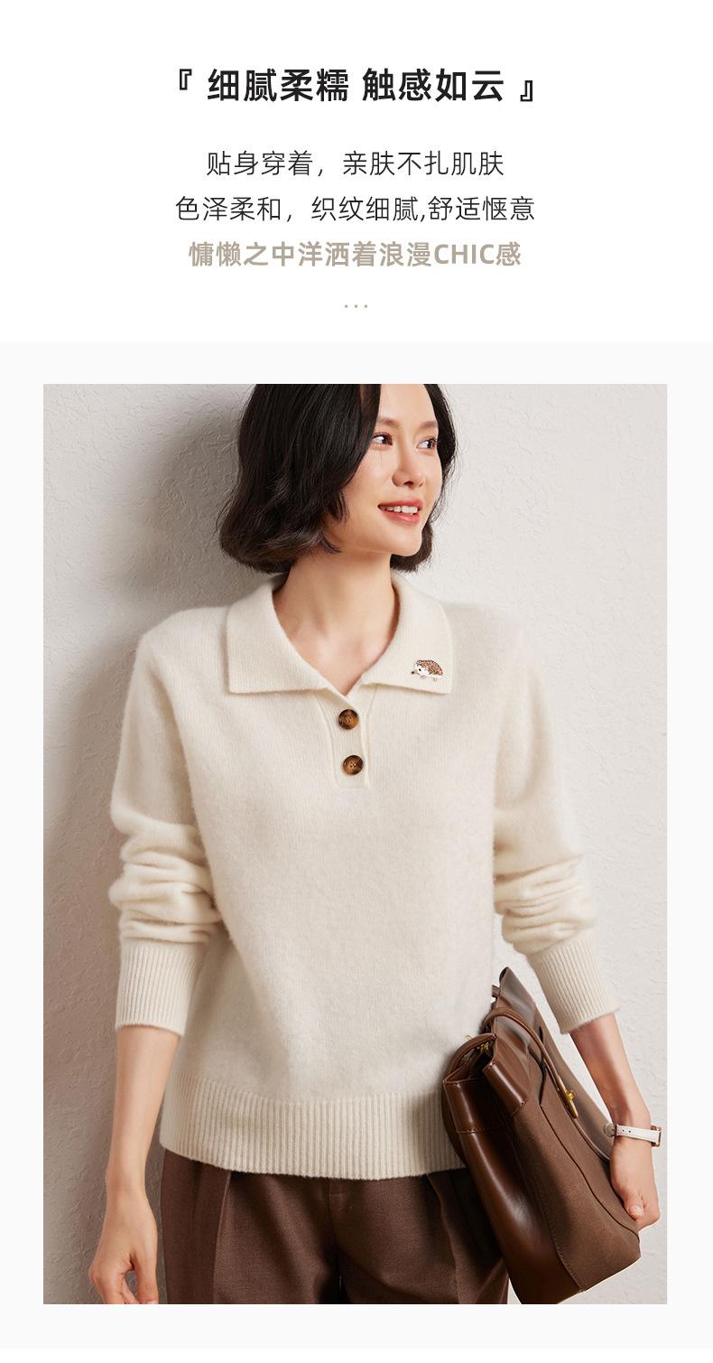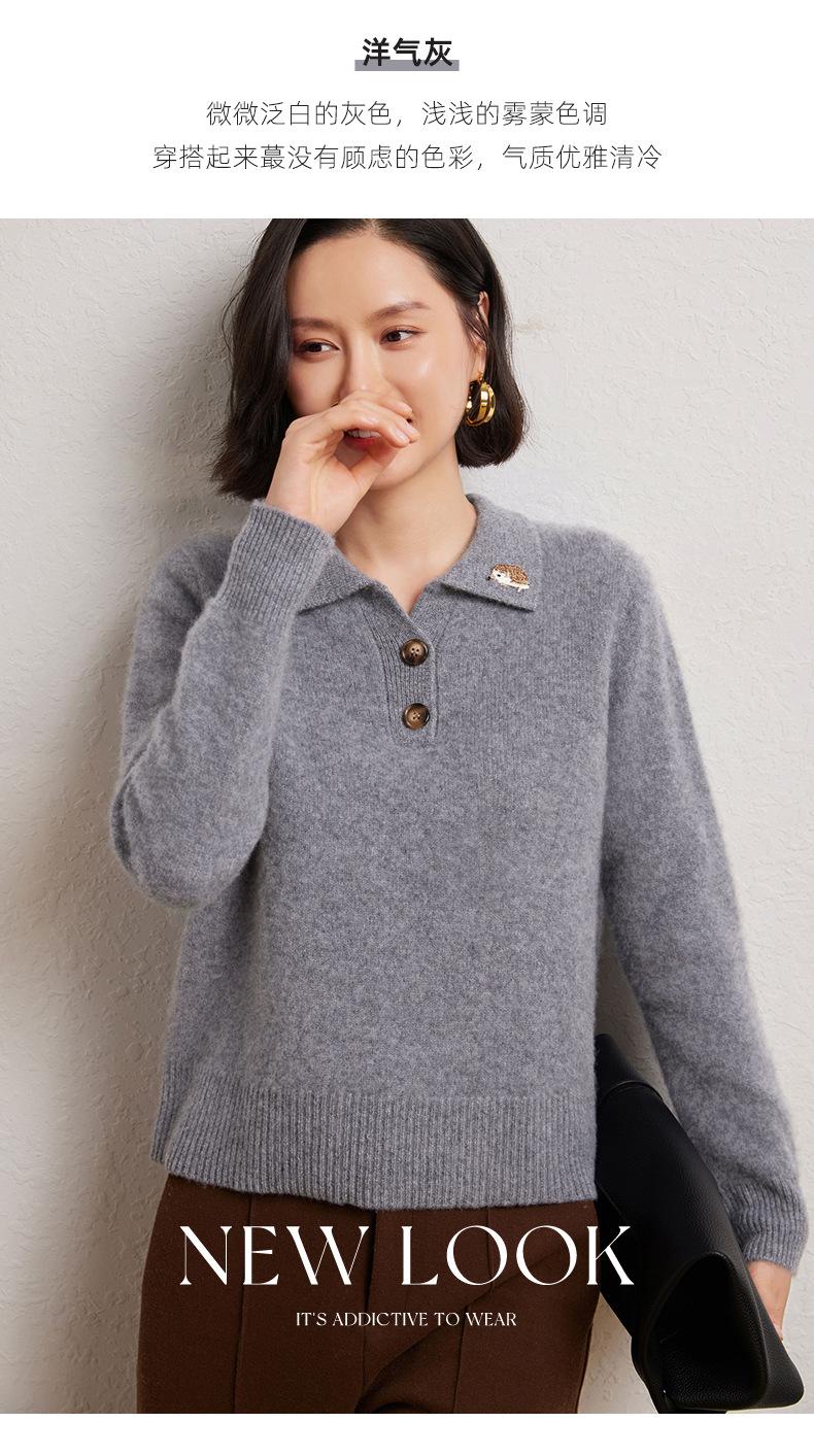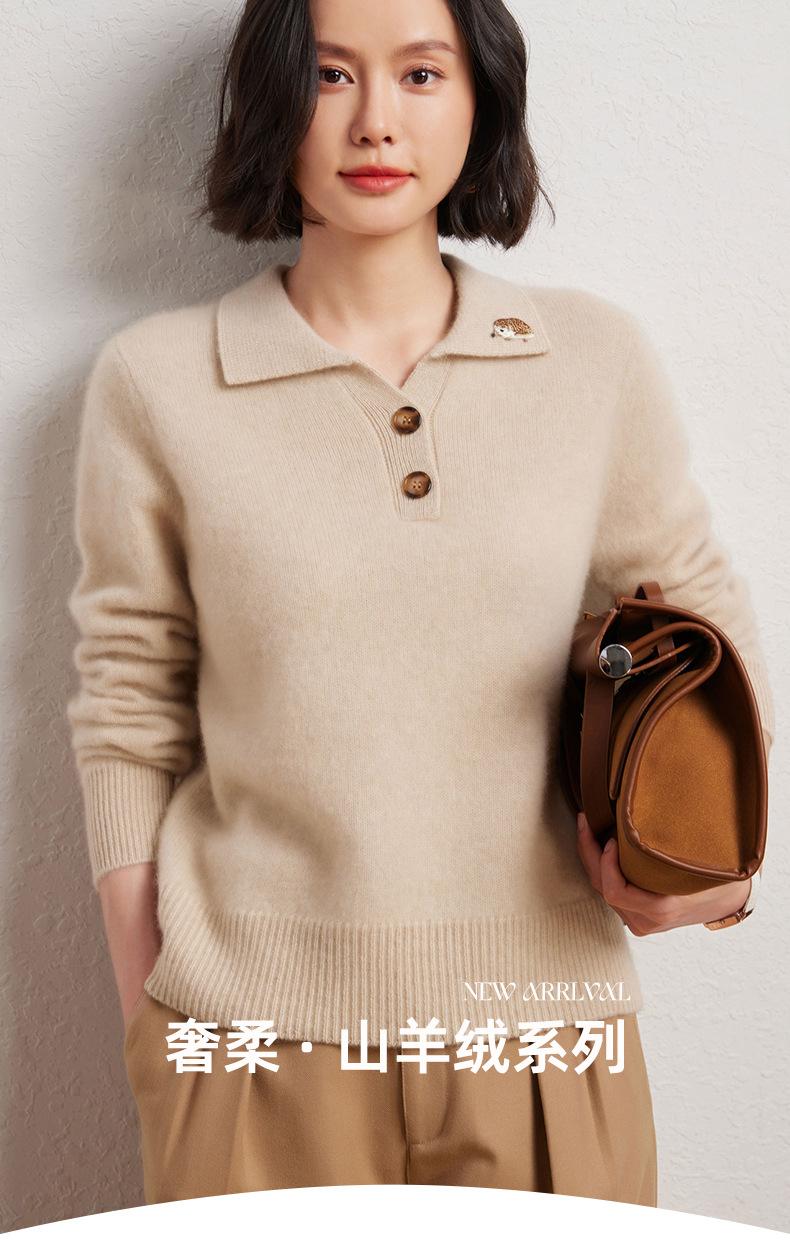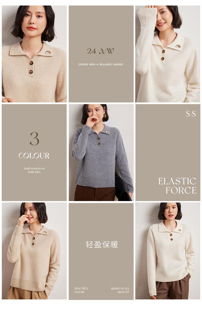Suéter de otoño e invierno para mujer, jersey de cuello tipo polo, jersey de punto suelto de cachemira sin costuras con bordado de manga larga y dos hebillas.