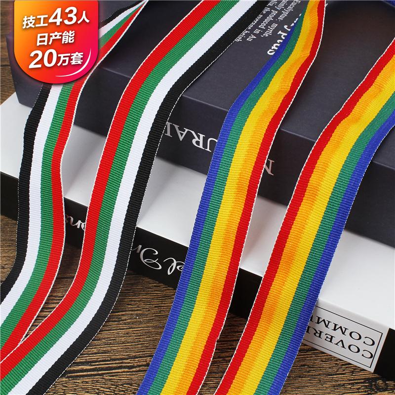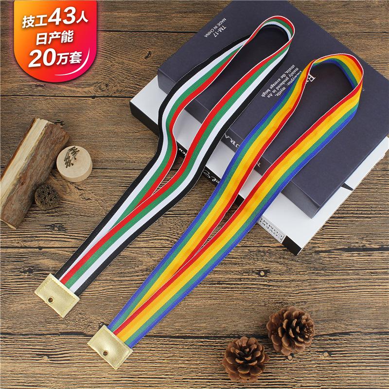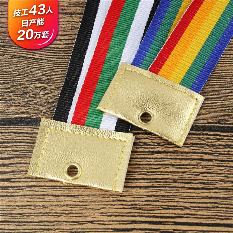 Cinta de Poliéster Liso Rayado Bloque de Color Arcoíris Correa de Medalla en Stock Lanyard de Medalla de Competición Profesional Venta al por Mayor
