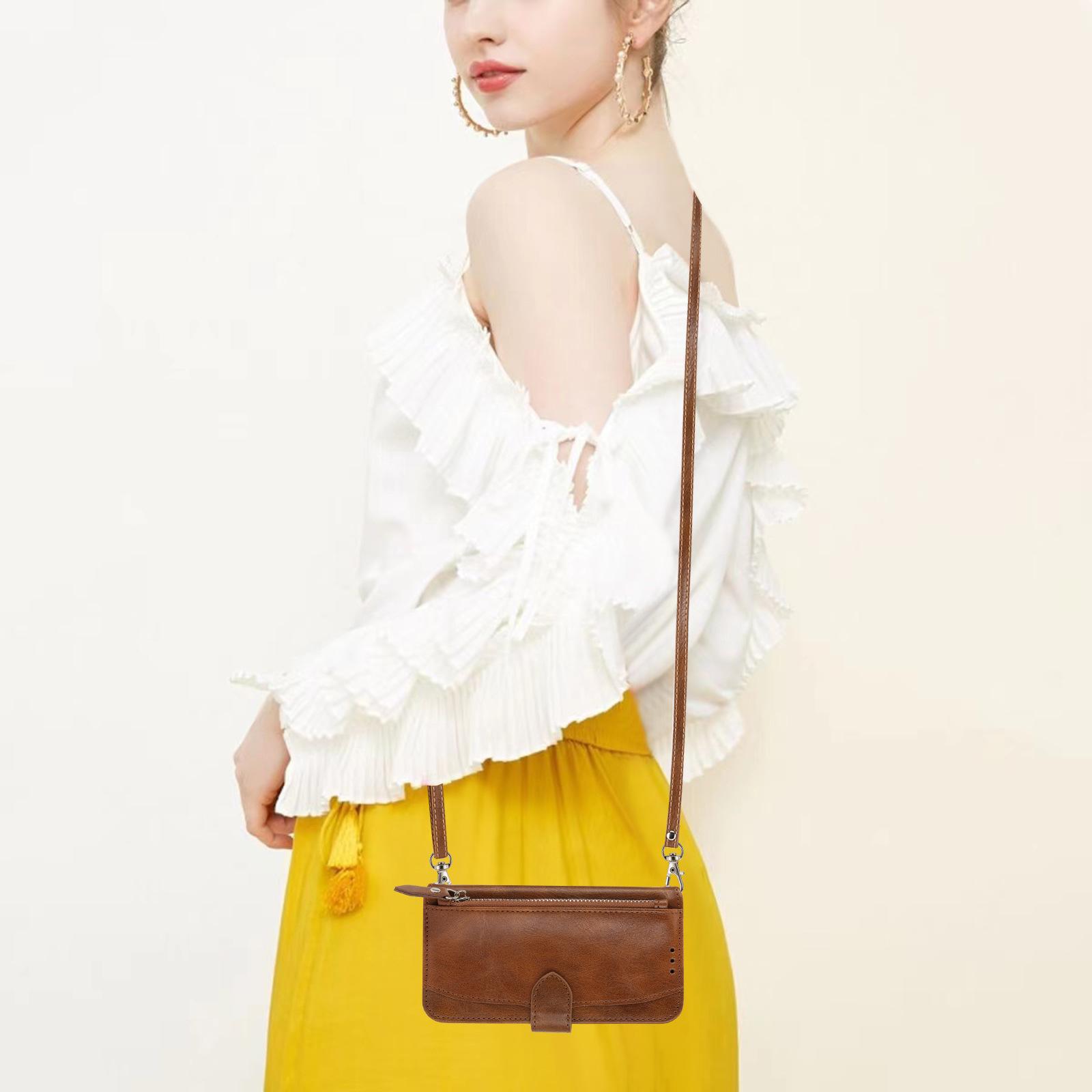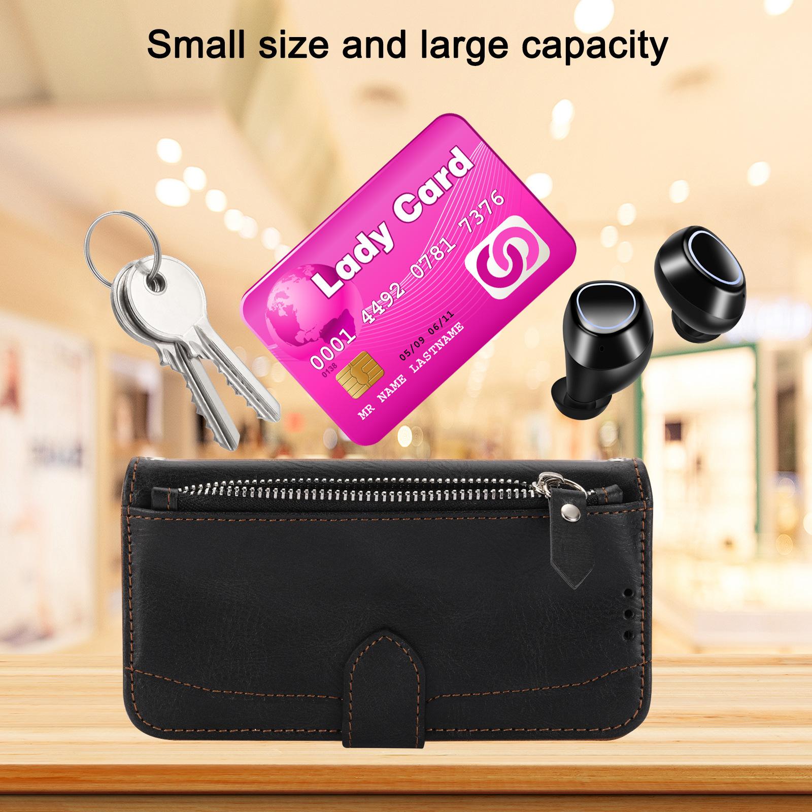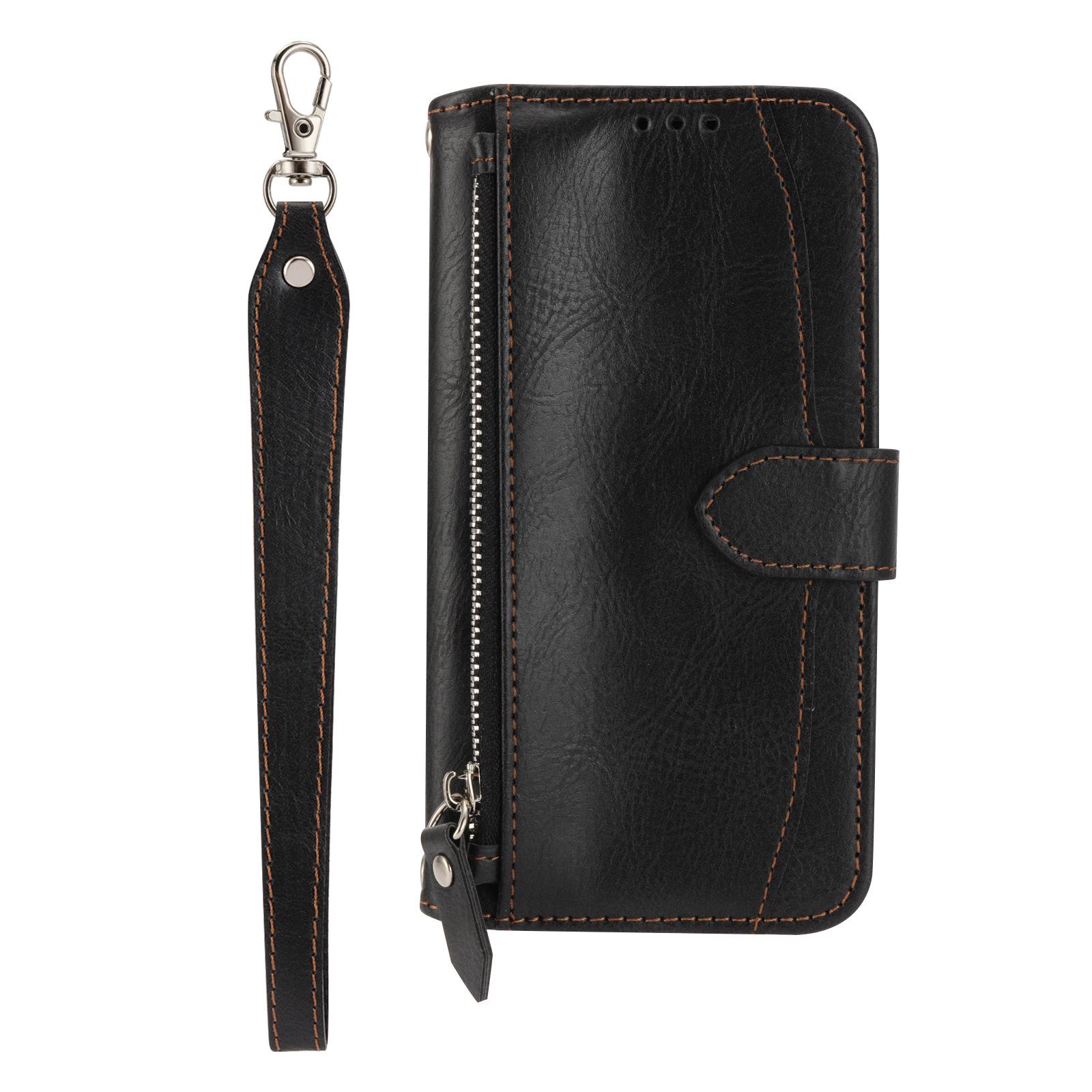 Funda de Cuero con Cremallera de Cuero Aceitado Adecuada para Funda de Teléfono Móvil Apple 16 15Promax14 Tarjeta 12Xr13 Billetera Color Puro Anticaída
