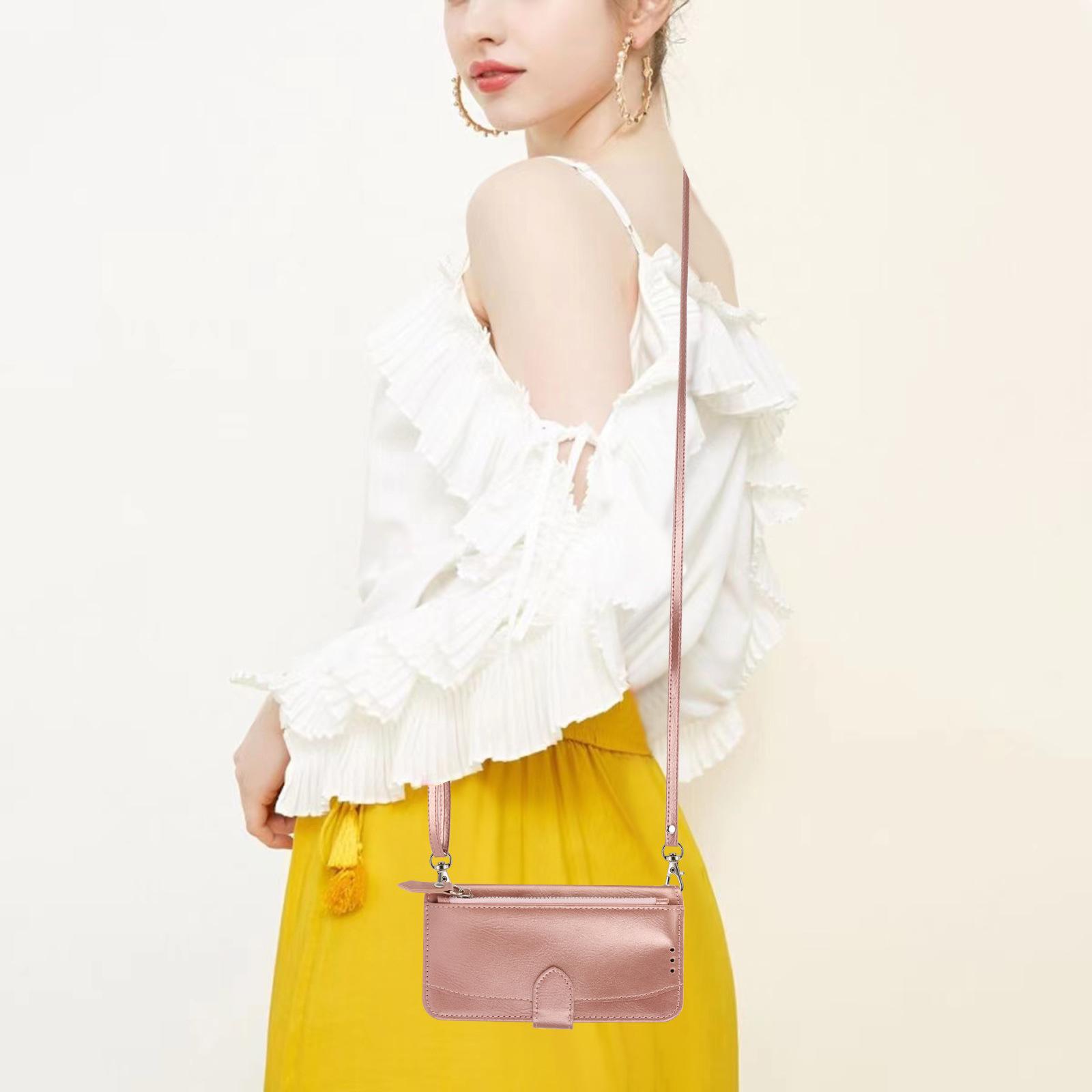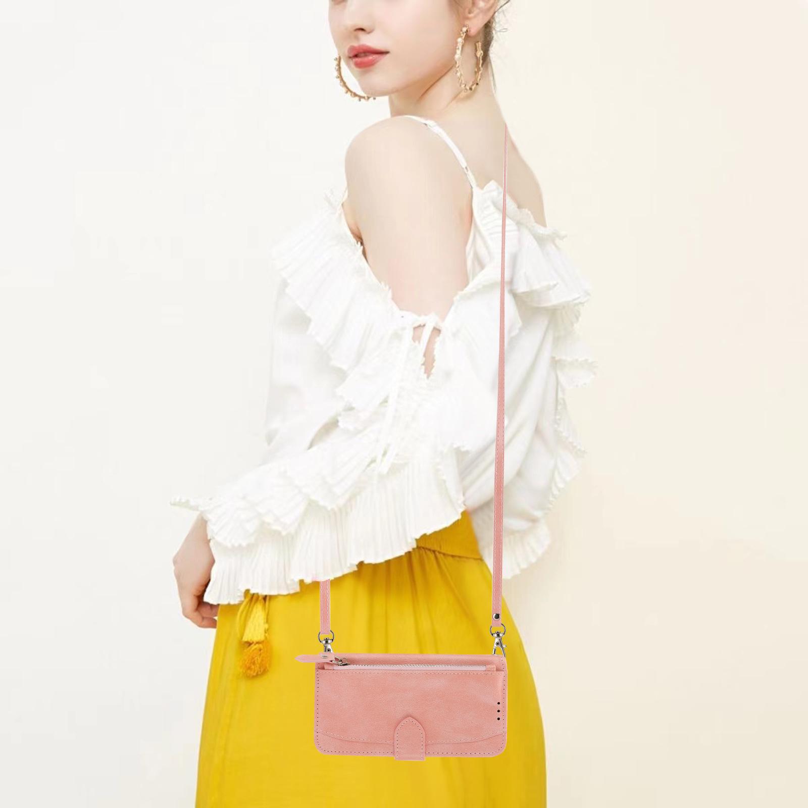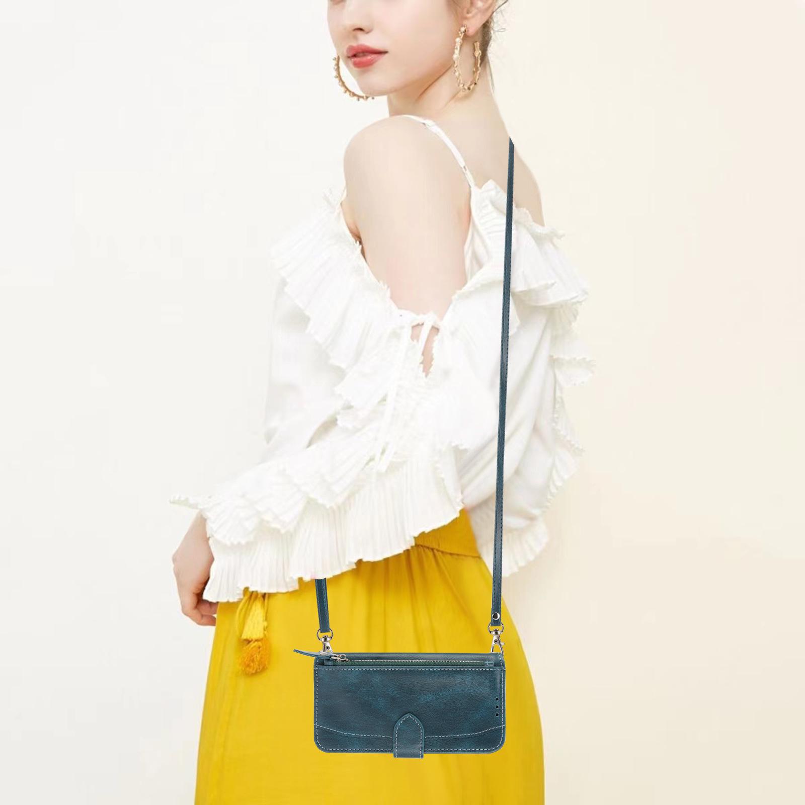 Funda de Cuero con Cremallera de Cuero Aceitado Adecuada para Funda de Teléfono Móvil Apple 16 15Promax14 Tarjeta 12Xr13 Billetera Color Puro Anticaída