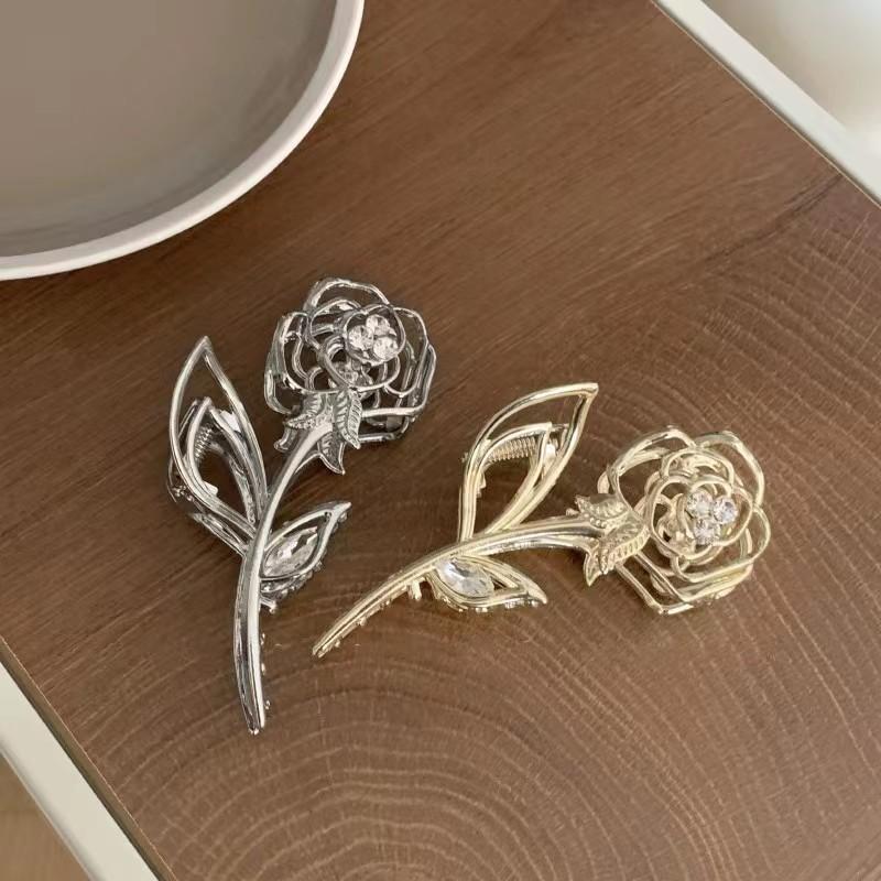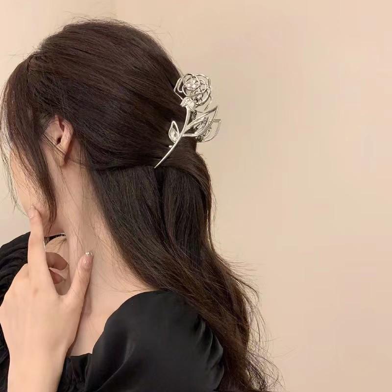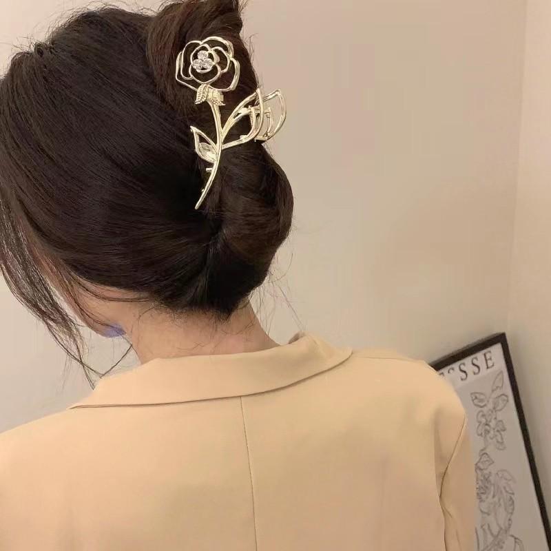 Horquilla rosa sencilla de alta gama con disco de metal para la parte trasera de la cabeza, pinza para el pelo grande y elegante con forma de tiburón.