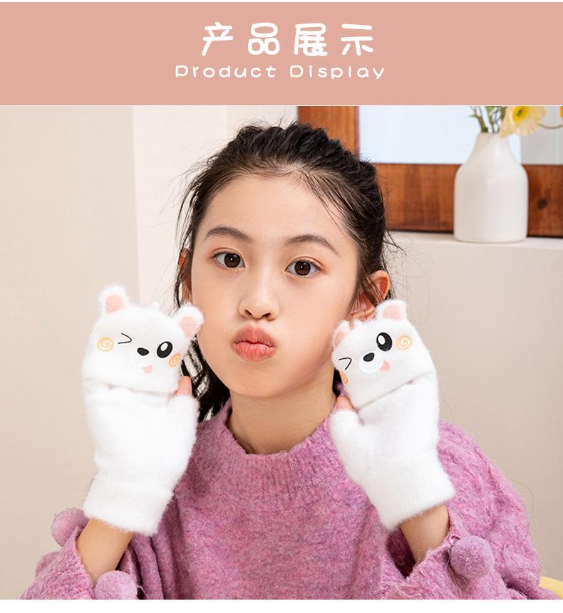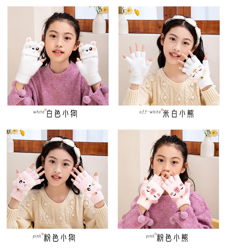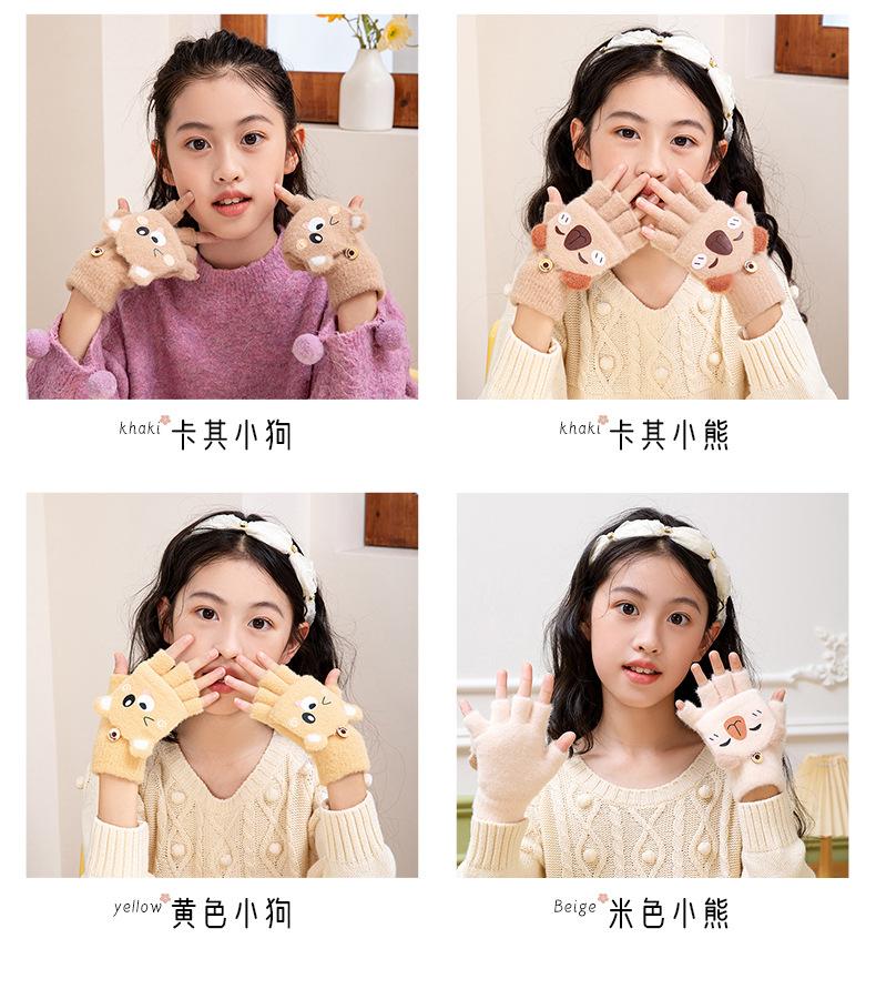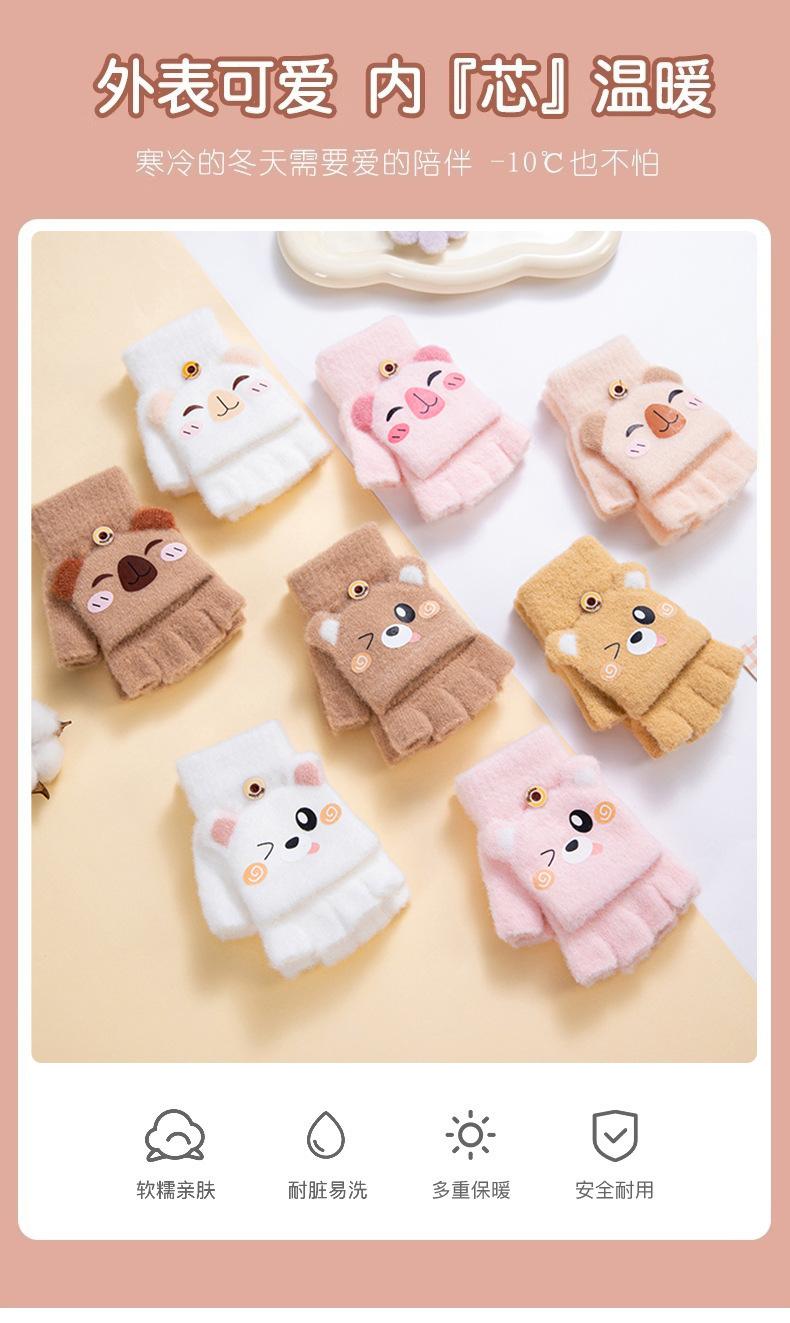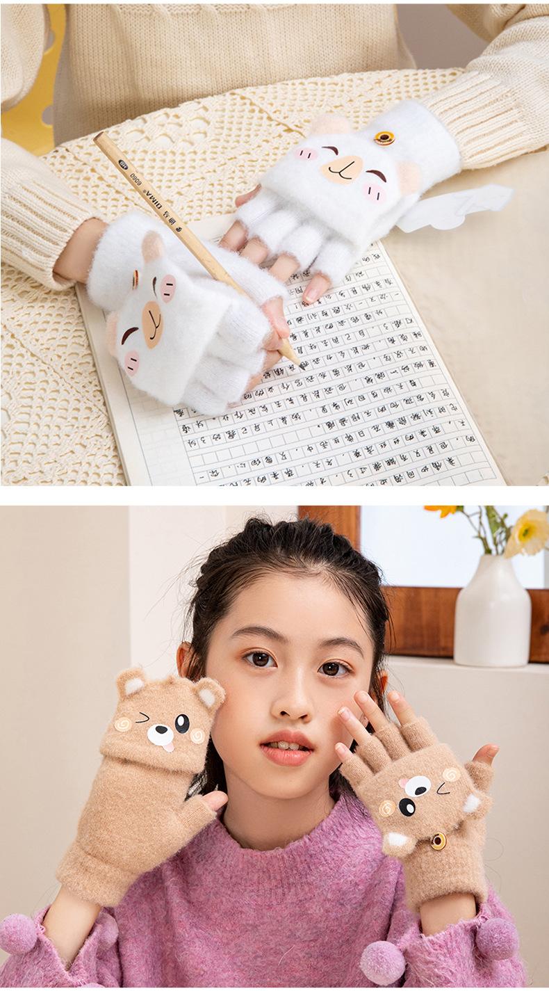 Guantes de invierno cálidos para niños, bonitos guantes de cinco dedos para bebés, para hombres y mujeres, resistentes al frío, con dibujos animados, de medio dedo y tapa abatible.