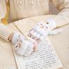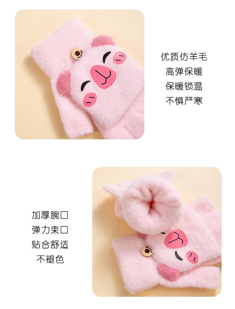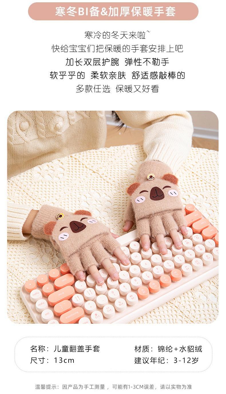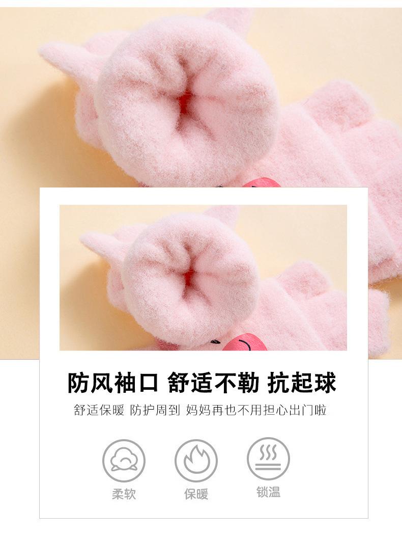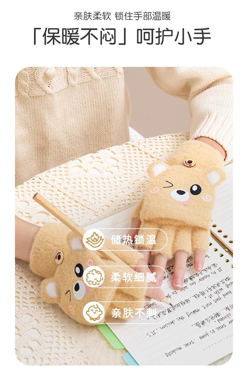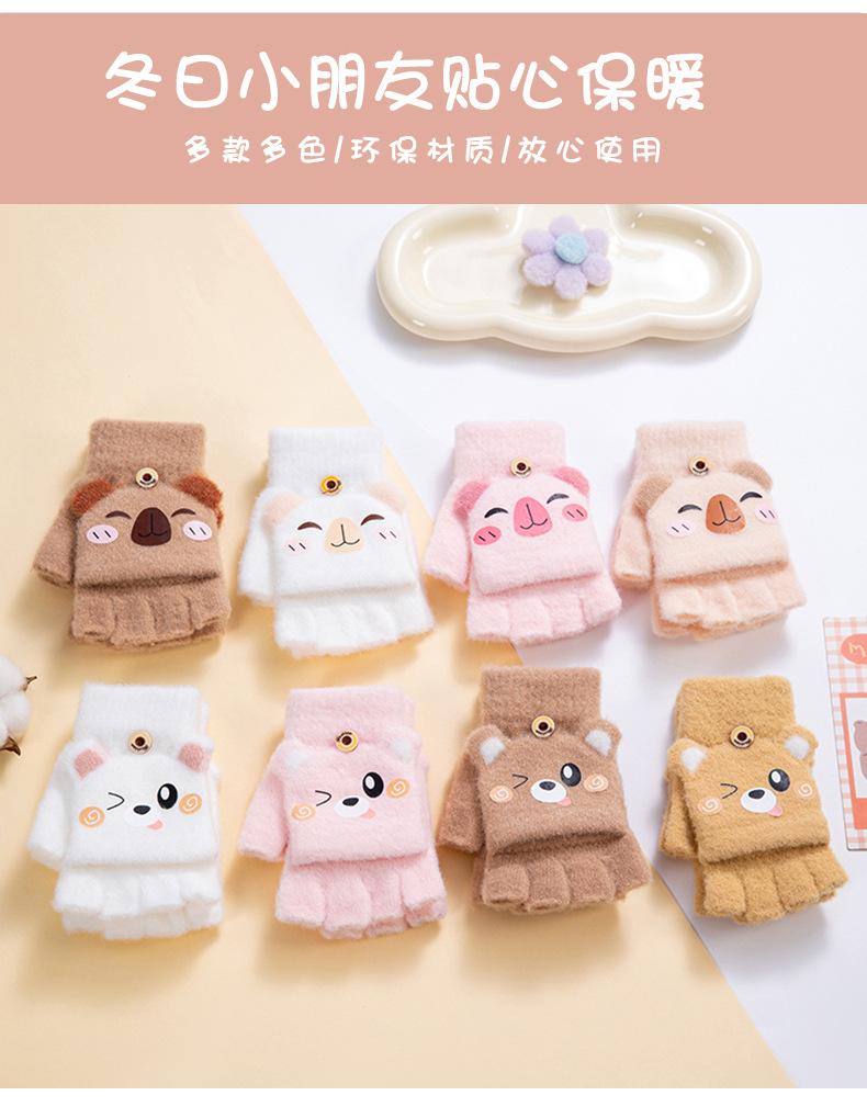 Guantes de invierno cálidos para niños, bonitos guantes de cinco dedos para bebés, para hombres y mujeres, resistentes al frío, con dibujos animados, de medio dedo y tapa abatible.