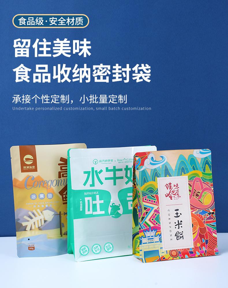 Bolsa de plástico para envasado de refrigerios, bolsa de envasado sellada para alimentos personalizada, bolsa de envasado autosellada autoportante, bolsa de envasado al vacío para alimentos personalizada