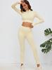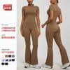 Estilo Europeo Nuevo Conjunto de Yoga sin Costuras para Mujer Deportivo Fitness Ajustado Manga Larga Cintura Alta Sencillo Ajustado Color Café Sensación Desnuda
