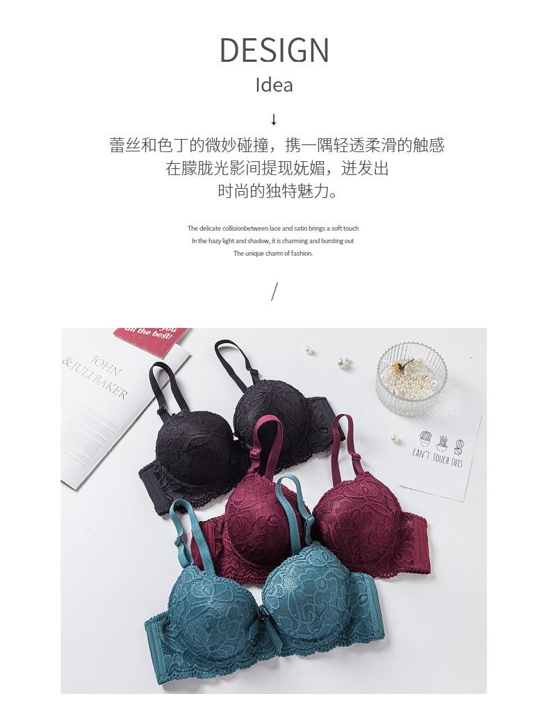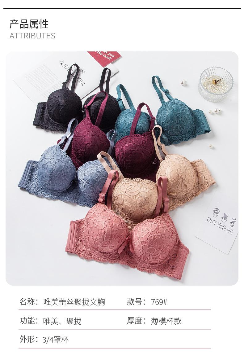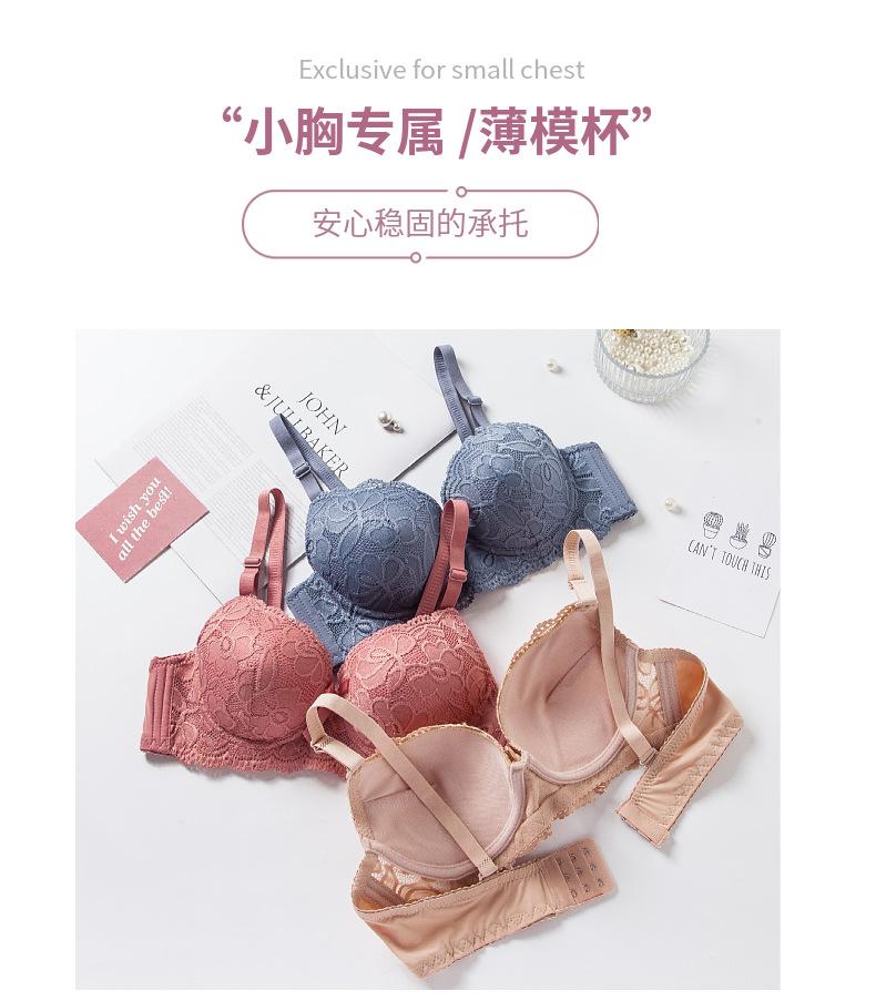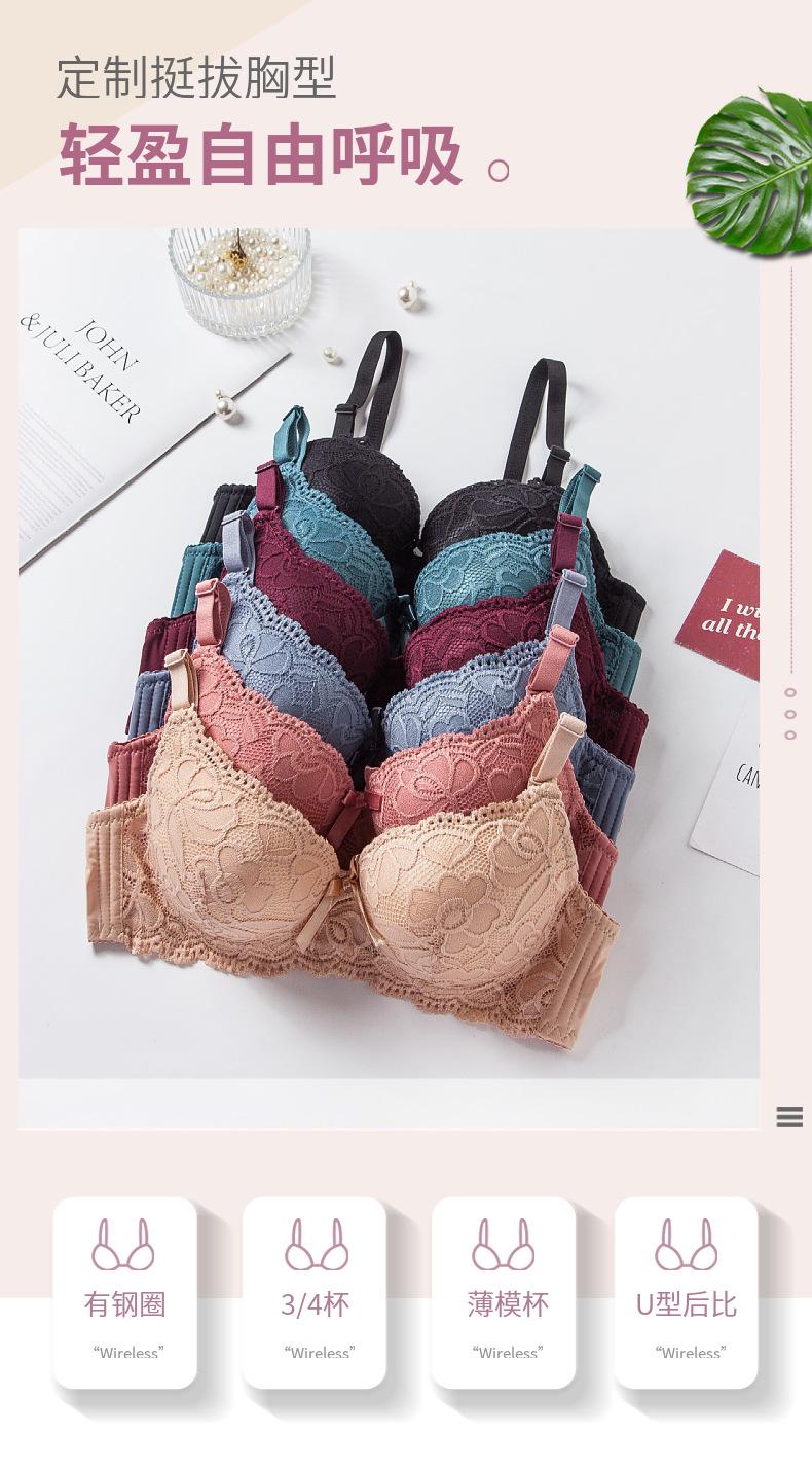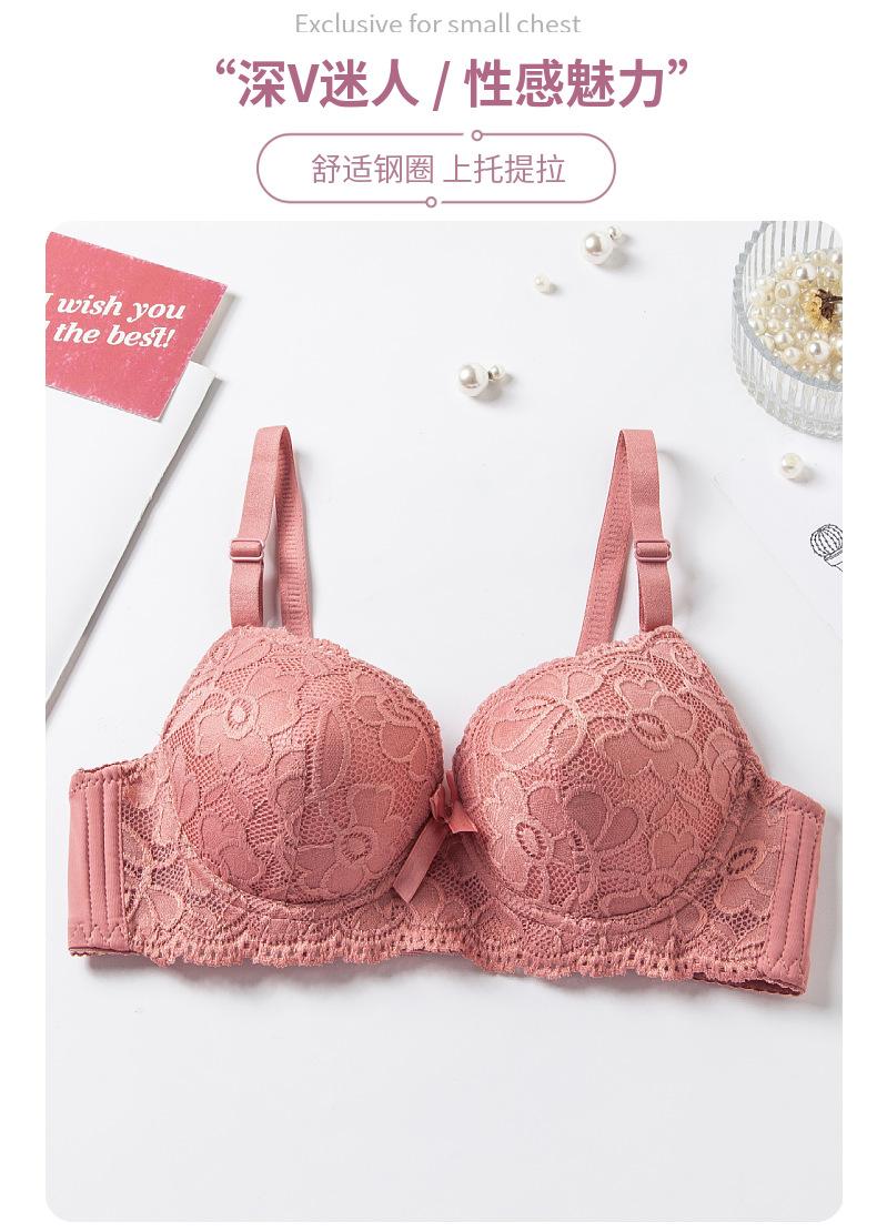 Compra Sujetador fino sexy de encaje transfronterizo de comercio exterior, pecho pequeño fruncido con aro de acero, colección de pecho ajustable, ropa interior de mujer al por mayor en Joom.pro