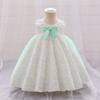 Vestido de bautizo para bebé de un año, transfronterizo, europeo y americano, vestido de novia de satén con mangas voladoras, vestido de princesa, vestido de noche para bebé