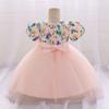 Vestido de bautizo para bebé de un año, estilo europeo y americano, con mangas abullonadas, estampado de princesa abullonada, para la primera fiesta de cumpleaños.
