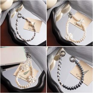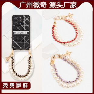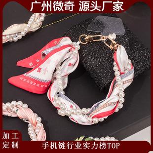 Cadena para teléfono móvil con cordón, estilo cuerda, creativa bufanda de seda, nueva, corta, trenzada con perlas, para la muñeca. |