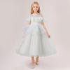 Vestido de malla de nuevo estilo de comercio exterior para niñas, vestido de novia de manga larga hecho a mano con cuentas, vestido de princesa, vestido de niña