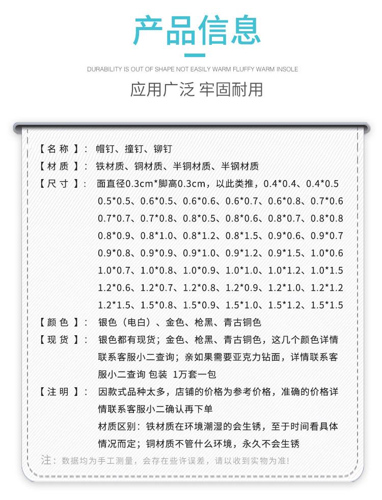 ![]() Clavo de cabeza redonda de dos pies, clavo de burbuja, clavo de hongo, clavo decorativo para bricolaje, clavo de cabeza redonda, pistola de bronce negro, dorado y plateado, 0.80,02 ¥Comprar ahora
