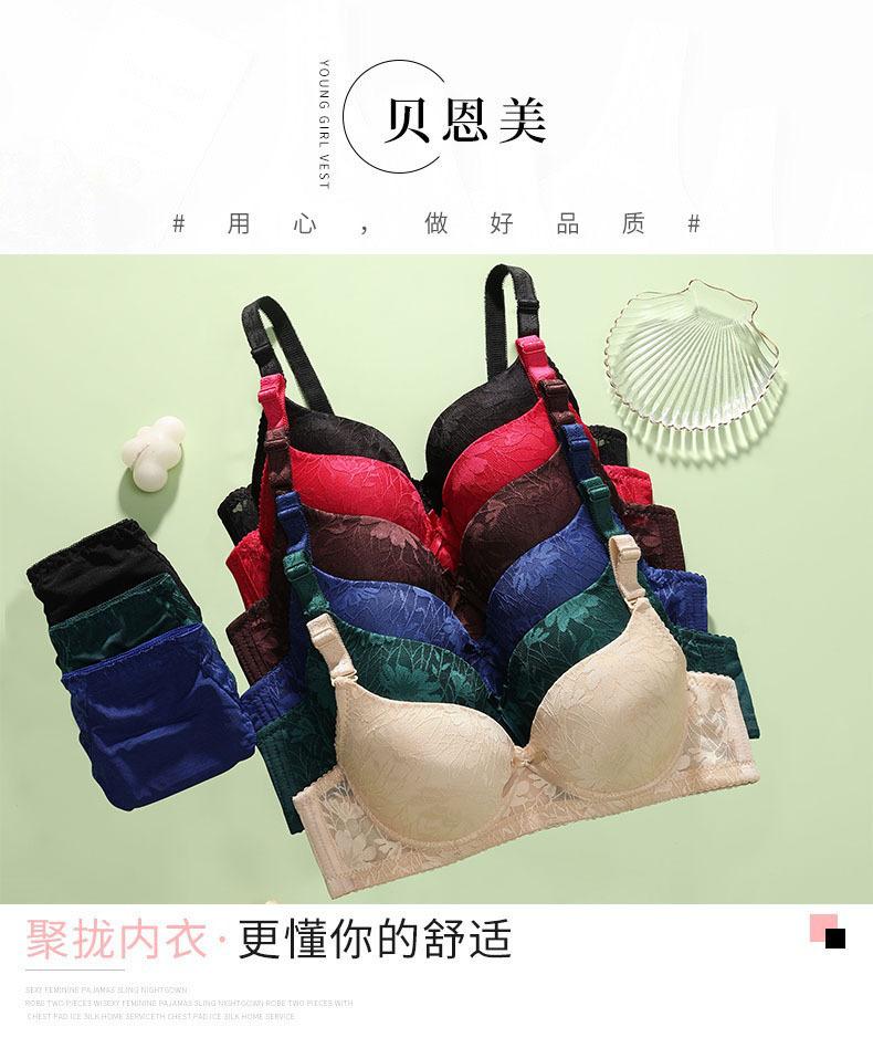 Conjunto de sujetador transpirable y cómodo con aros de acero finos transfronterizos, ropa interior de talla grande para mujer, ajustable y con accesorio para el pecho