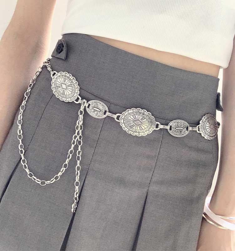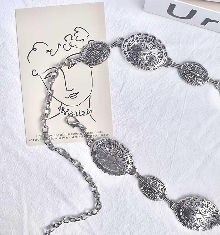 Cadena de cintura de alta calidad europea y americana, diseño de metal, decoración de Joker, falda retro a juego, cinturón de estilo étnico, venta al por mayor