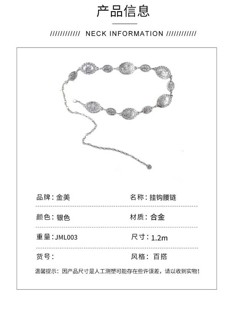 [Silver] Metal size oval waist chain