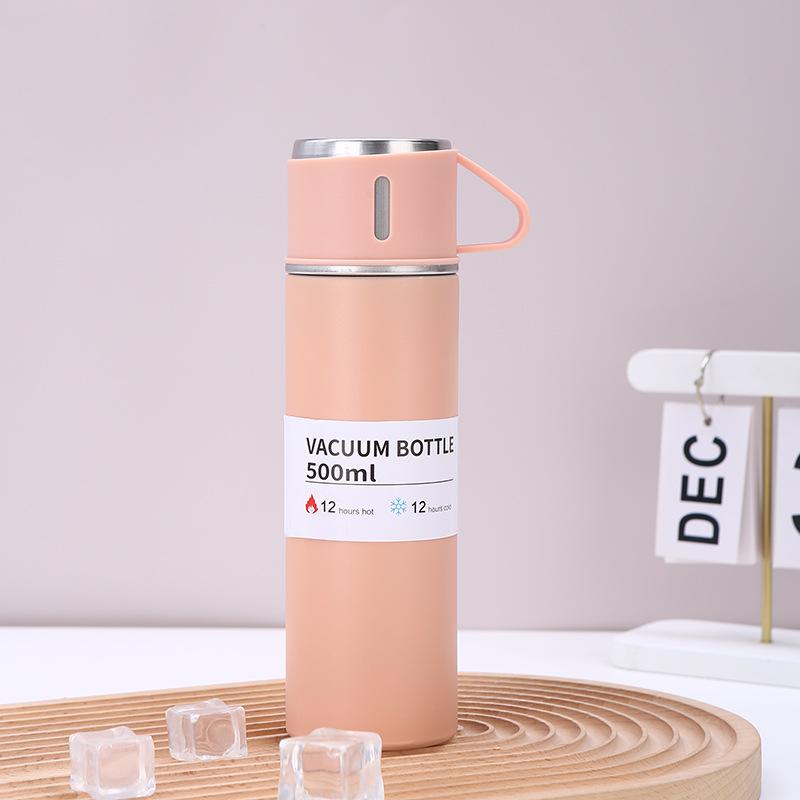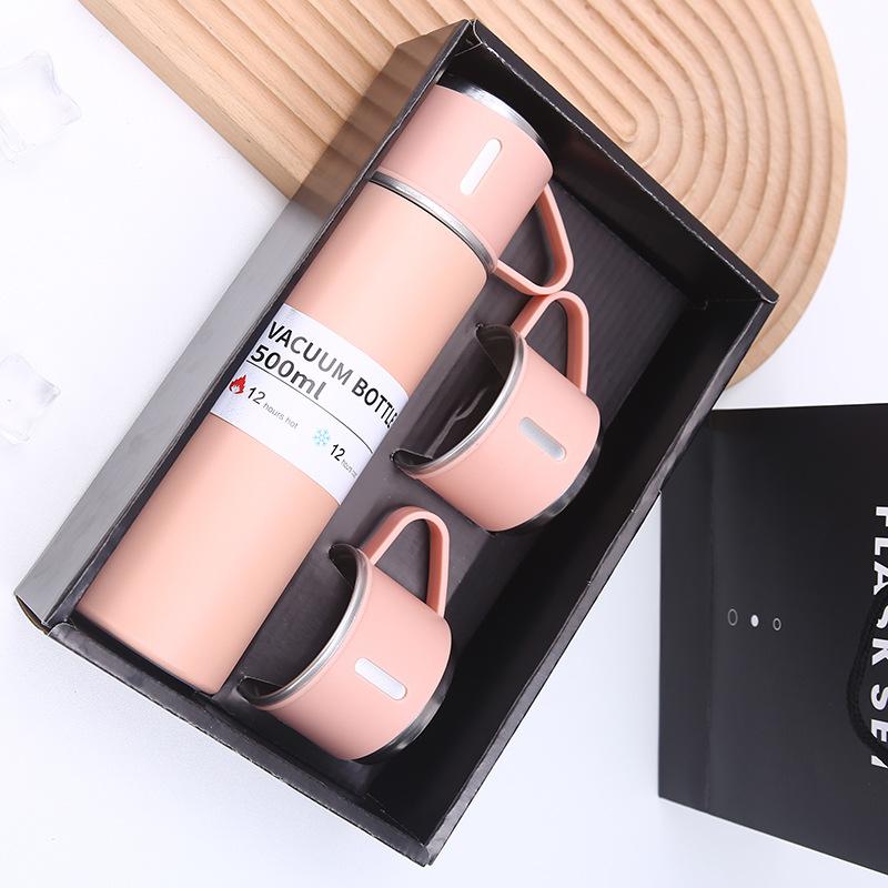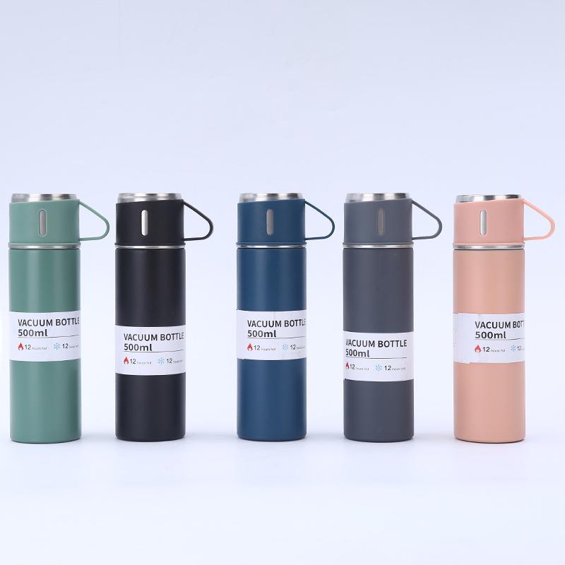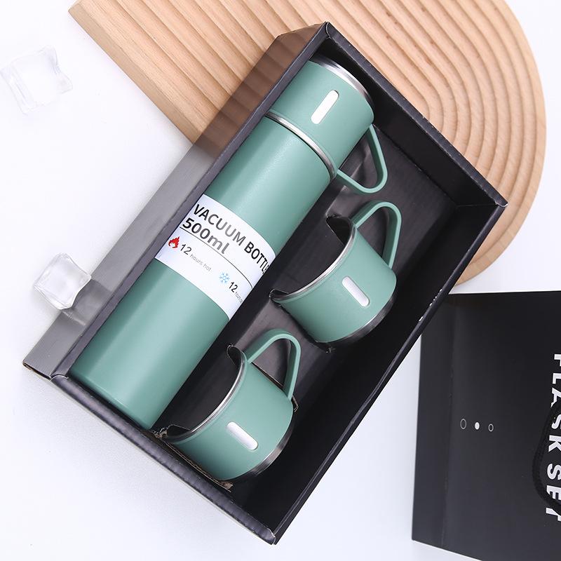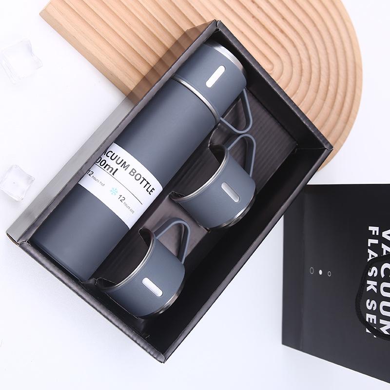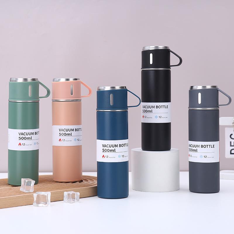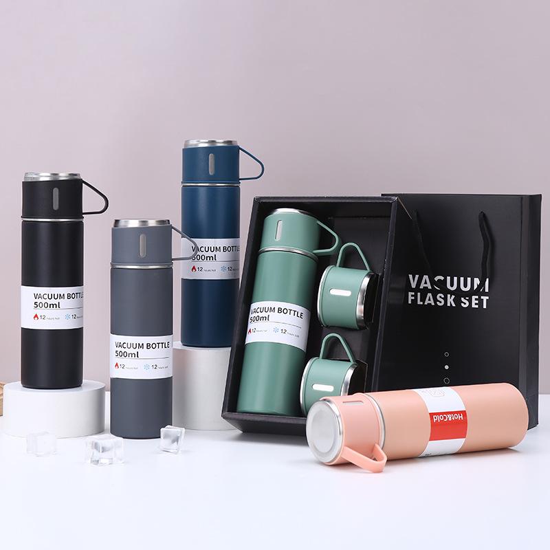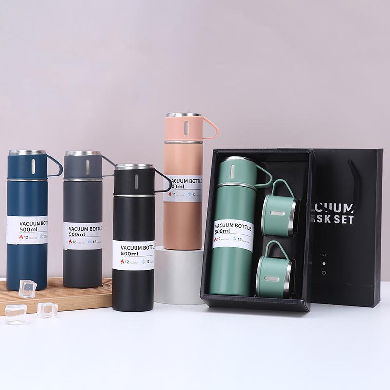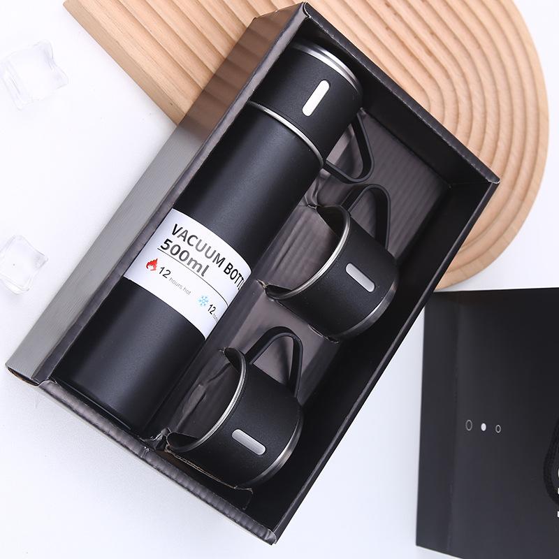 Nueva taza de vacío de acero inoxidable 304, simple, de una taza, con tres tapas, recta, caja de regalo, ideal para regalo de negocios, taza al por mayor