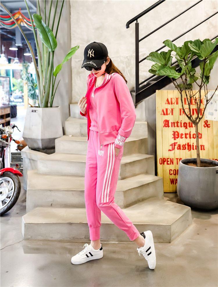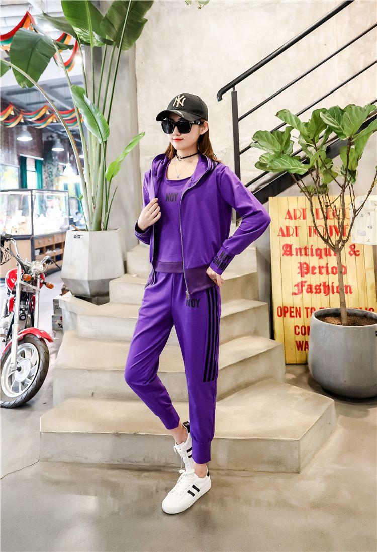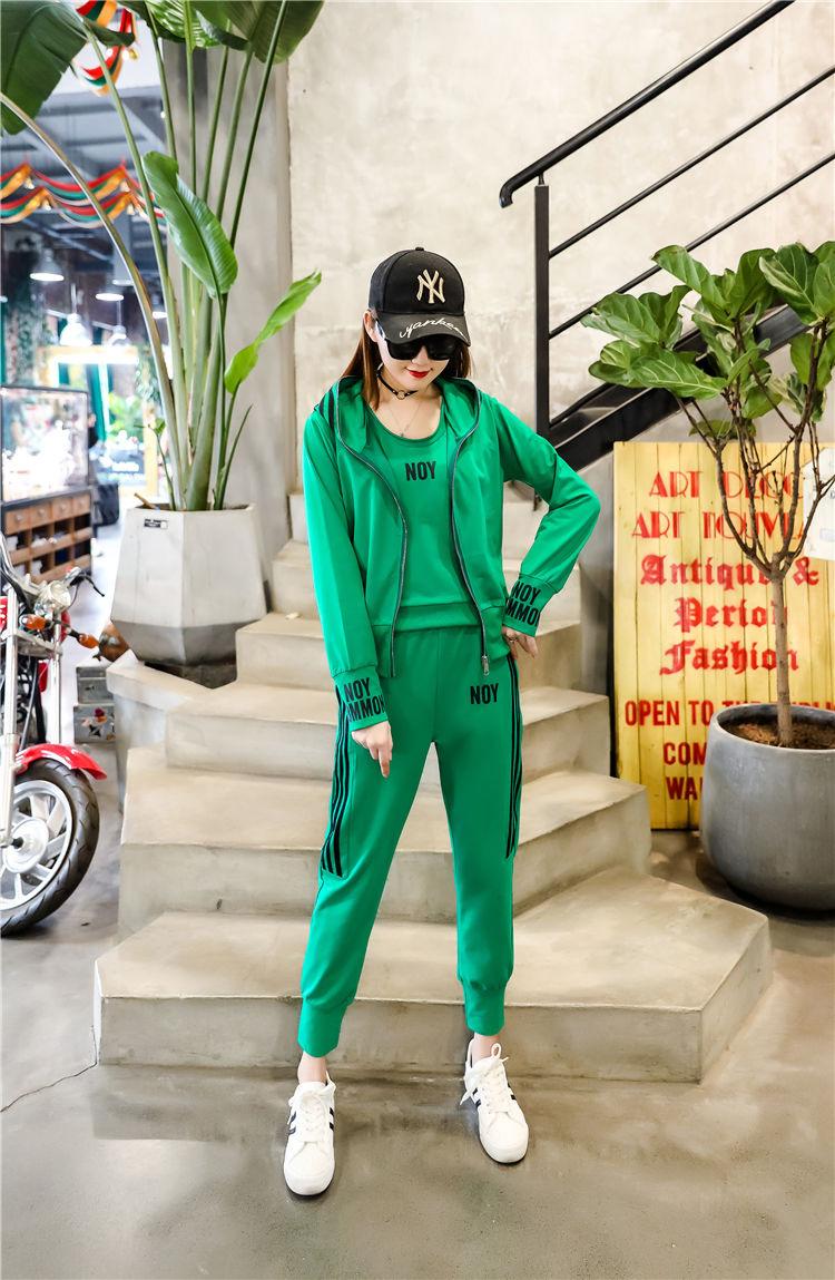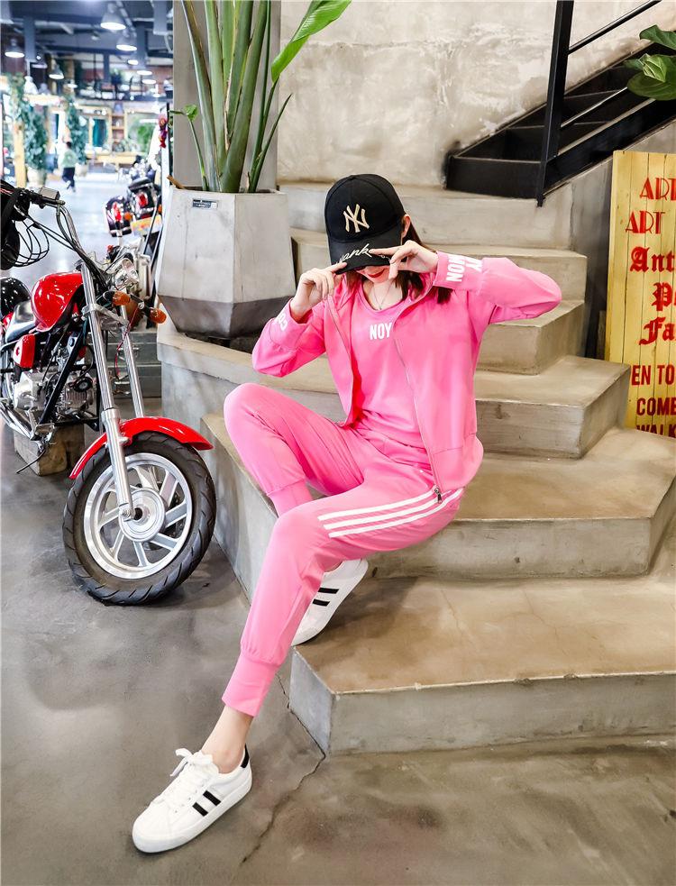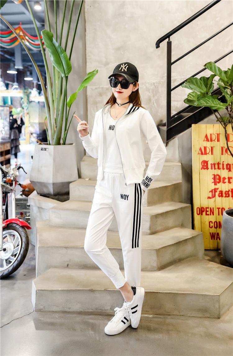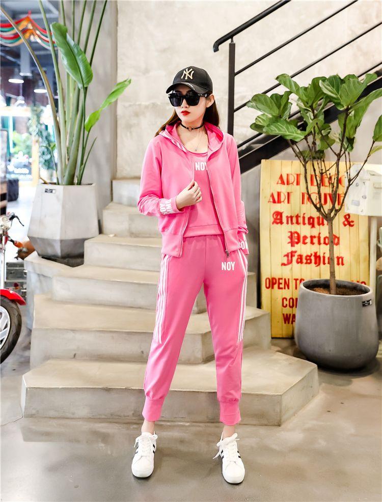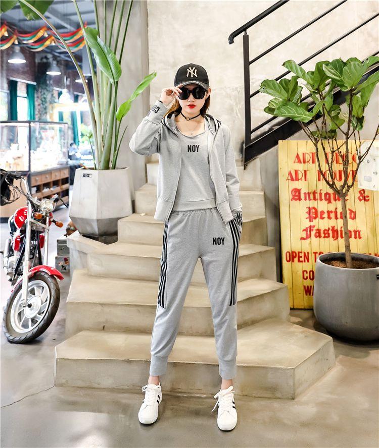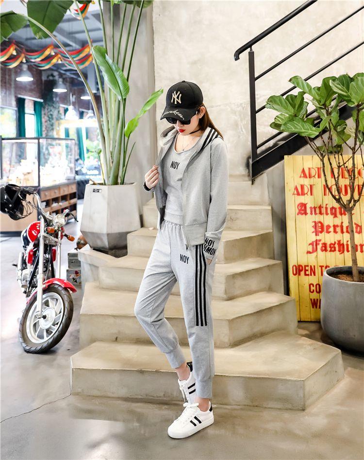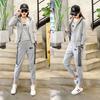 2023 Primavera y otoño nuevo traje deportivo casual para mujer ropa holgada para estudiantes moda de celebridades de Internet conjunto de tres piezas fábrica al por mayor