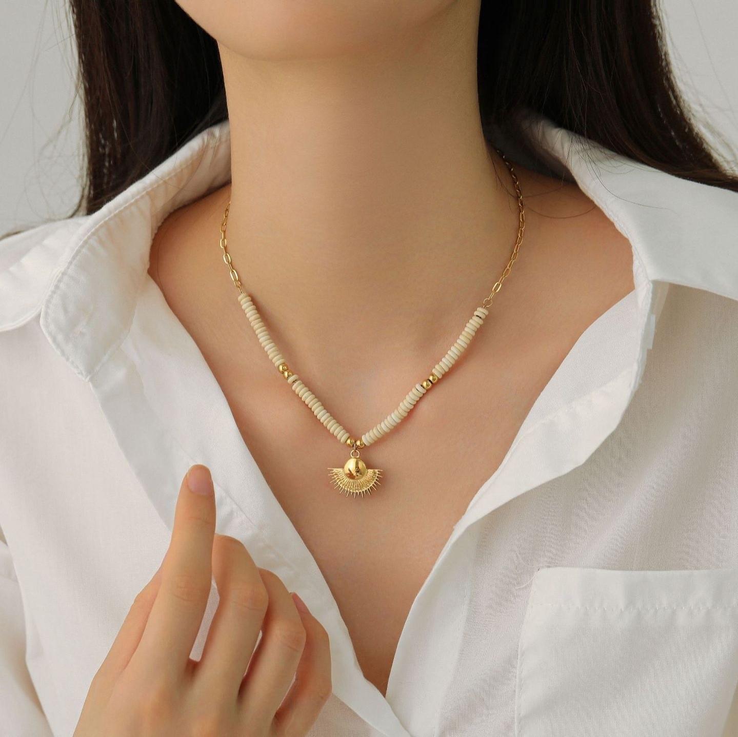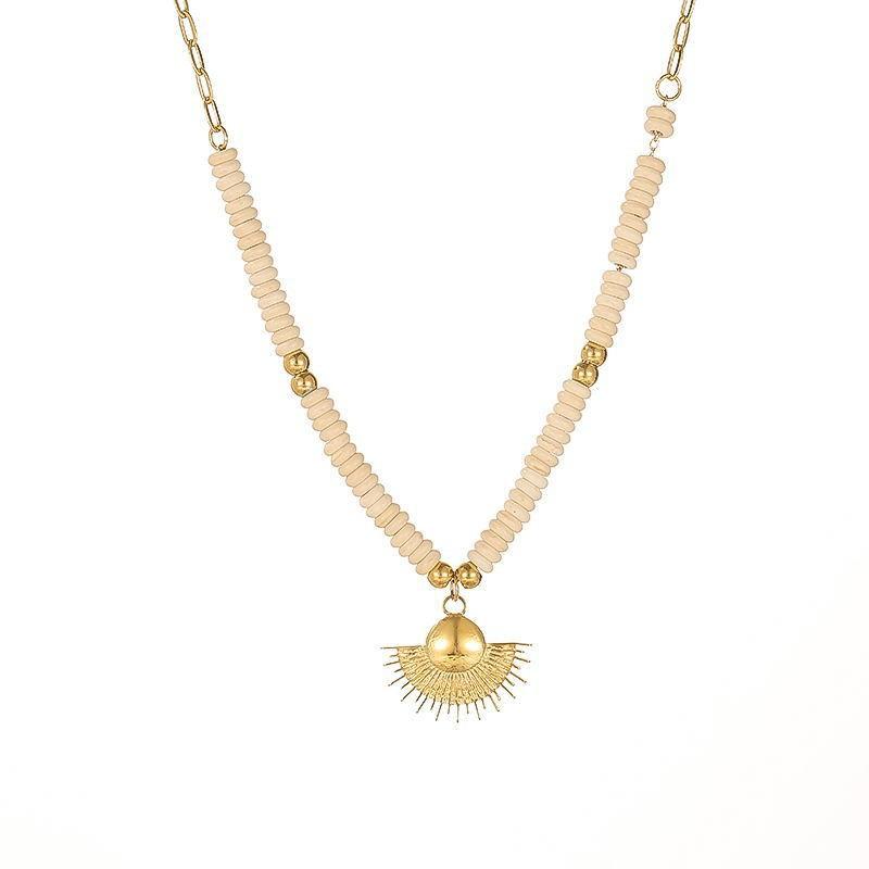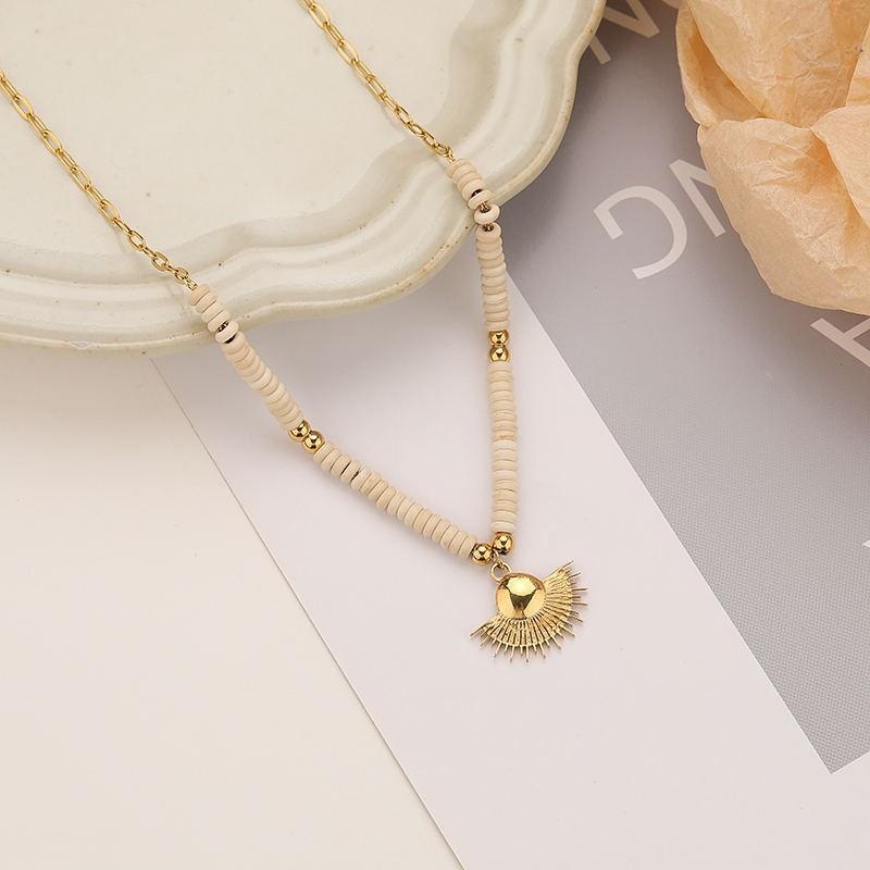 X129 gold fan-shaped rice bead necklace
