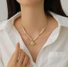 Collar de cuentas de colores elegantes de estilo europeo y americano con diseño de nicho dorado para mujer, de acero de titanio sin color.
