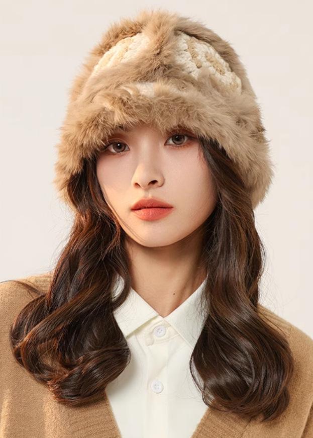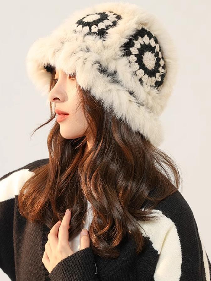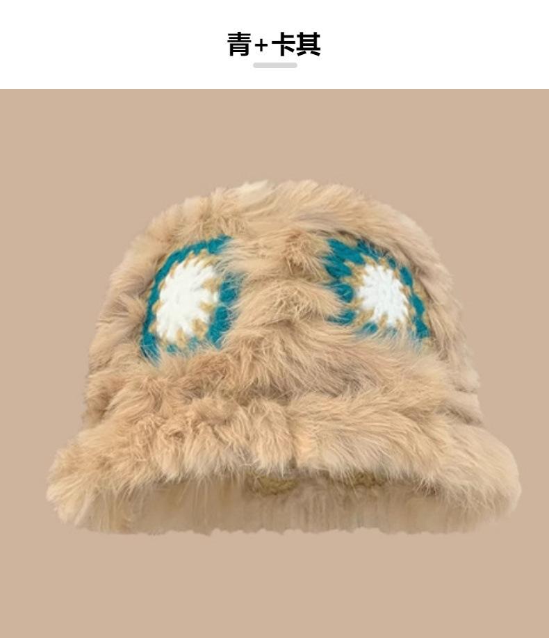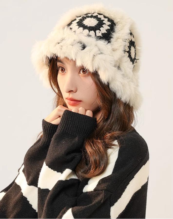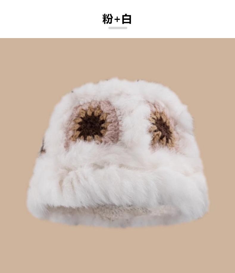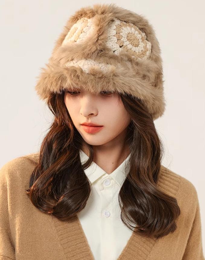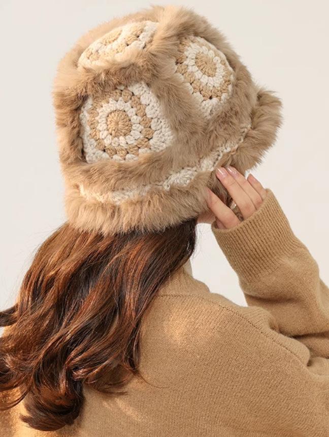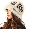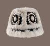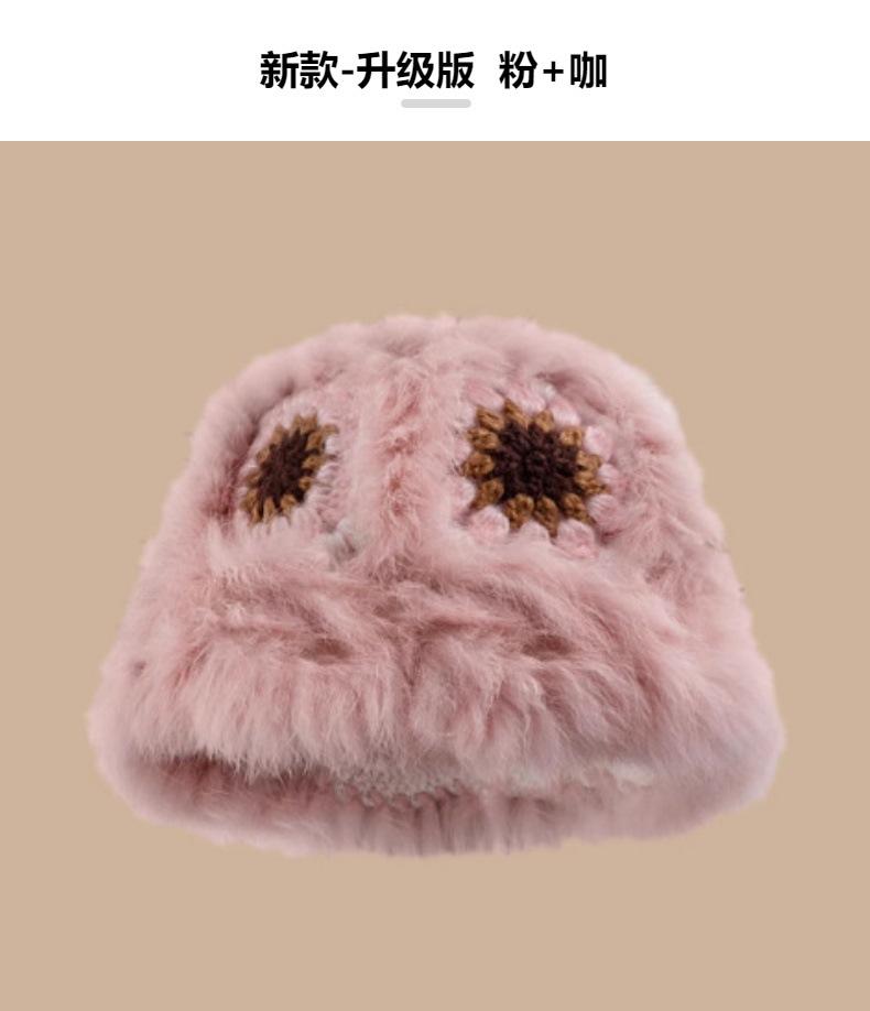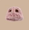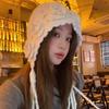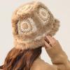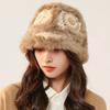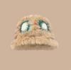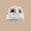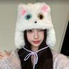 Gorro de lana cálido con protección para los oídos de felpa para mujer, hecho a mano, con gancho, de moda, con cara de león, pequeño gorro Lei Feng, para otoño e invierno