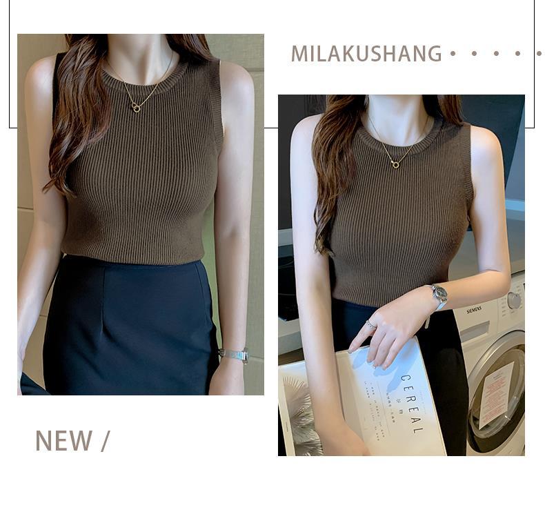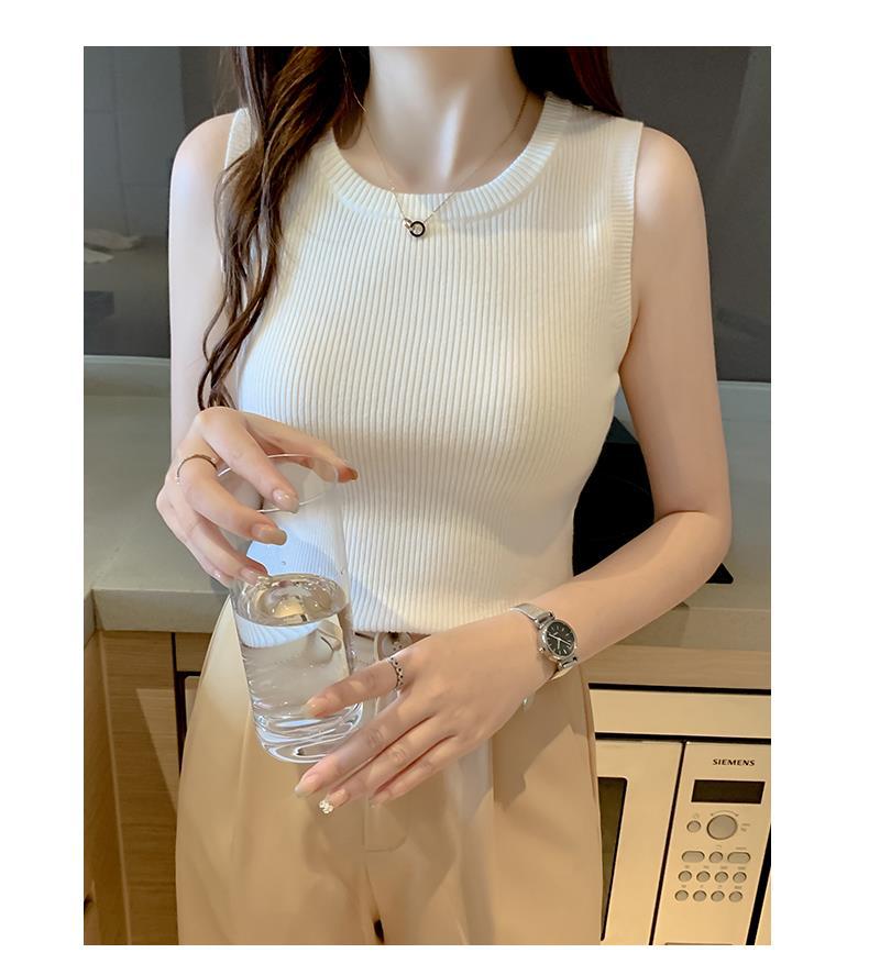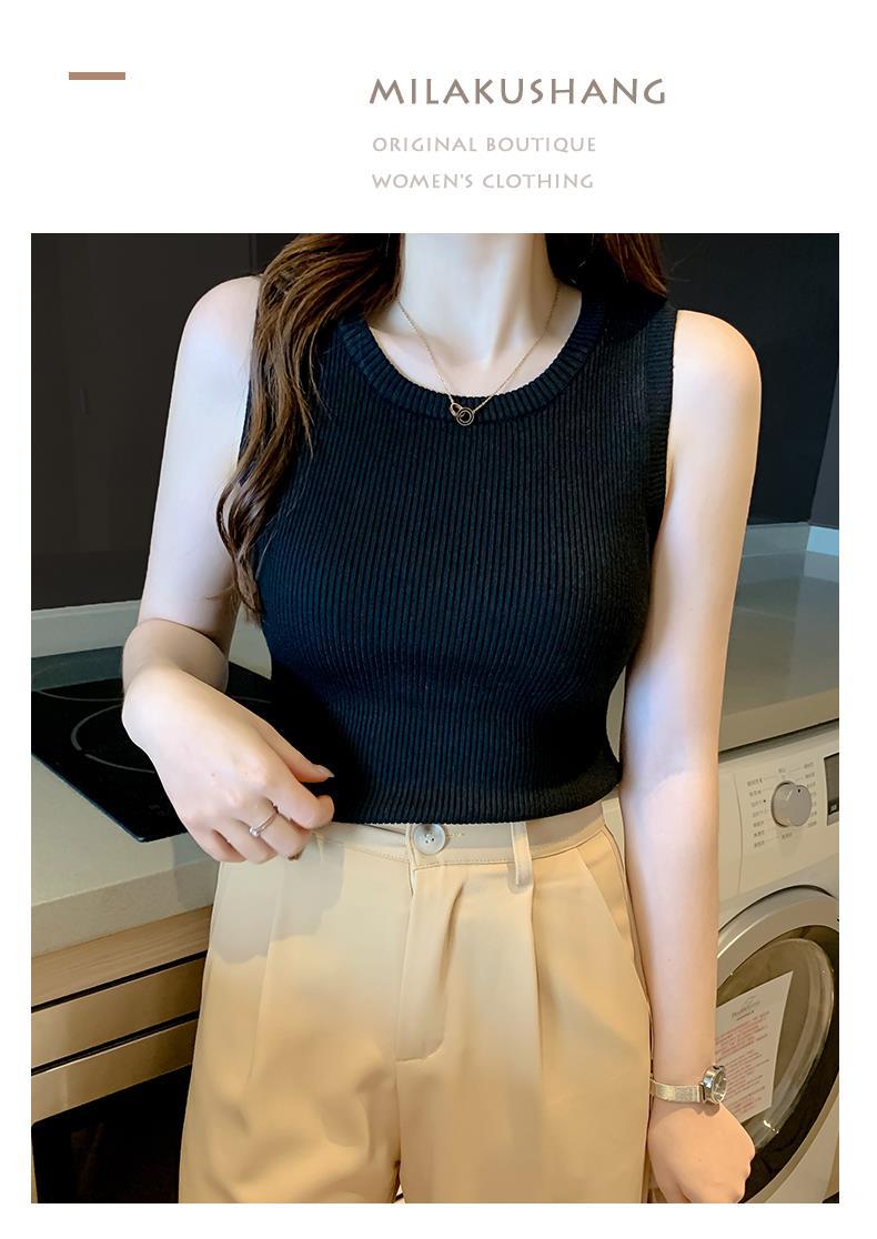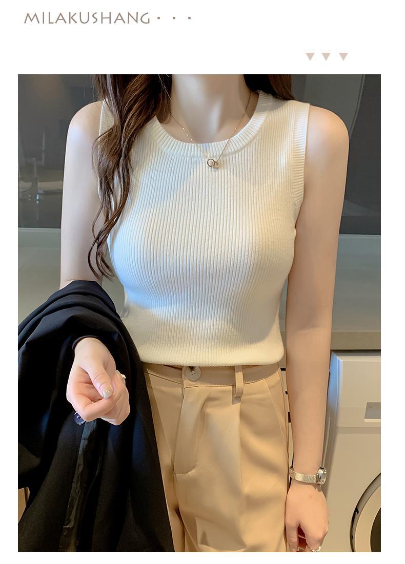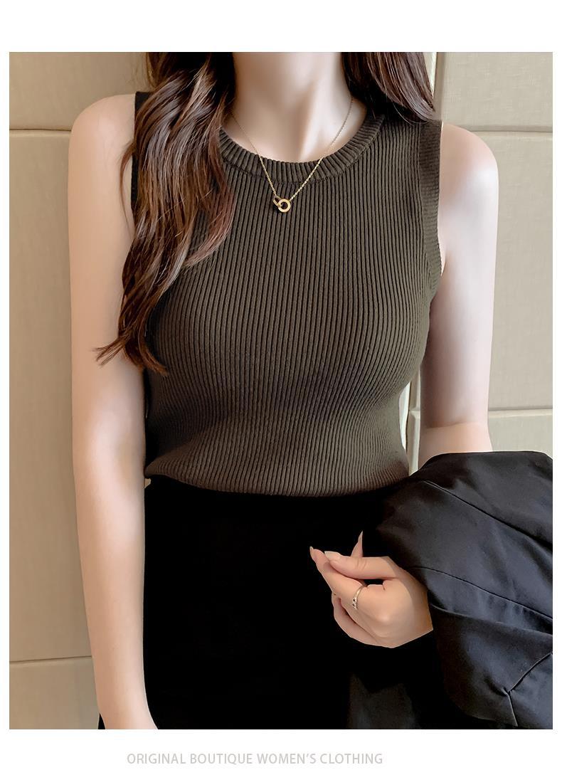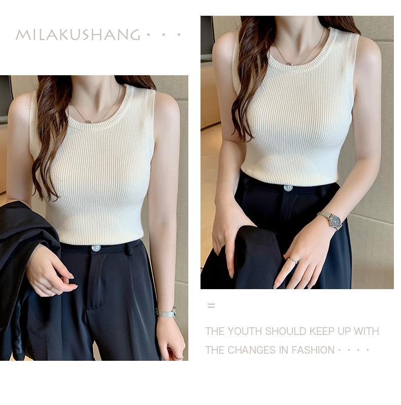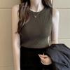 Camiseta interior de punto blanca de verano para mujer, moderna, básica, ajustada, corta, sin mangas