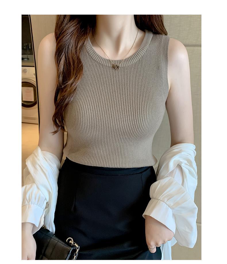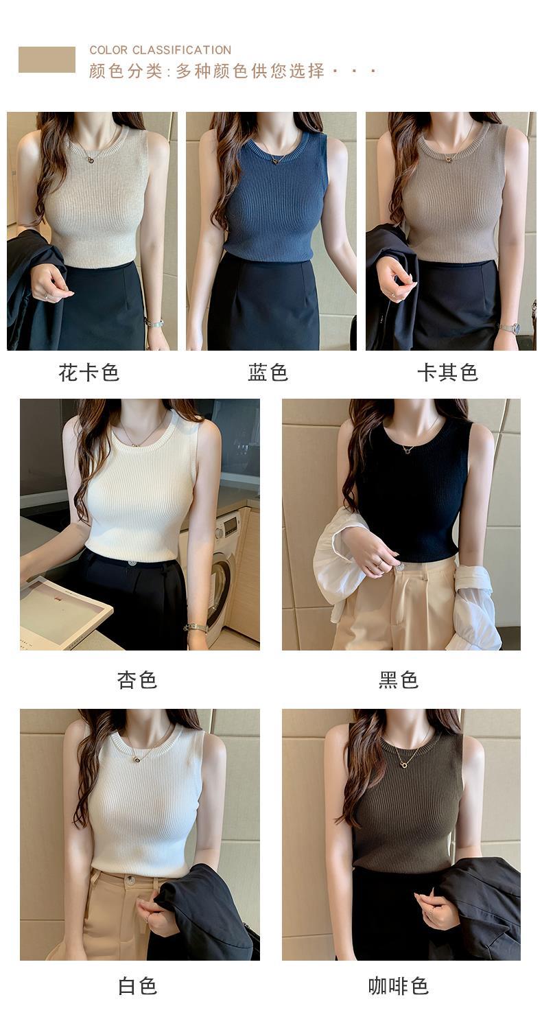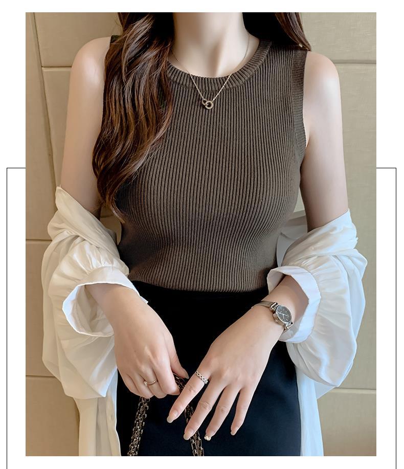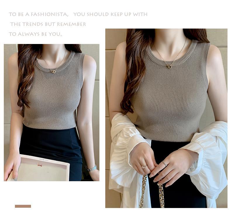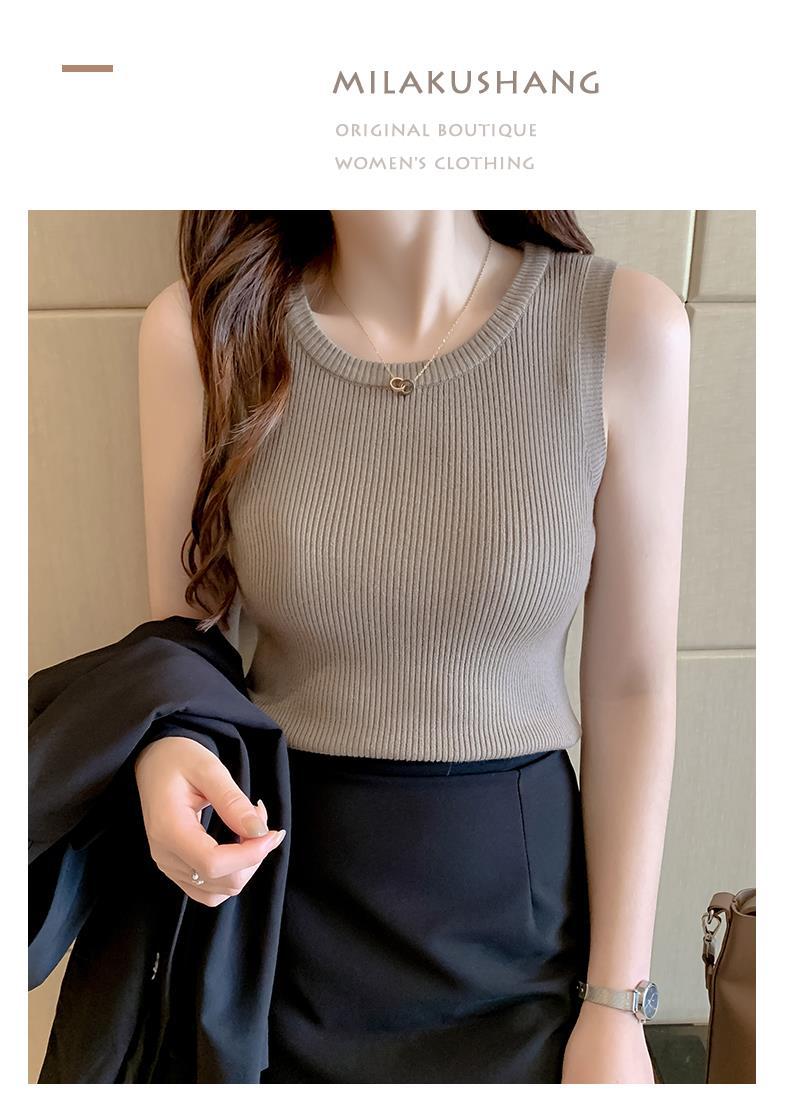 Camiseta interior de punto blanca de verano para mujer, moderna, básica, ajustada, corta, sin mangas
