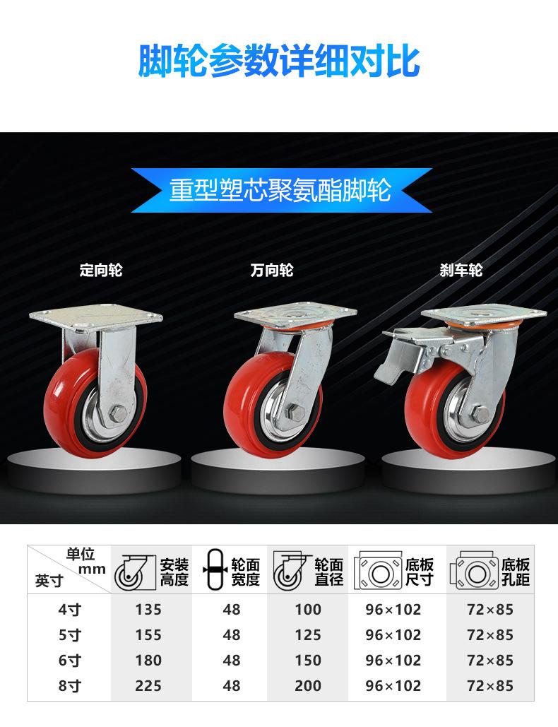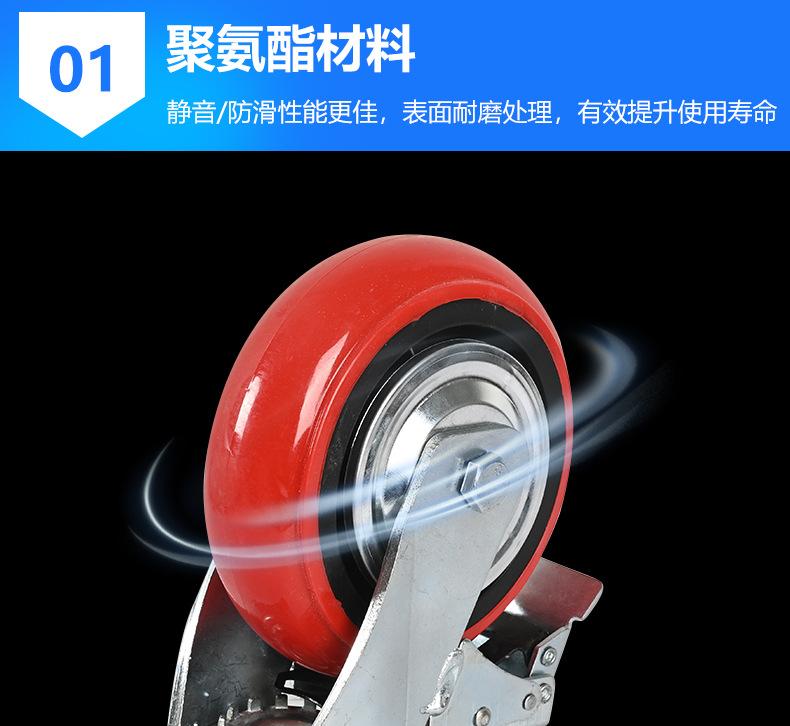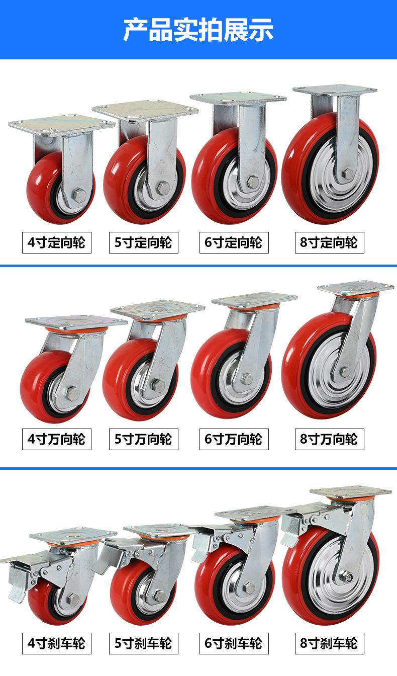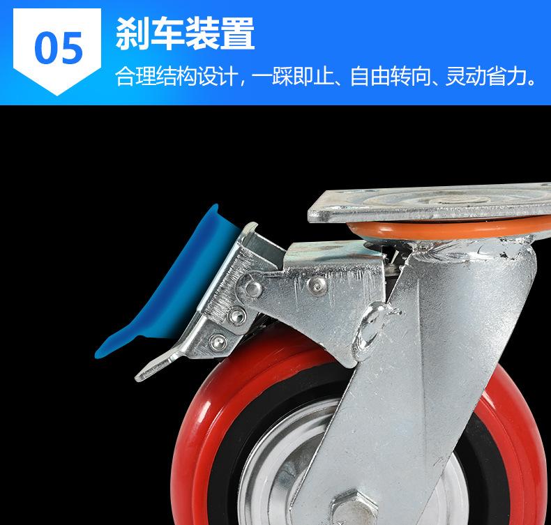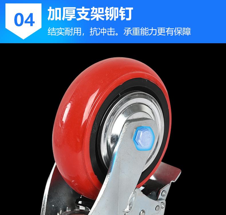 Ruedas giratorias de alta resistencia Ruedas de poliuretano Ruedas rojas coreanas Carretilla de mano Equipo de estantería Ruedas direccionales especiales Ruedas con freno
