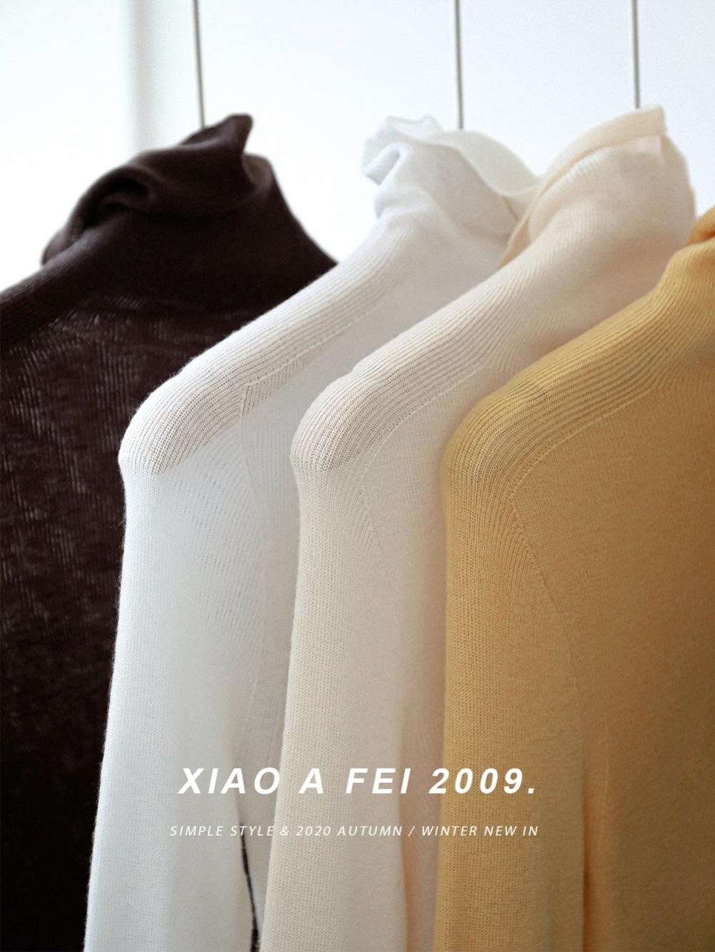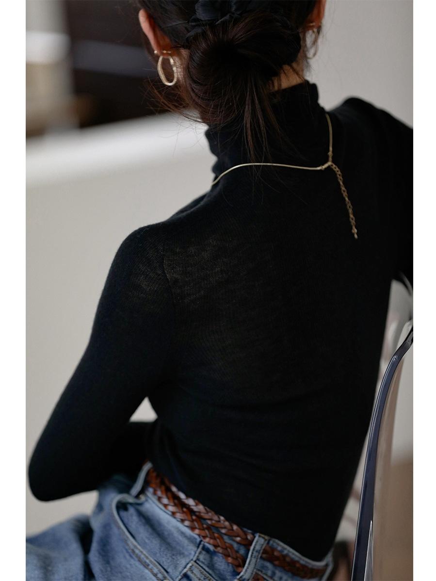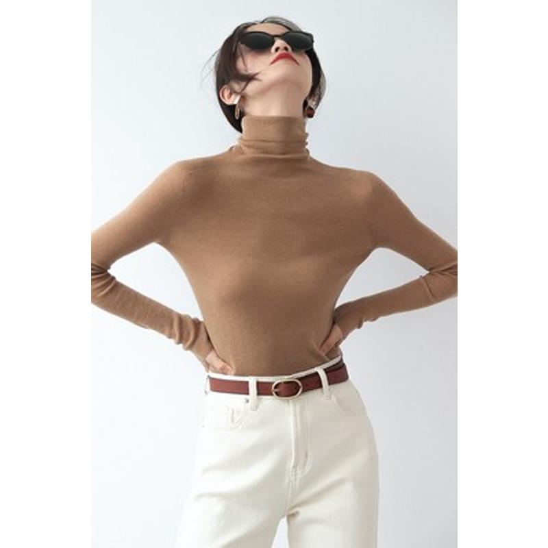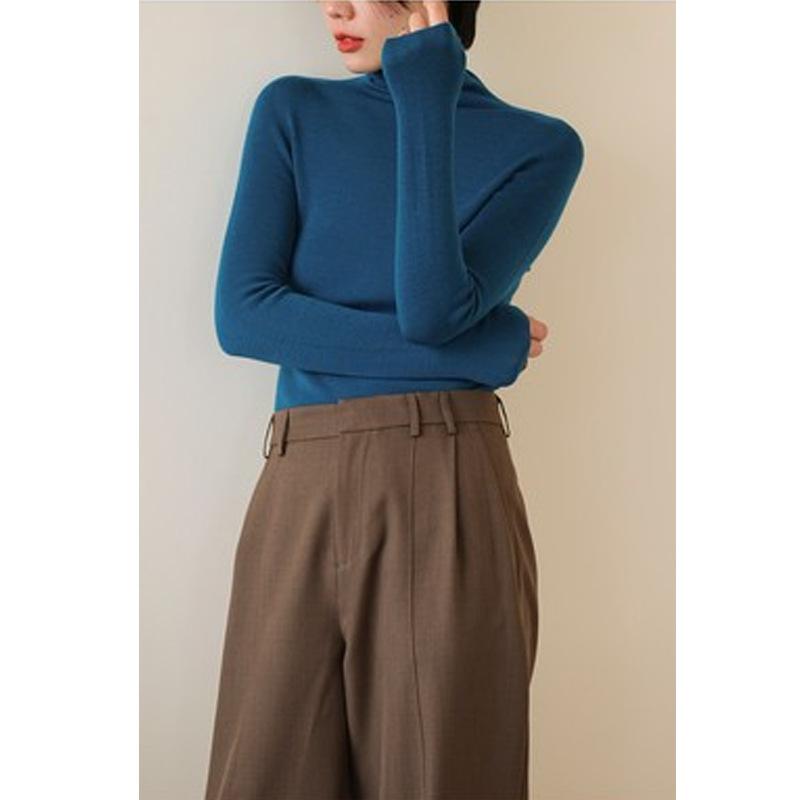Tejido de Lana de Una Pieza sin Costuras para Mujer Cuello Alto de Lana Camiseta Básica de Manga Larga Tejido Delgado Elástico Tejido de Punto 2023 Nuevo Estilo