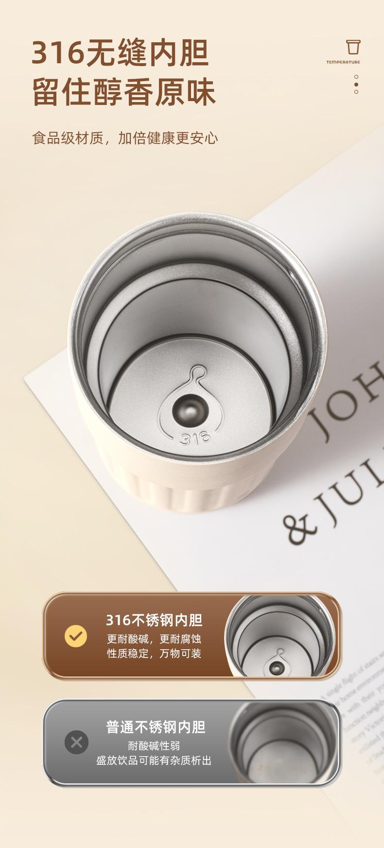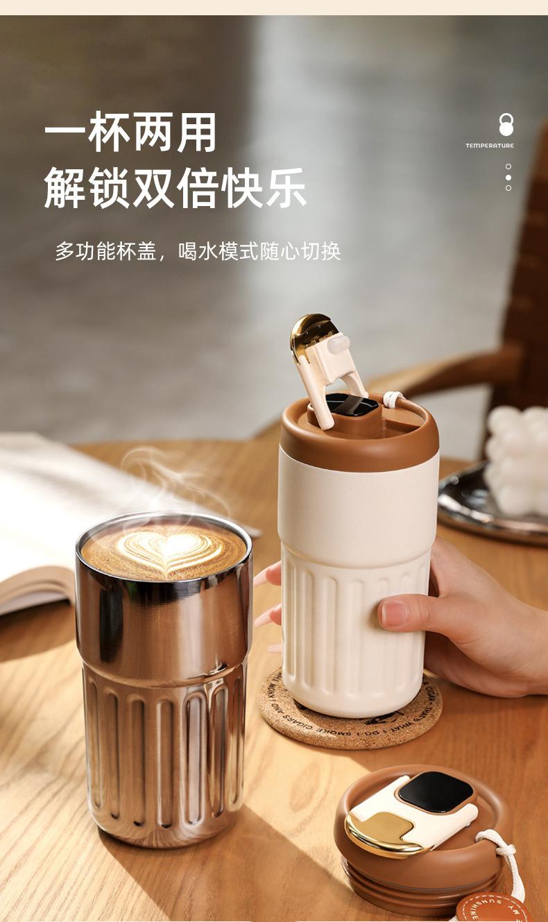 Termo de café inteligente de acero inoxidable 316, gran capacidad, para hombre y mujer, con aislamiento térmico, color brillante, portátil, para estudiantes