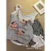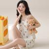 Pijama de burbujas arrugadas para mujer, con tirantes, de manga corta, de verano, con dibujos animados, bonito conjunto de dos piezas para el hogar, de una pieza, envío directo al por mayor.
