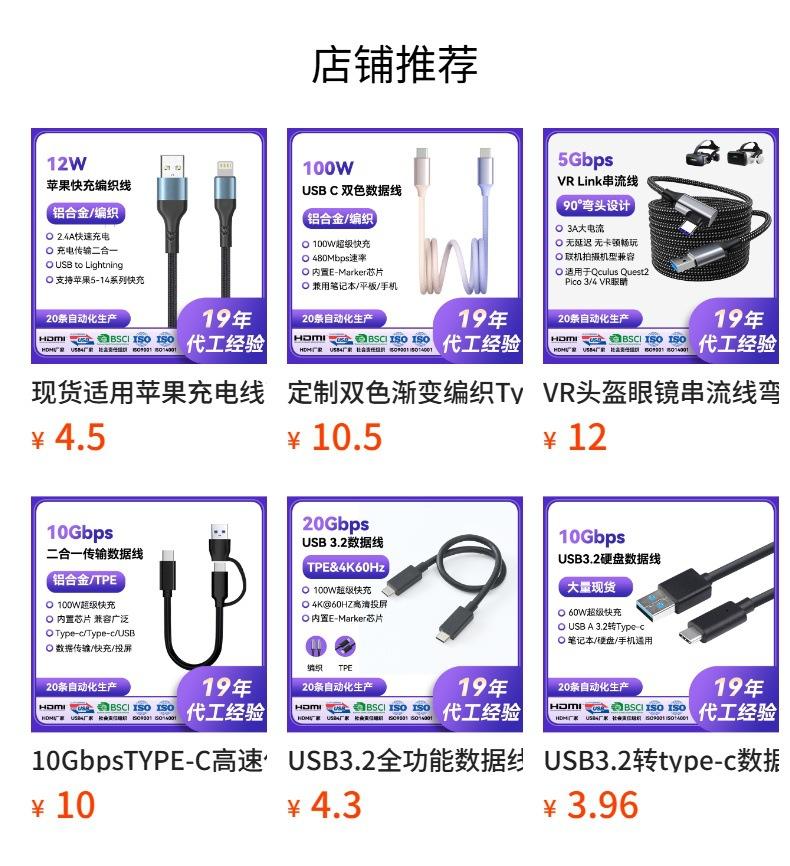 2M-Type-c to Type-c 60W braided data cable, 1M USB C TO C TPE data cable, 2M USB C TO C TPE data cable