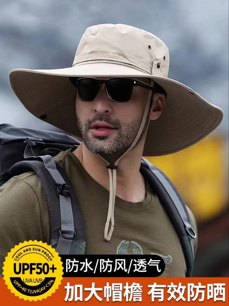 Sombrero de pescador de verano de ala ancha para hombre, sombrero de sol de alta gama para exteriores para mujer, casual versátil, impermeable, de secado rápido, sombrero de sol