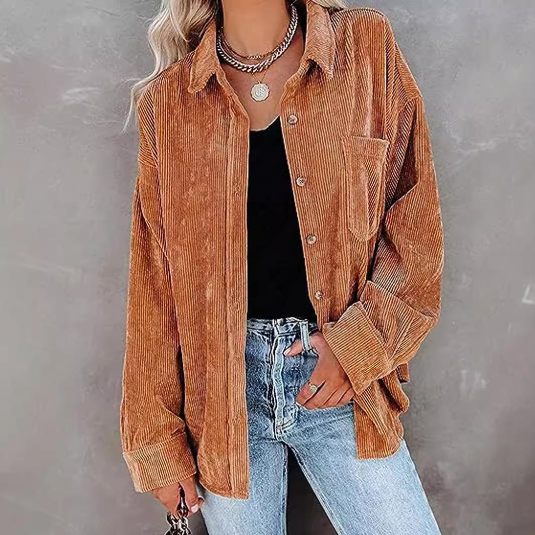 Otoño e Invierno 2024 Ropa de Mujer Amazon Transfronteriza Europea y Americana Comercio Exterior Chaqueta Casual Holgada Camisa de Pana Mujer Spot48 yuanesComprar ahora>