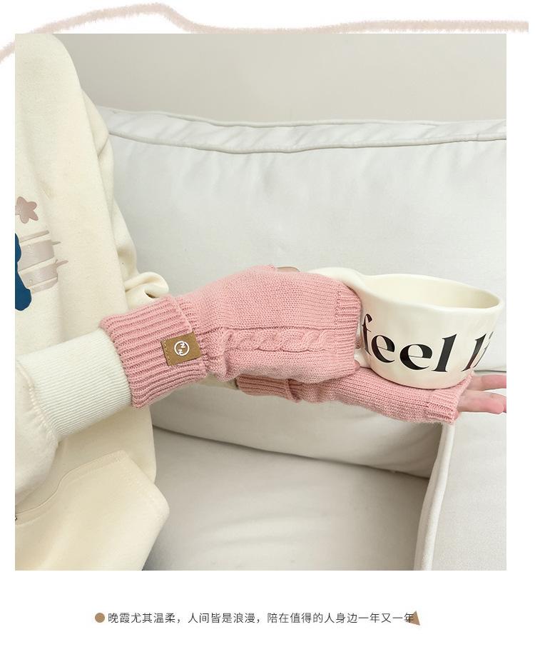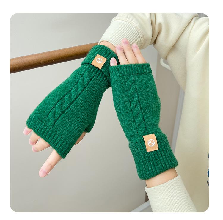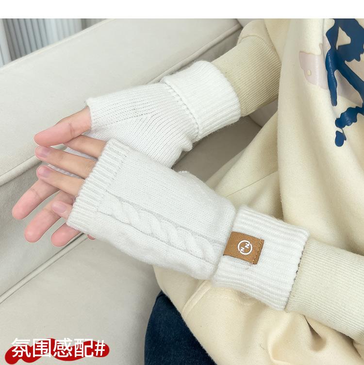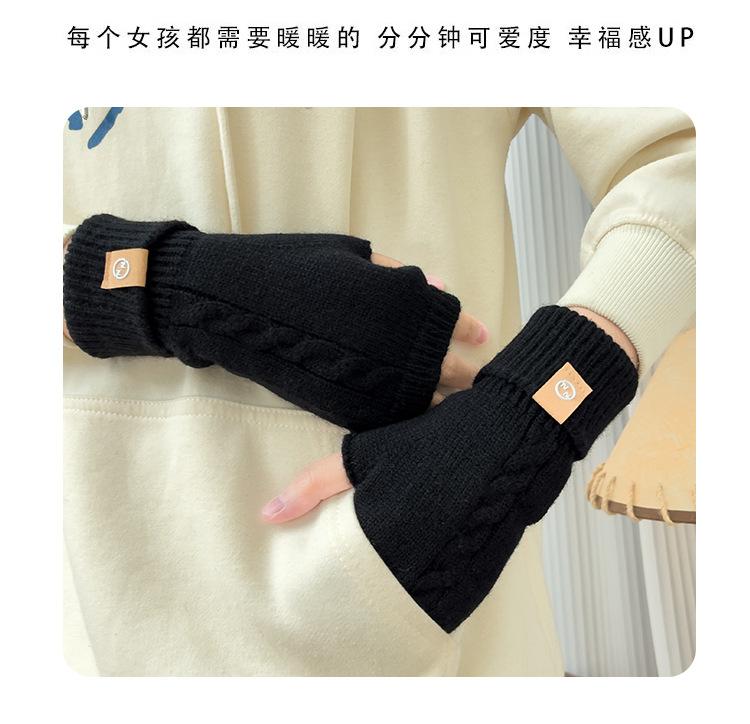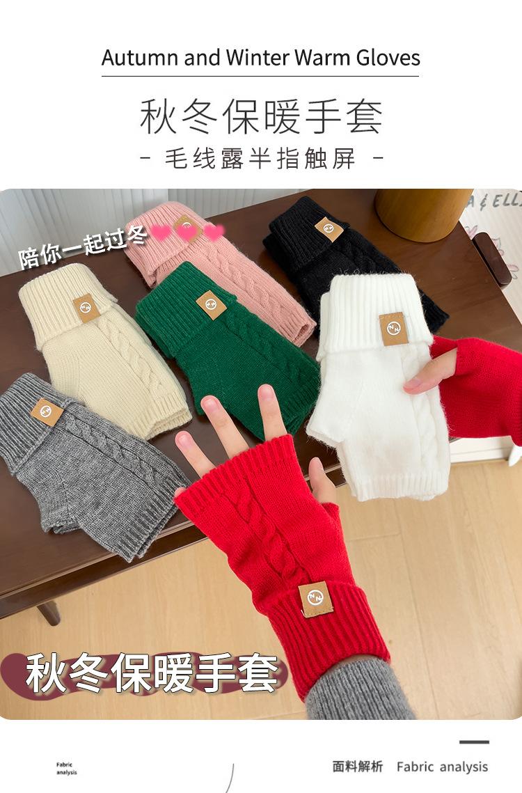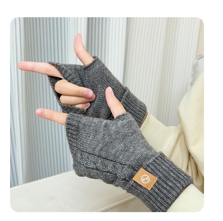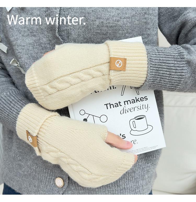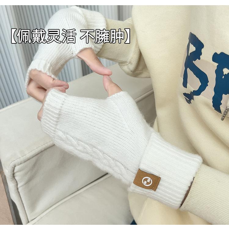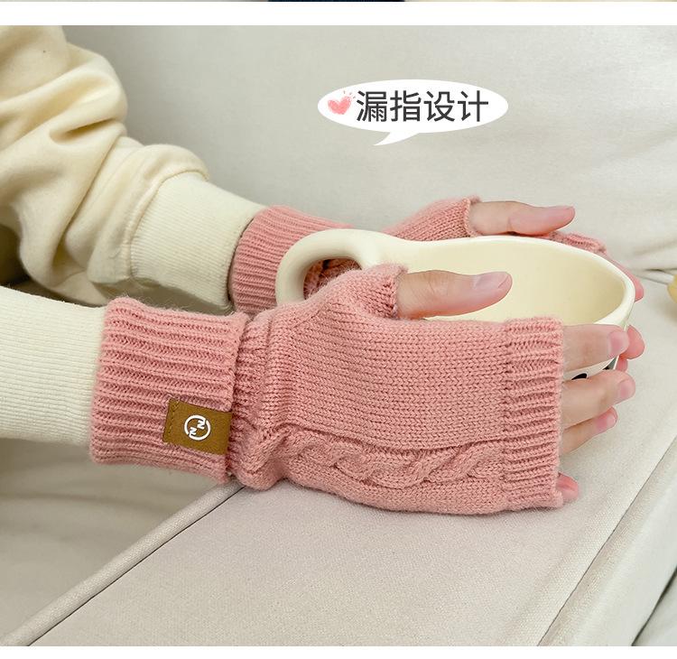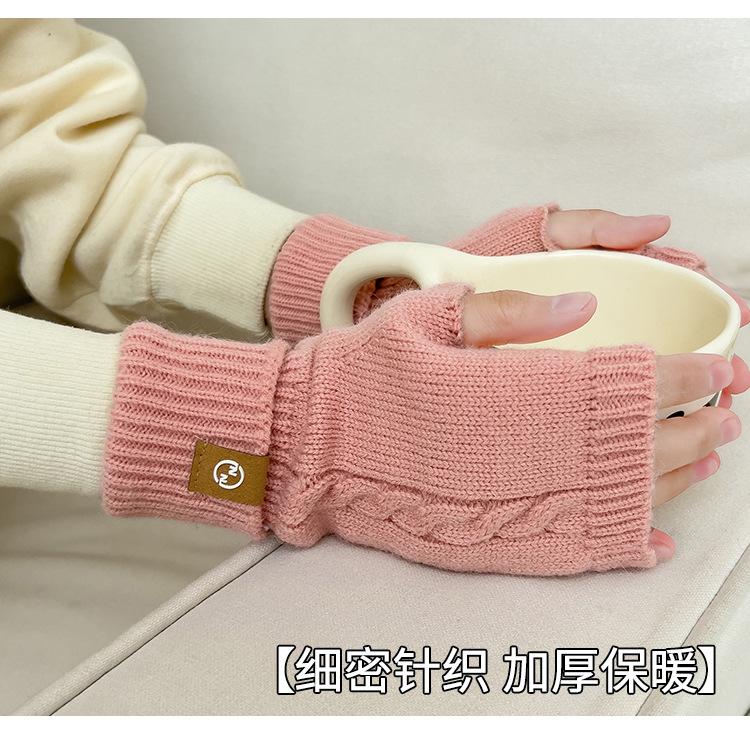 Guantes de punto de invierno, resistentes al viento y al frío, bonitos guantes de felpa de medio dedo, estilo coreano, para pantalla táctil, para ciclismo al aire libre, cálidos.