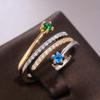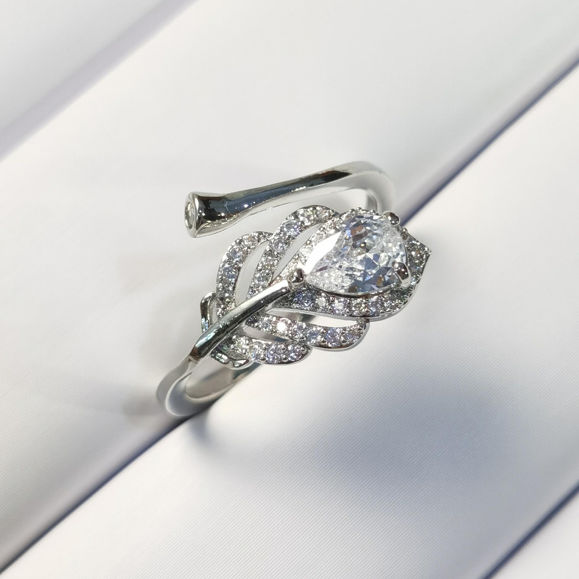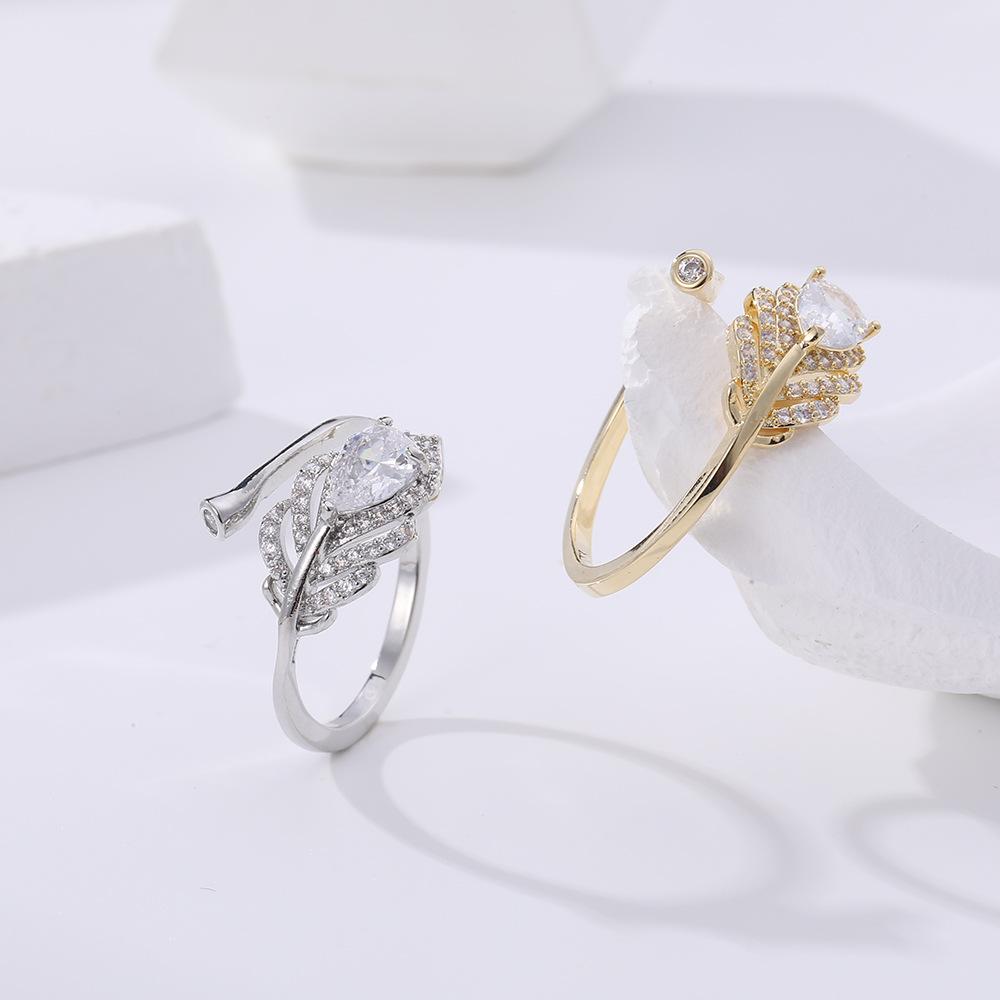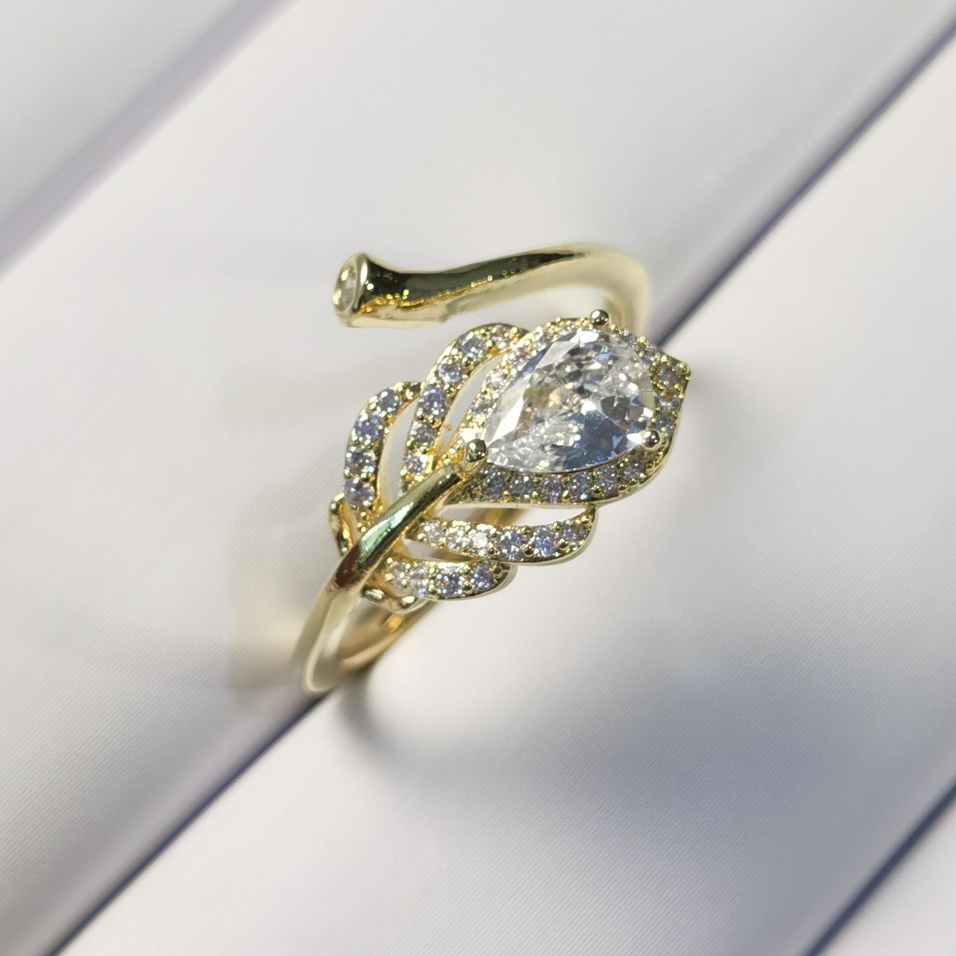 Anillo Abierto de Hojas de Zircón de Aleación de Cobre para Mujer Color Libre Transfronterizo Europeo y Americano Anillo de Dedo para Comida Joyería de Alta Gama de Lujo Ligero para Mujer