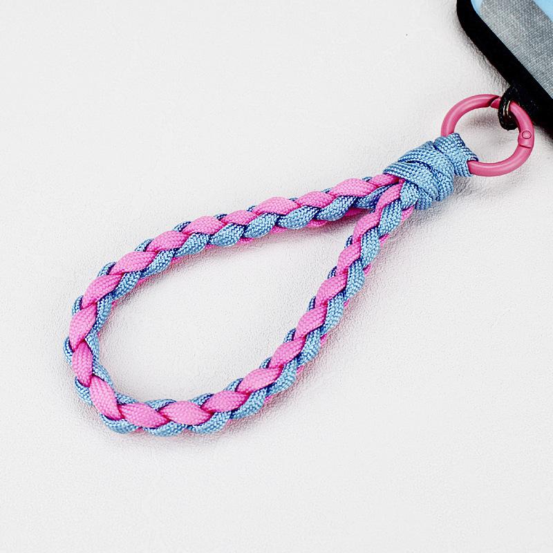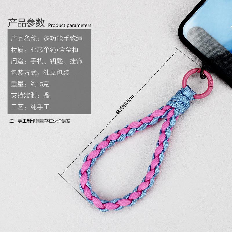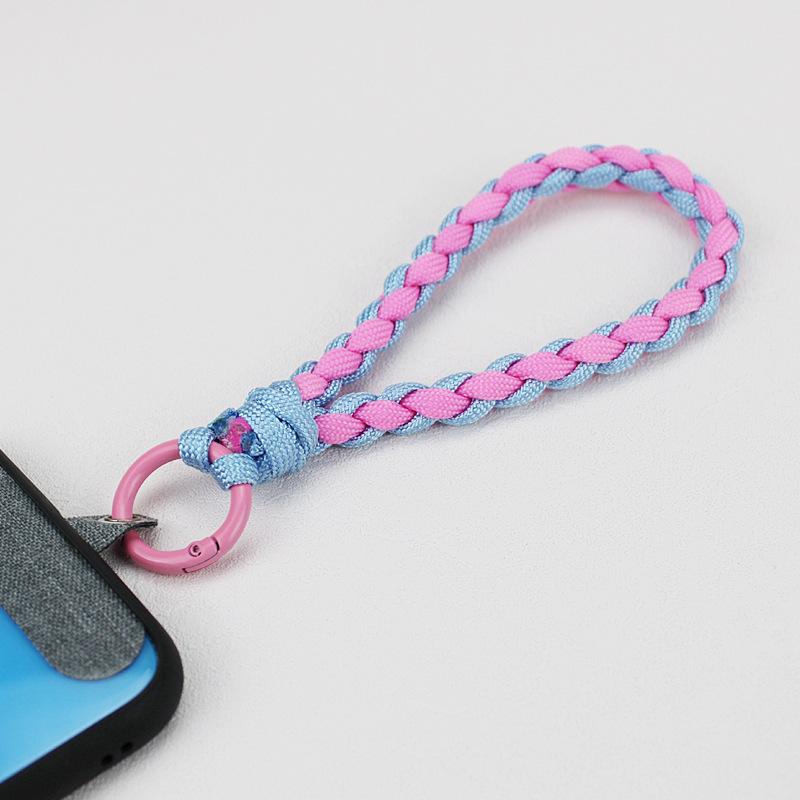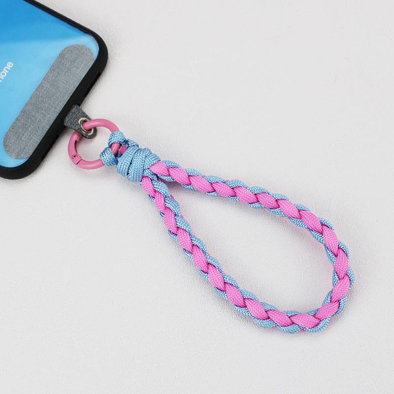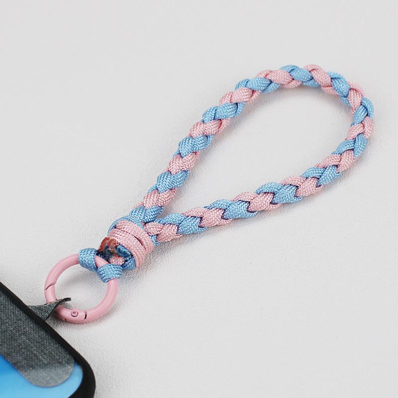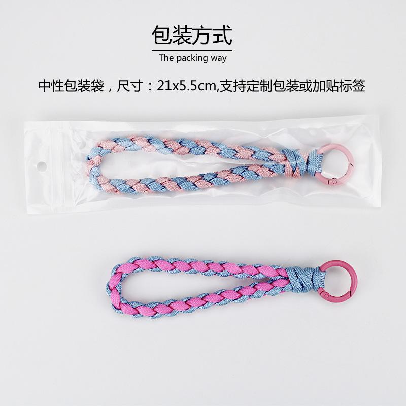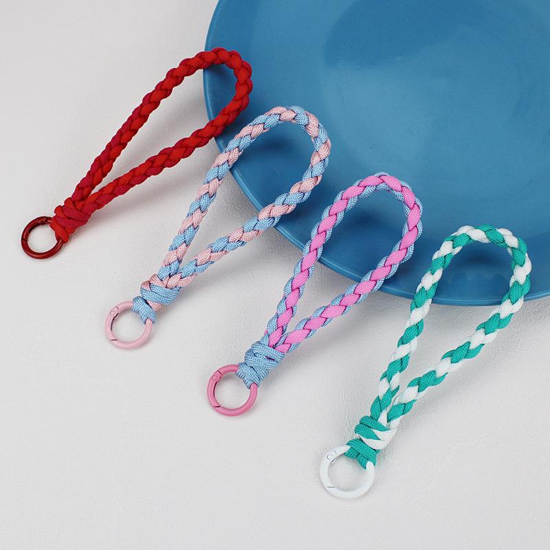 Fabricante mayorista de cordón para teléfono móvil de colores contrastantes para colgar en el cuello, antipérdida, llavero de cuerda tejida a mano, cuerda de mano de doble color a juego.