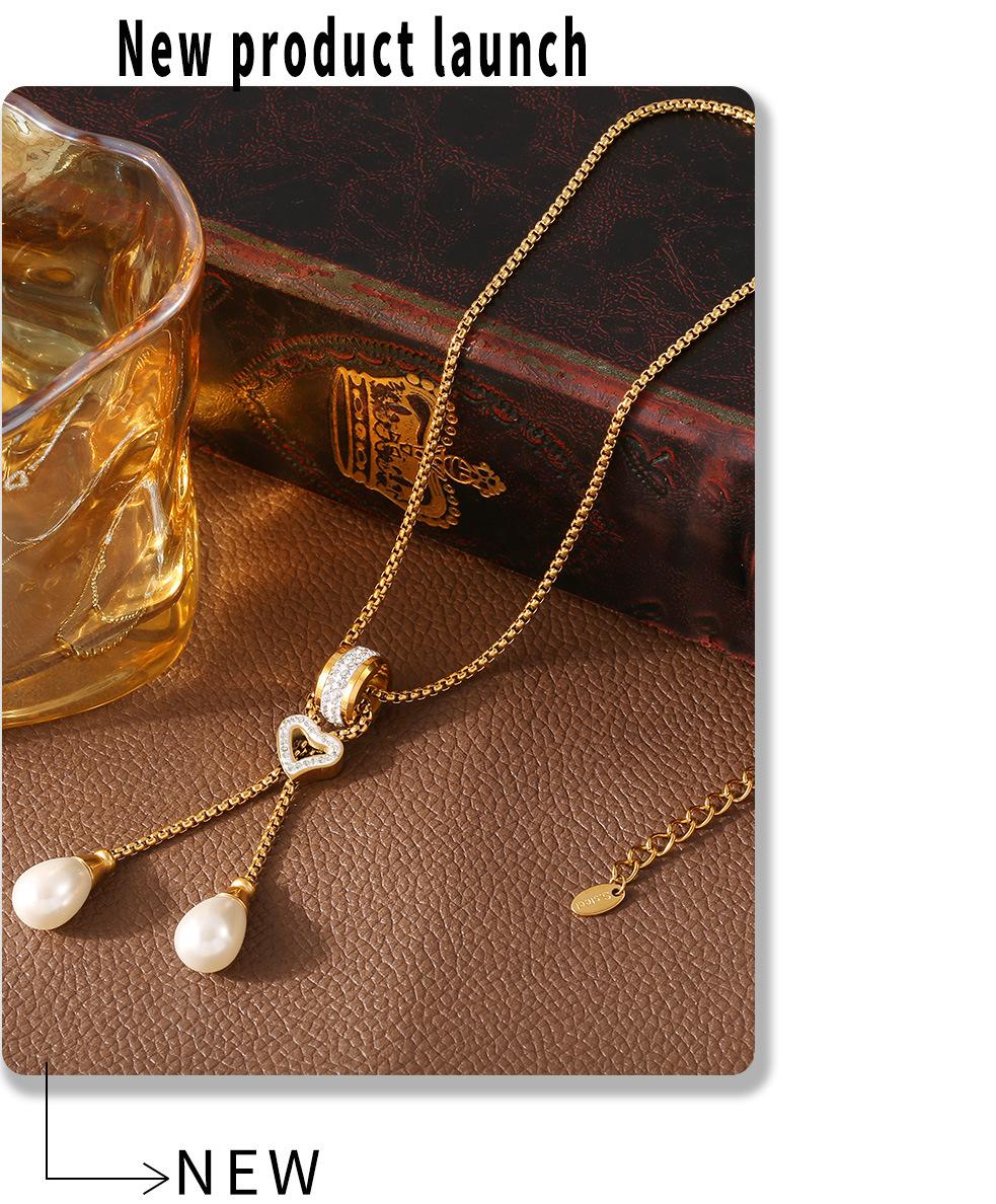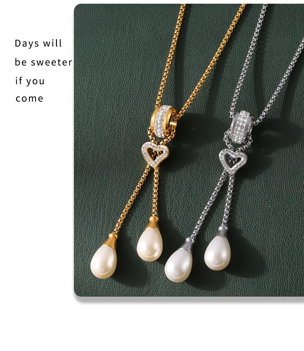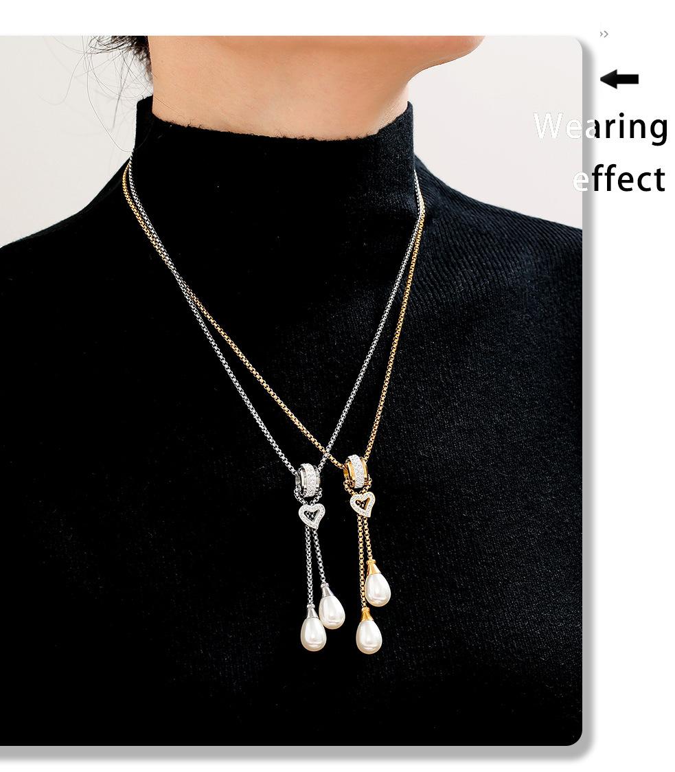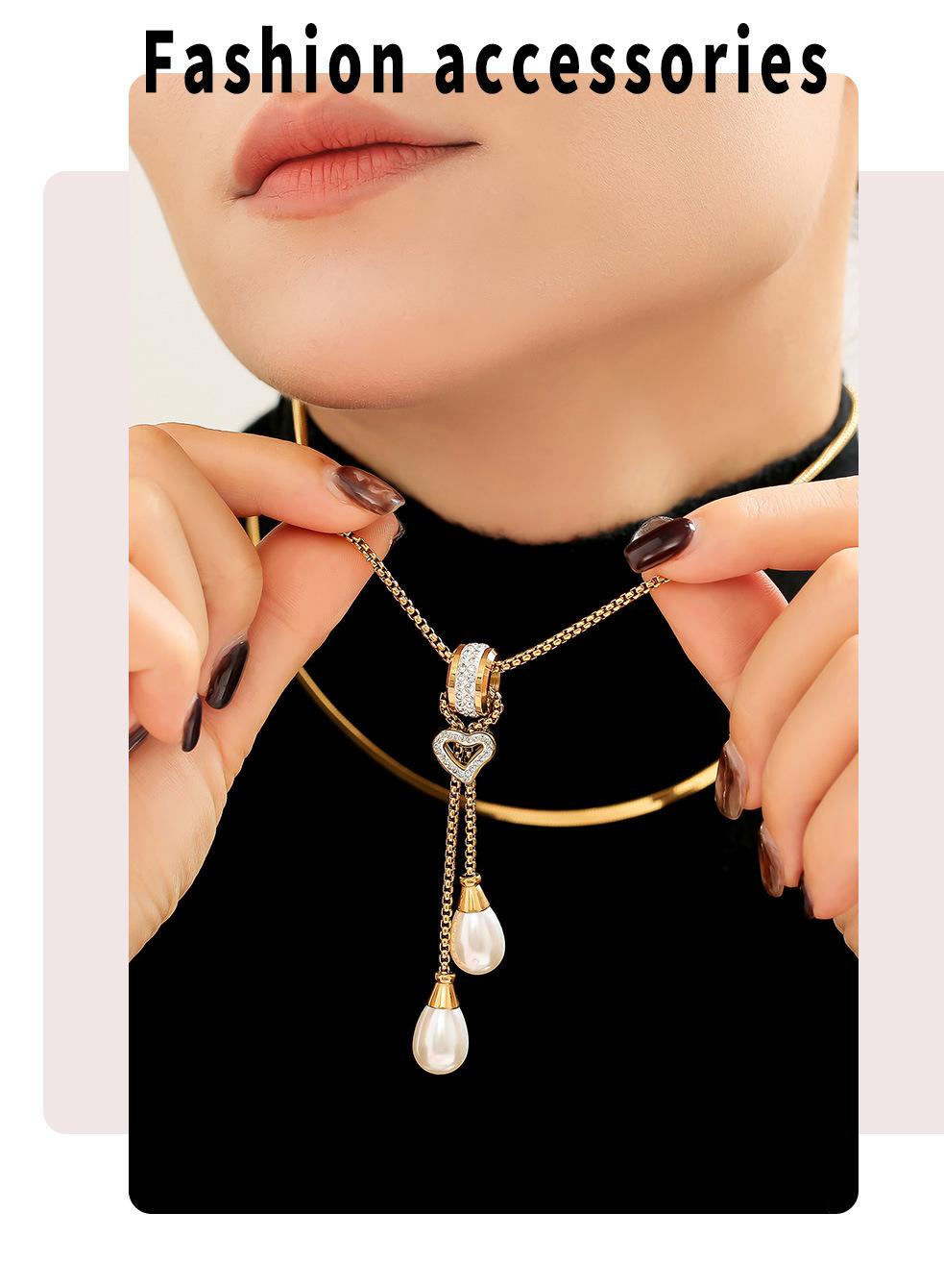 Collar de perlas de imitación de otoño e invierno europeo y americano, nuevo, con colgante de corazón de diamantes de sentido avanzado, cadena de cuchillas personalizada, cadena de clavícula superpuesta.
