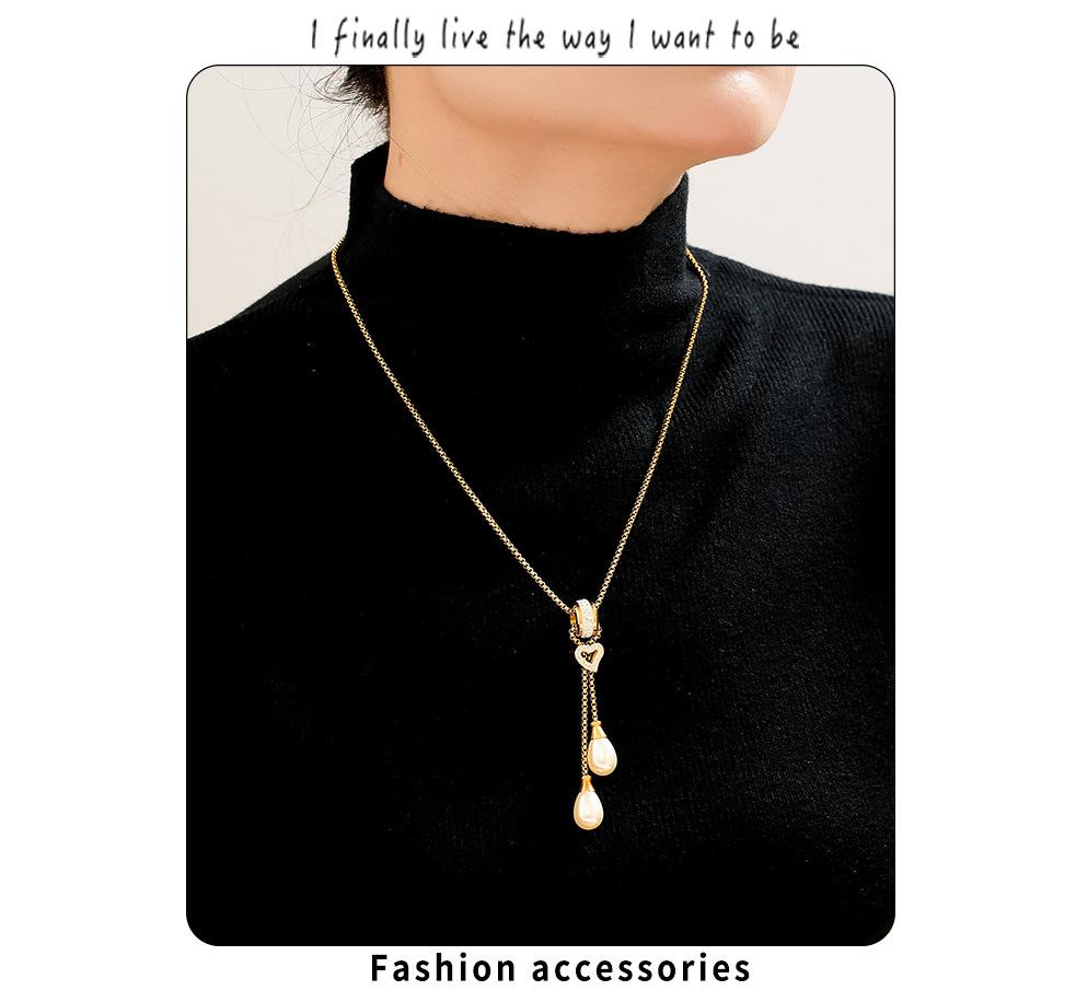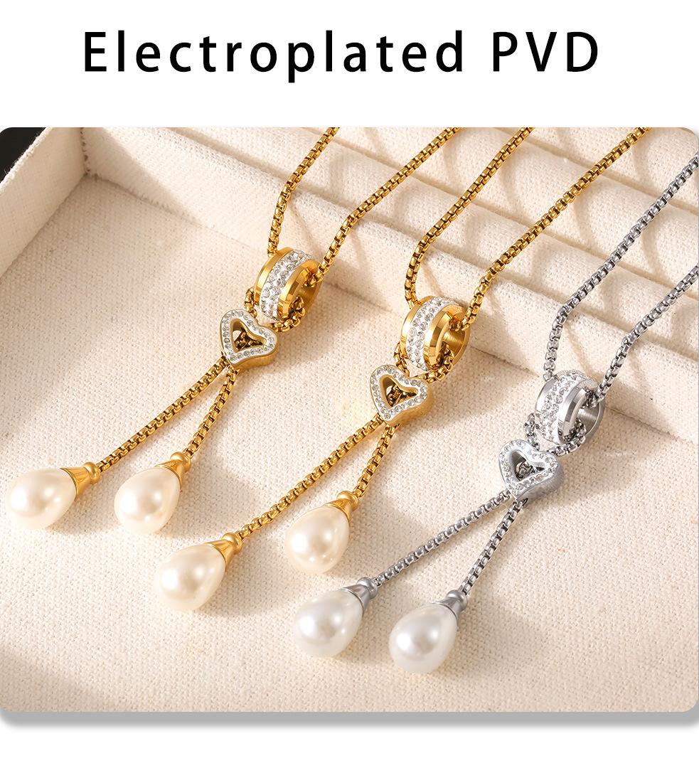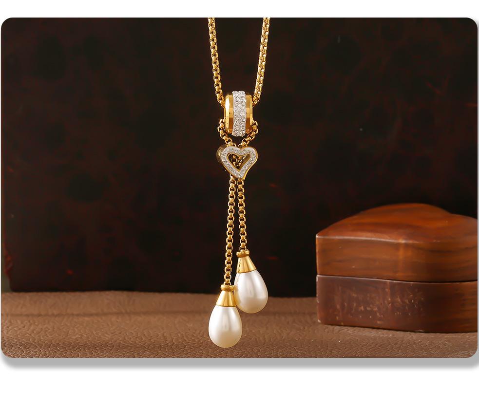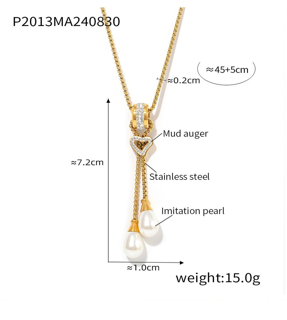 Collar de perlas de imitación de otoño e invierno europeo y americano, nuevo, con colgante de corazón de diamantes de sentido avanzado, cadena de cuchillas personalizada, cadena de clavícula superpuesta.
