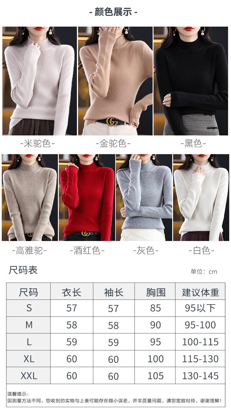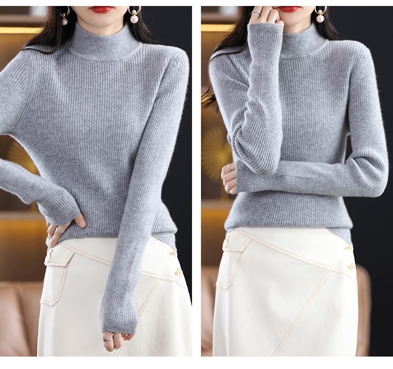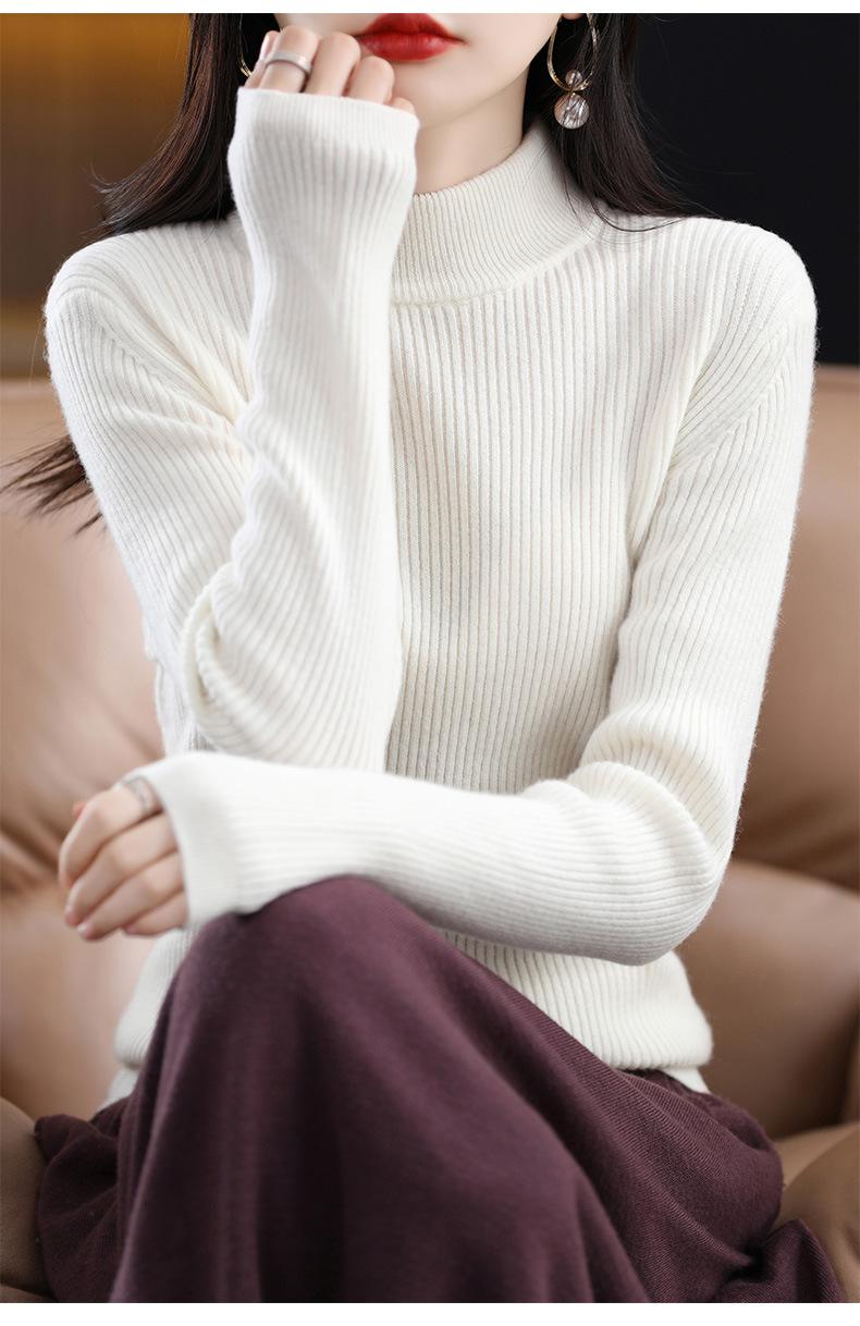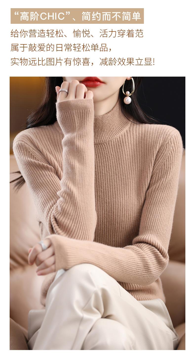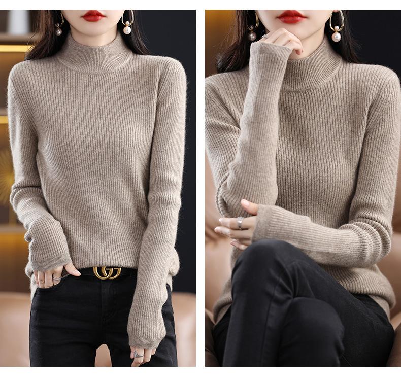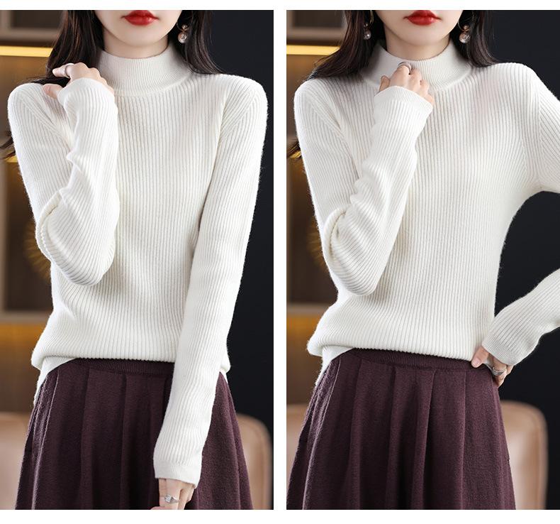 Suéter nuevo de otoño e invierno con cuello medio alto, suéter holgado para mujer, manga larga, abrigo base cálido de color sólido occidental