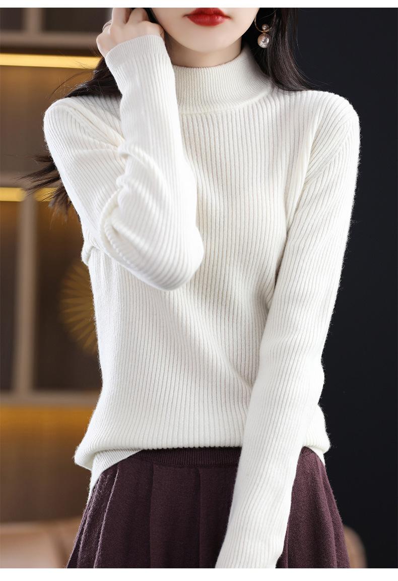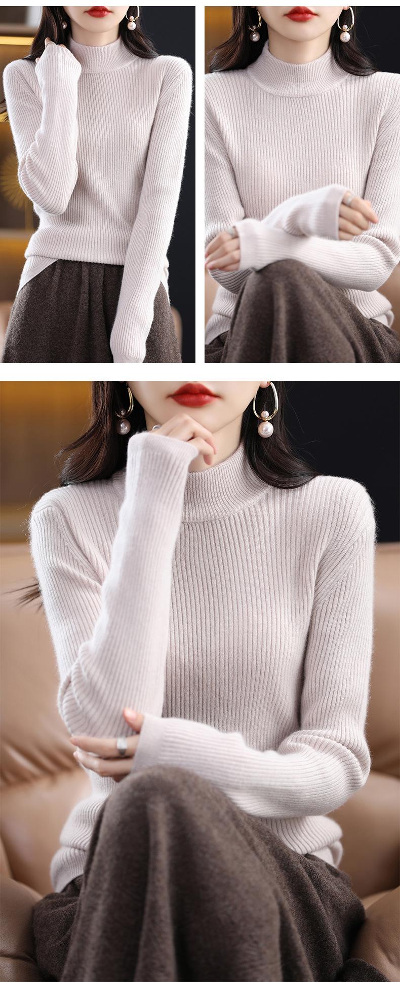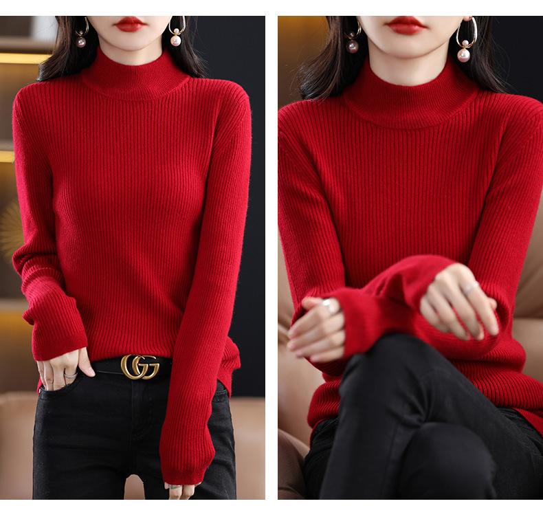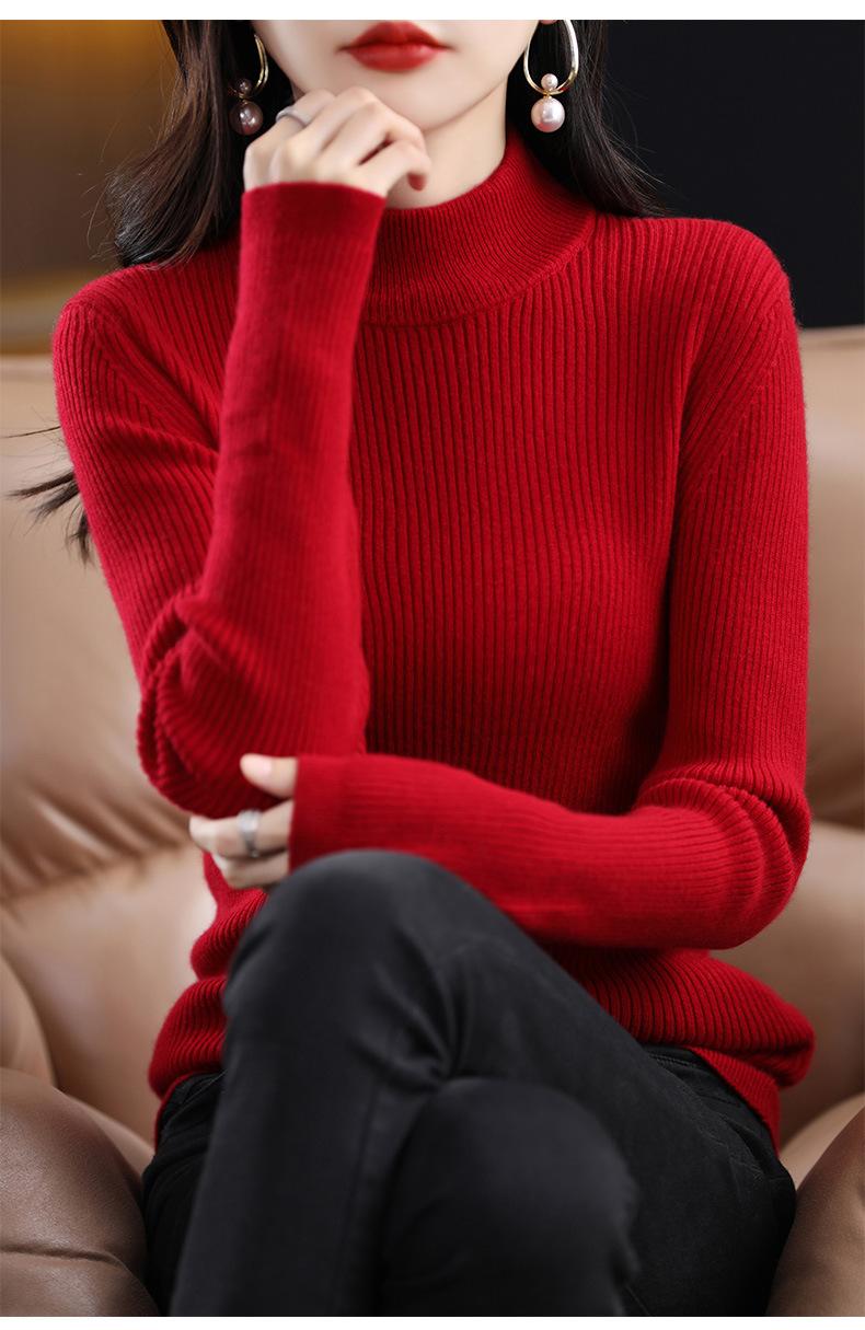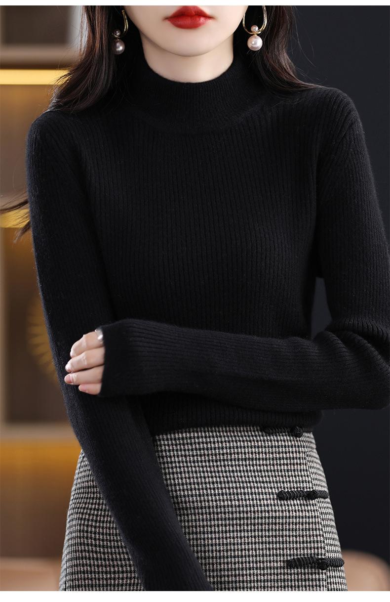 Suéter nuevo de otoño e invierno con cuello medio alto, suéter holgado para mujer, manga larga, abrigo base cálido de color sólido occidental