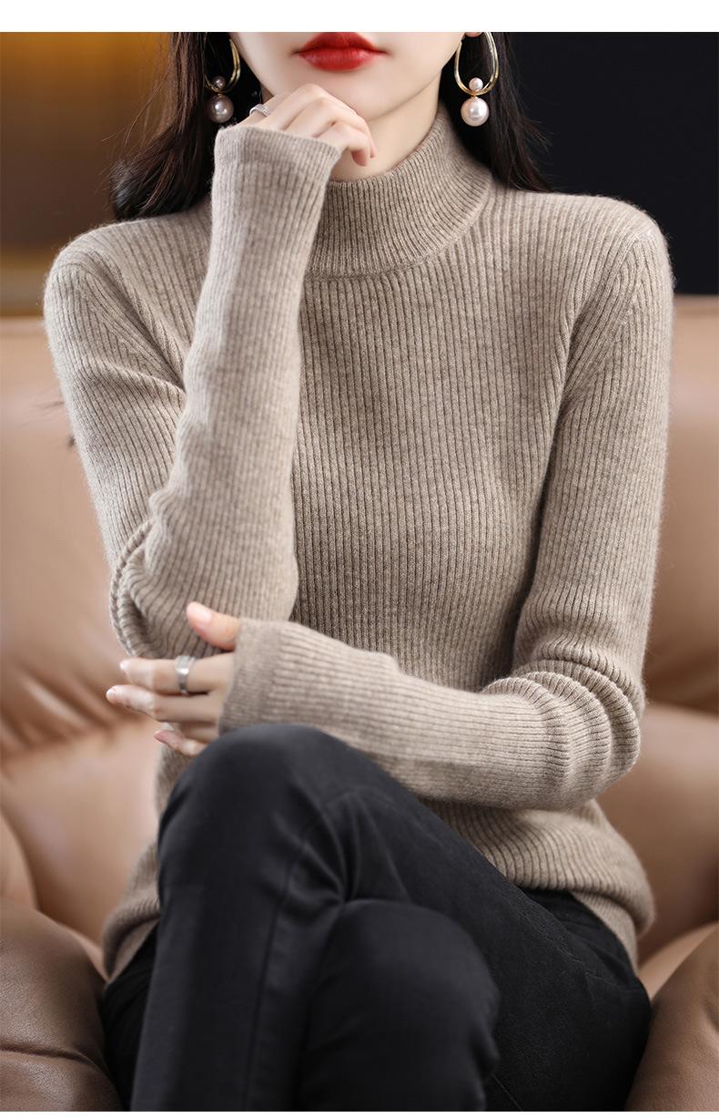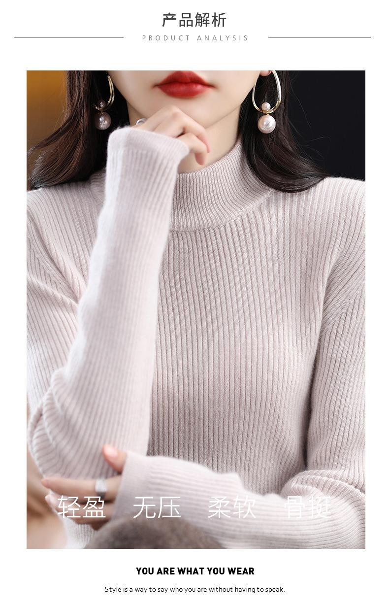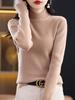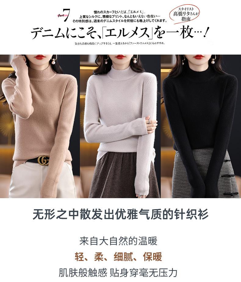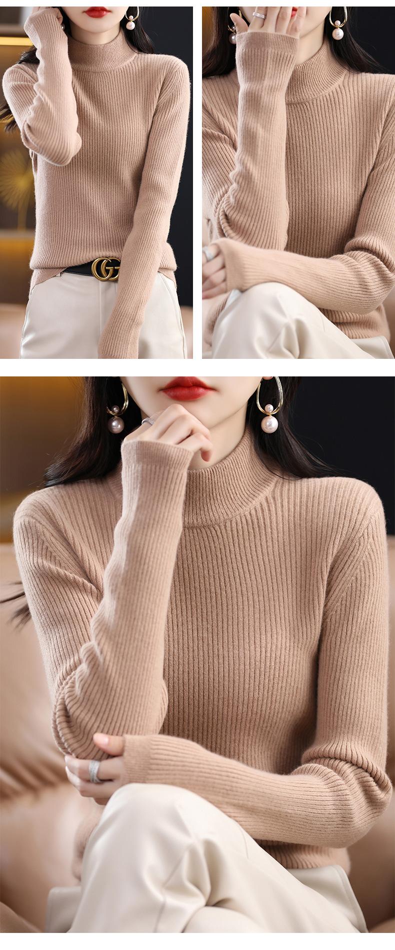 Suéter nuevo de otoño e invierno con cuello medio alto, suéter holgado para mujer, manga larga, abrigo base cálido de color sólido occidental