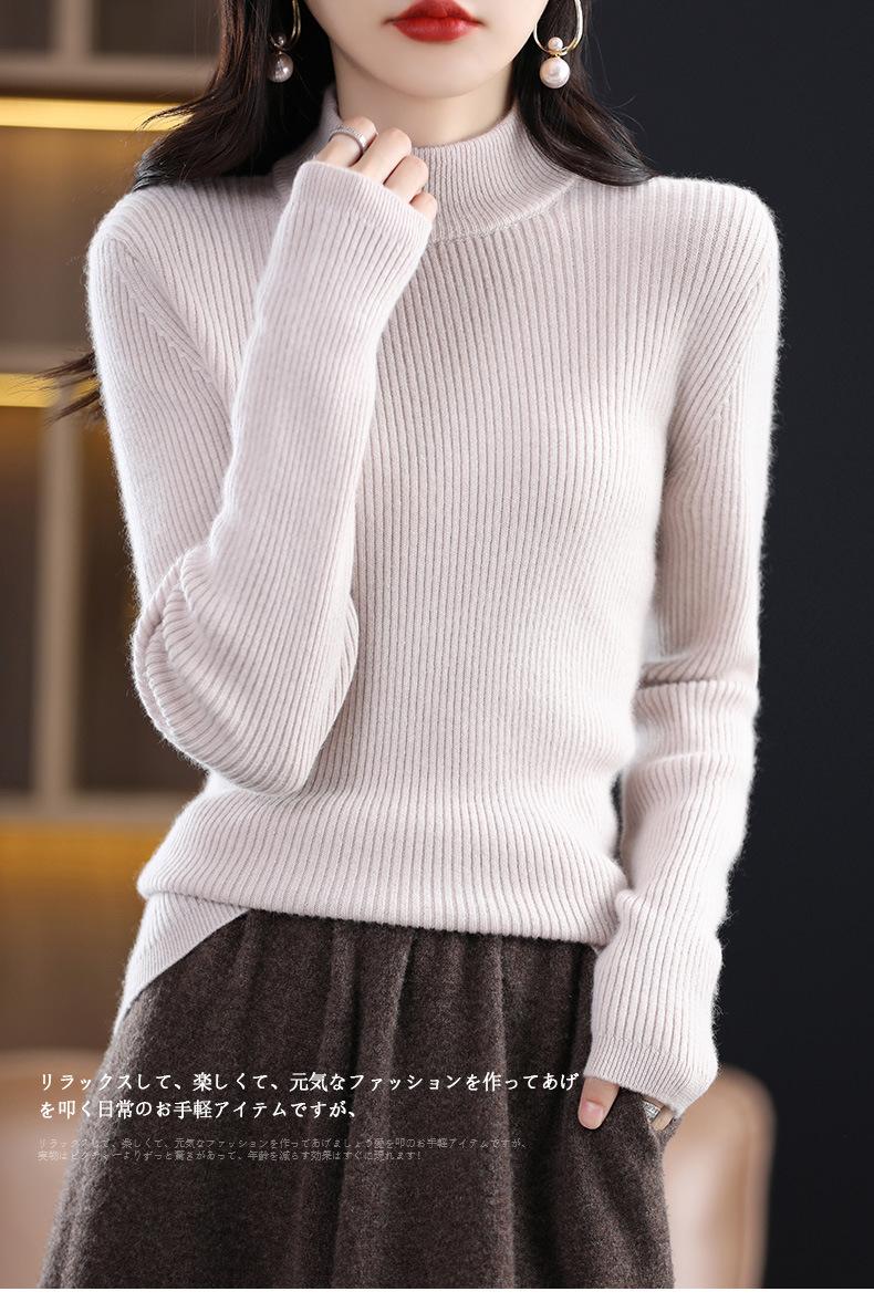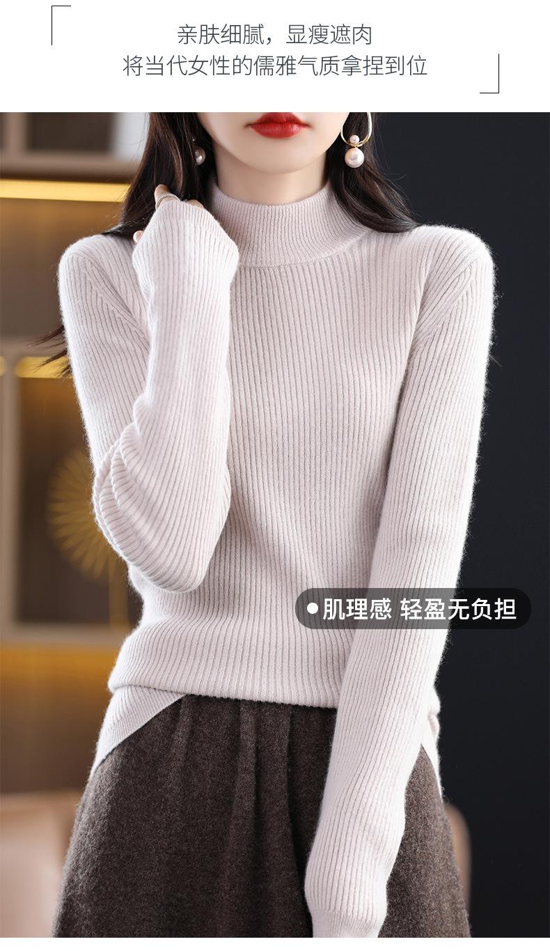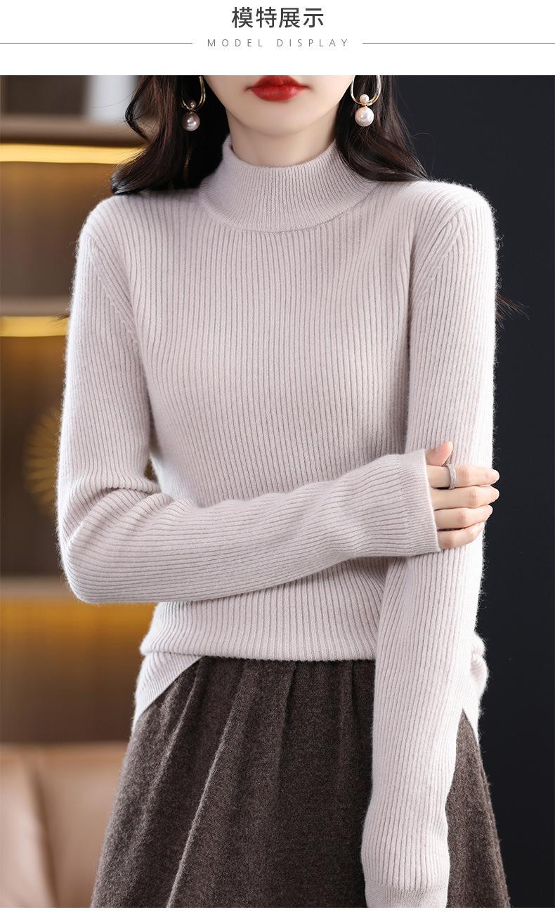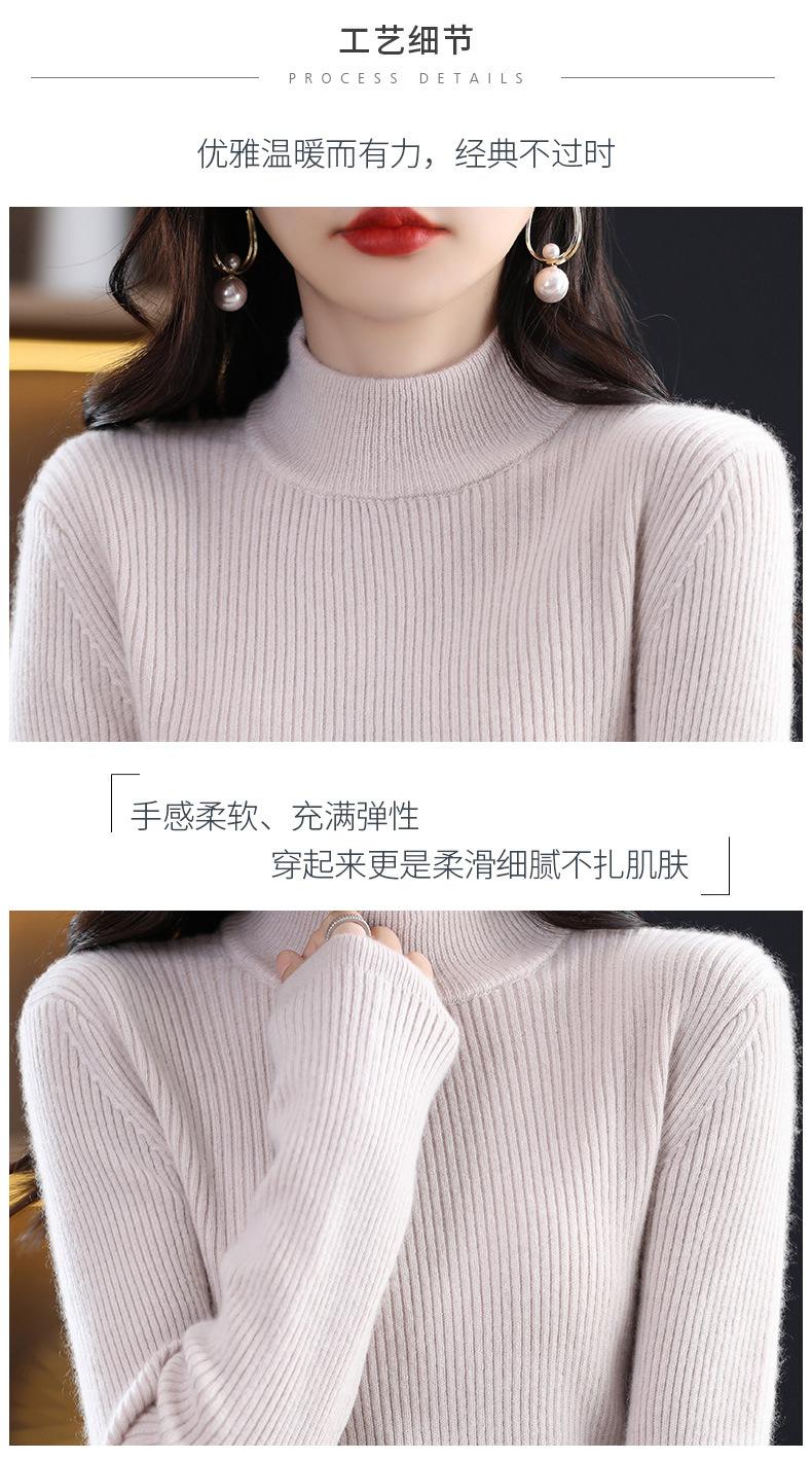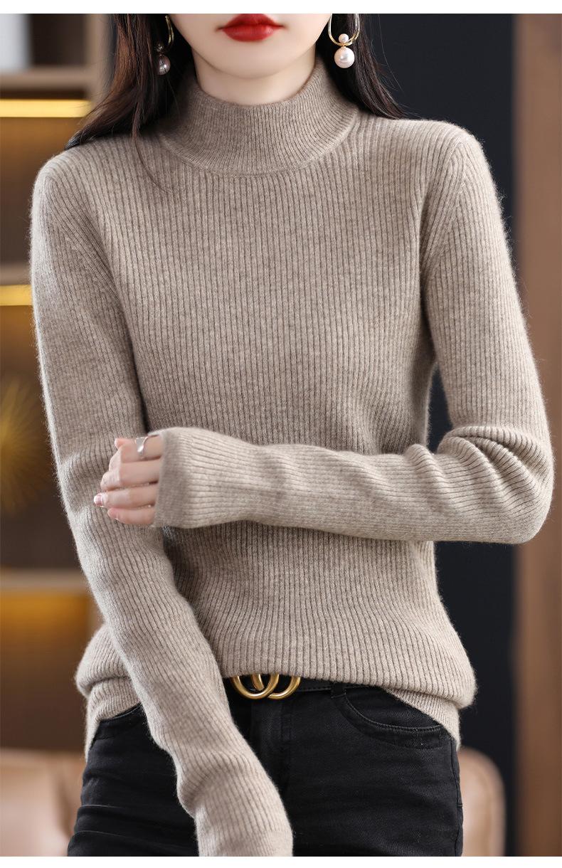 Suéter nuevo de otoño e invierno con cuello medio alto, suéter holgado para mujer, manga larga, abrigo base cálido de color sólido occidental