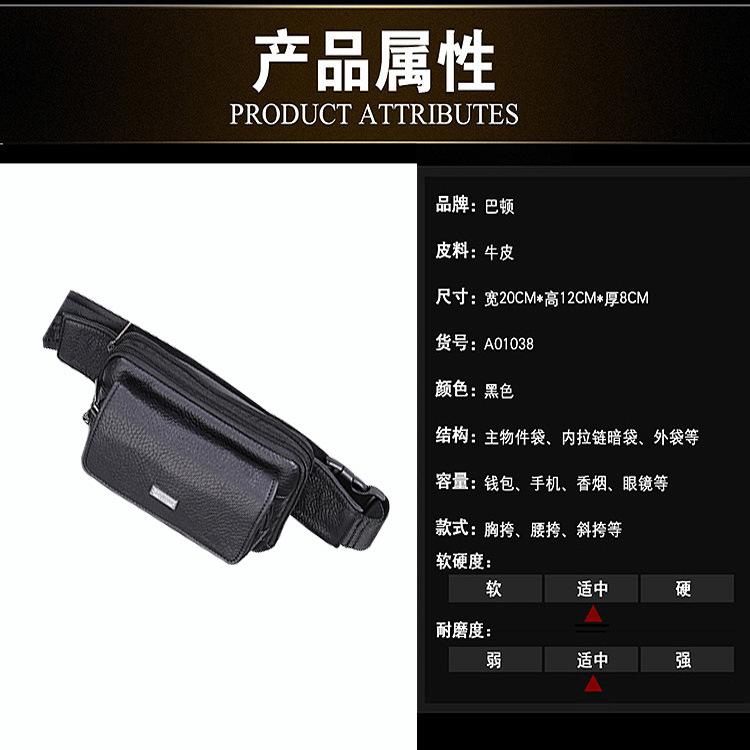 Ventas directas de fábrica artículos de cuero nueva bolsa de pecho bolsa pequeña de un solo hombro para hombre europea y americana monedero multifuncional riñonera personalización Los fabricantes de la marca Barton se especializan en el suministro de grandes cantidades de productos spot a tiendas físicas nacionales y extranjeras, tiendas en línea (Tmall, tiendas Taobao C, JD.com, Paipai, comerciantes de WeChat, propietarios de tiendas Taobao que se preparan para iniciar un negocio, etc.) y emprendedores de la industria del equipaje. Ventajas de la contratación de agentes Nombre de la empresa: Guangzhou Barton Leather Goods Co., Ltd. Dirección de la empresa: Sala 518-519, 5º Piso, Ciudad del Cuero Zhonggang, Avenida Sanyuanli, Distrito de Baiyun, Guangzhou Dirección del almacén de fábrica: 2do Piso, Edificio 7, Calle Baishahu, Aldea Pingsha, Distrito Baiyun, Guangzhou