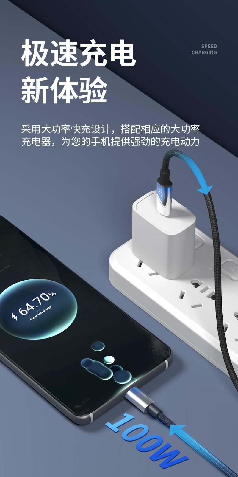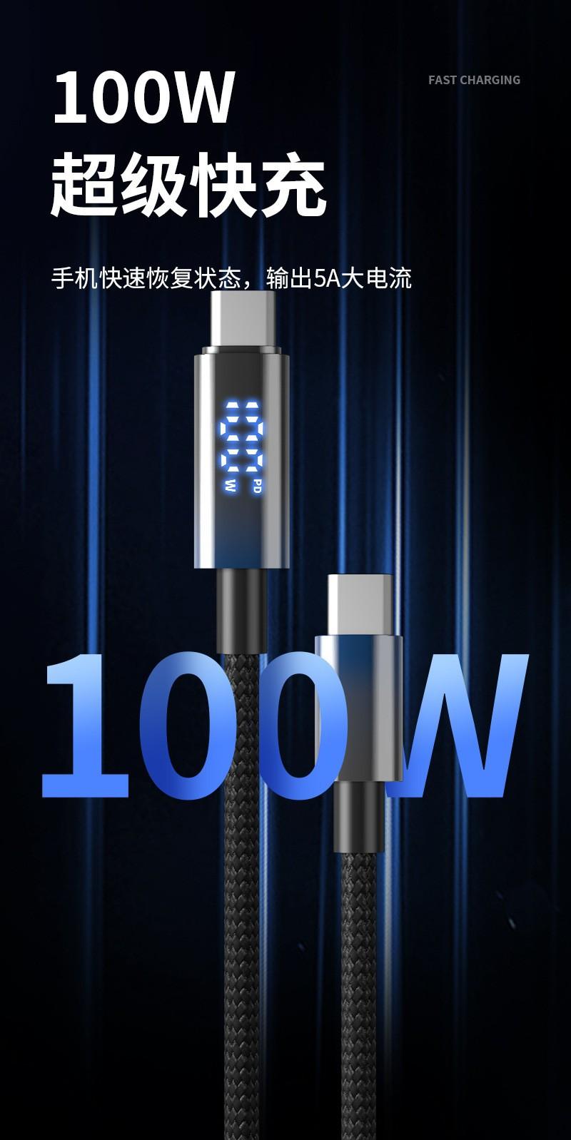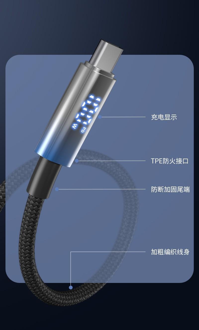 Cable de Datos de Carga Rápida con Pantalla Digital Inteligente de 100W Adecuado para Huawei Tipo-C Apple 17 Cable de Datos de Carga Rápida Venta al por Mayor Transfronteriza
