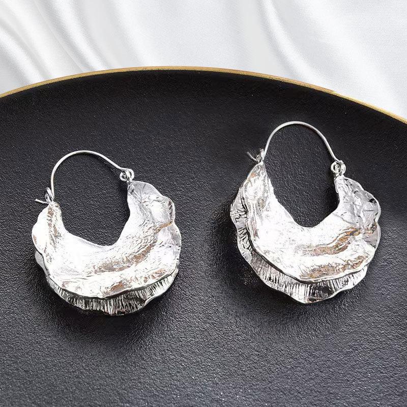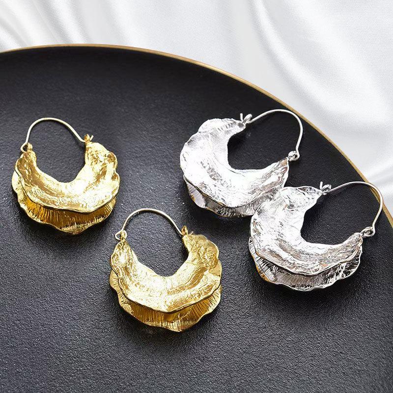 Aretes de hoja de loto en forma de U de alta gama, ligeros de lujo, nicho, textura, metal, hebillas para la oreja, para mujer, estilo europeo y americano, joyería, suministro al por mayor