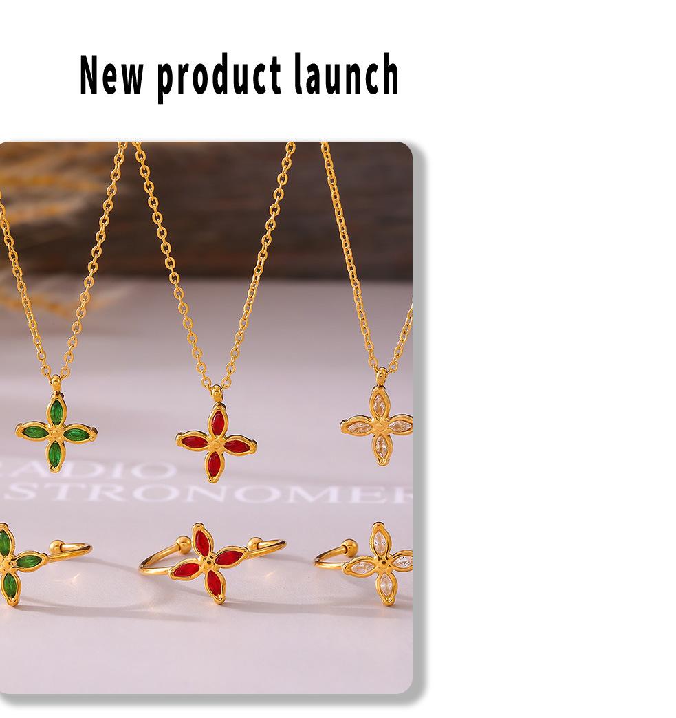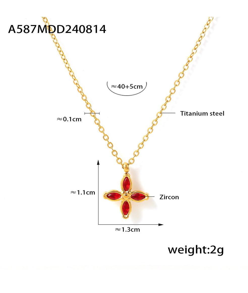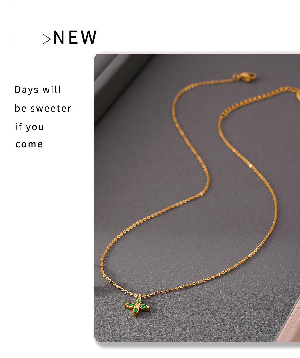 Collar con colgante de flor de cuatro hojas de circonita colorida, chapado en acero de titanio y oro de 18 quilates, cadena de clavícula de lujo, ideal para mujer.