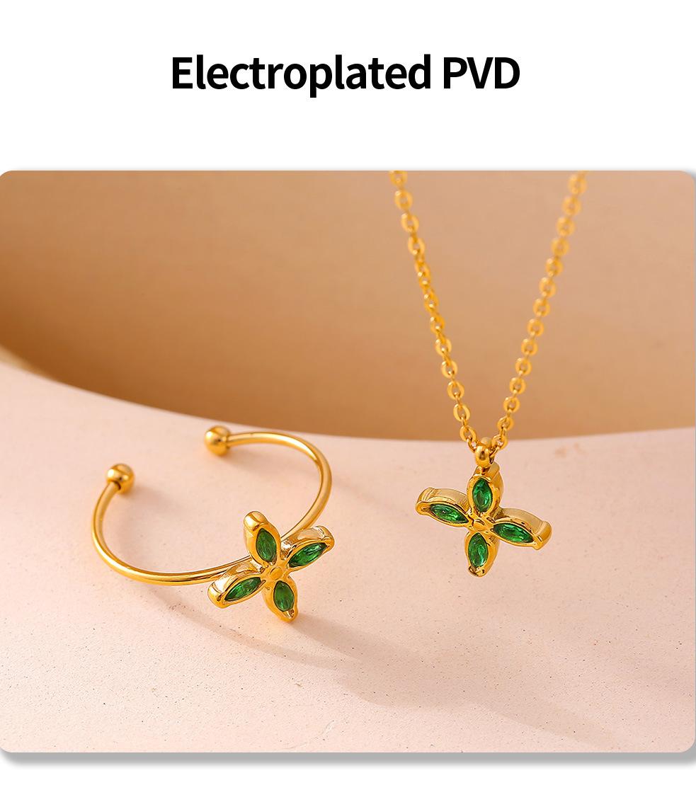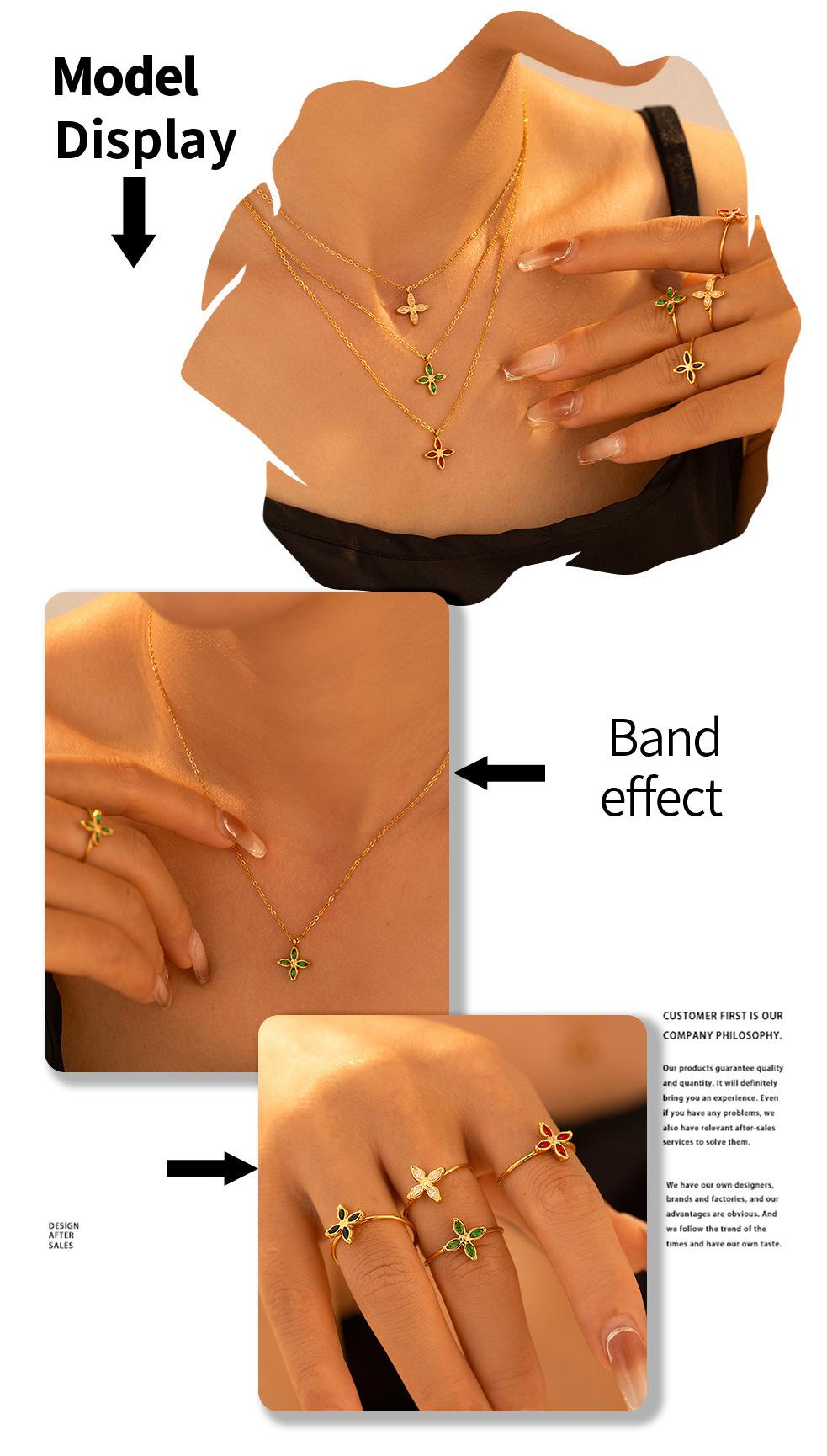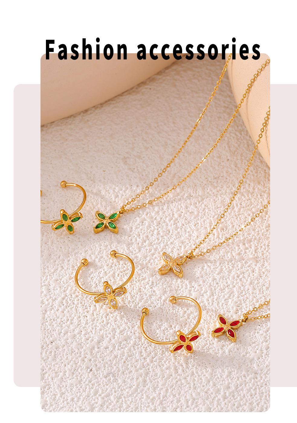Collar con colgante de flor de cuatro hojas de circonita colorida, chapado en acero de titanio y oro de 18 quilates, cadena de clavícula de lujo, ideal para mujer.